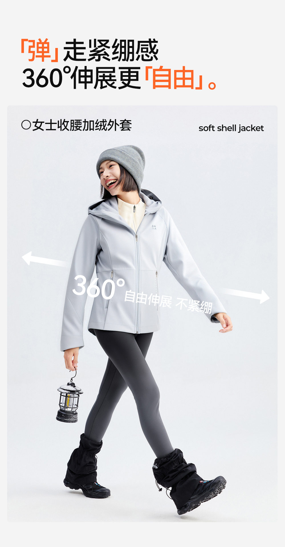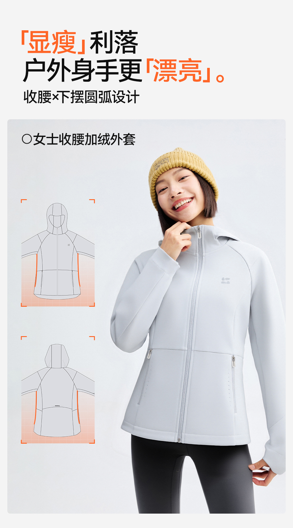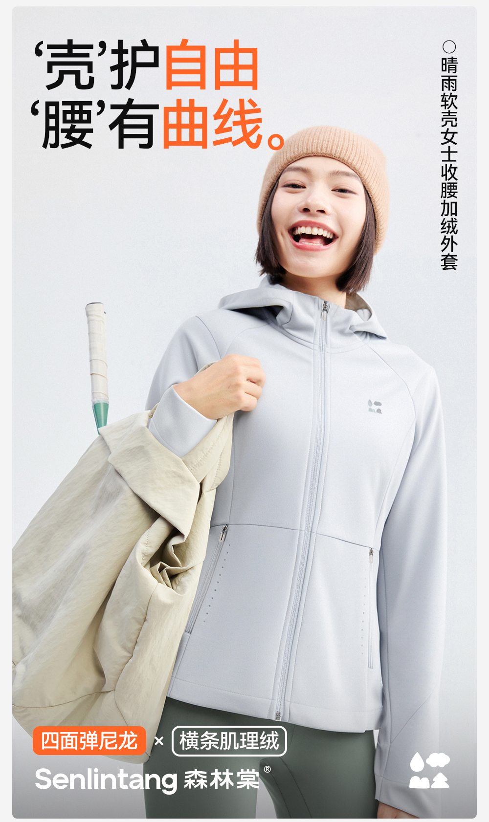 【女式收腰软壳外套】森林棠25秋冬女士晴雨户外收腰加绒防风保暖连帽外套60872501【森林棠11月专场】