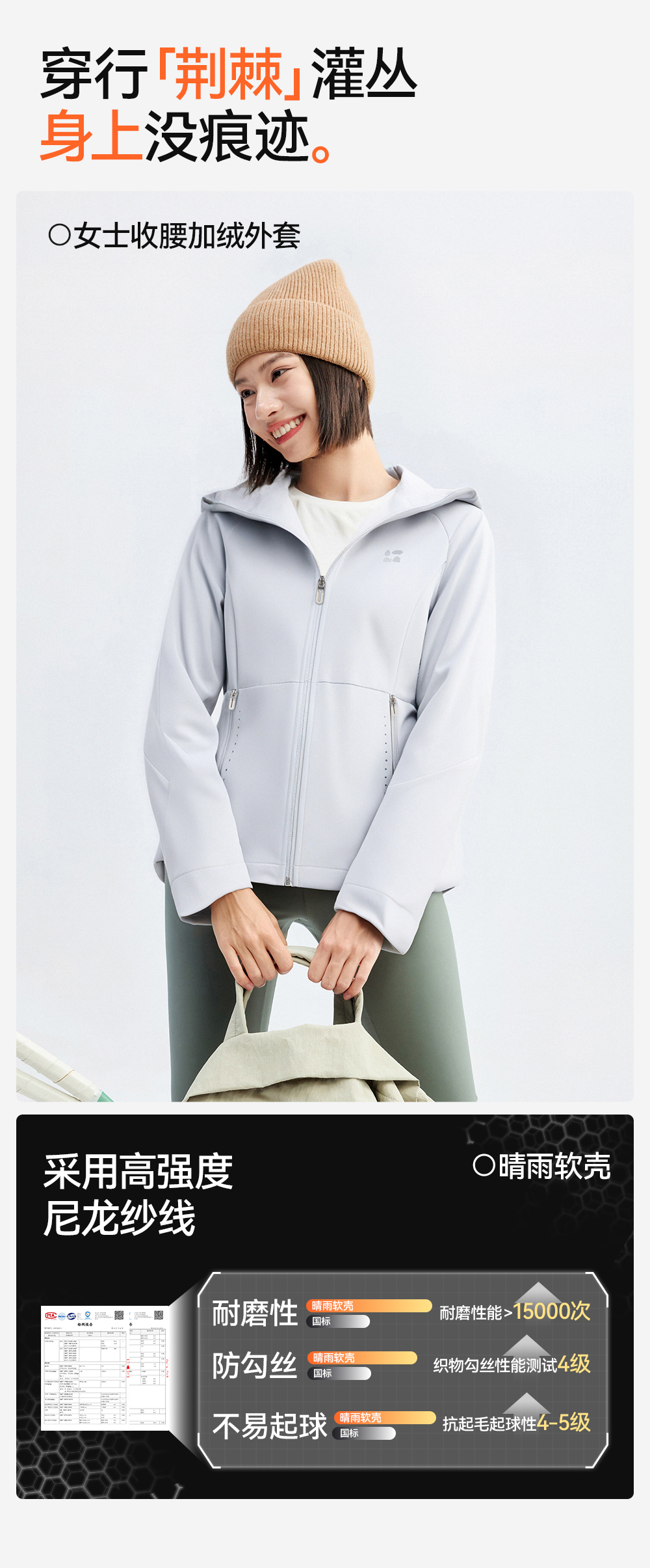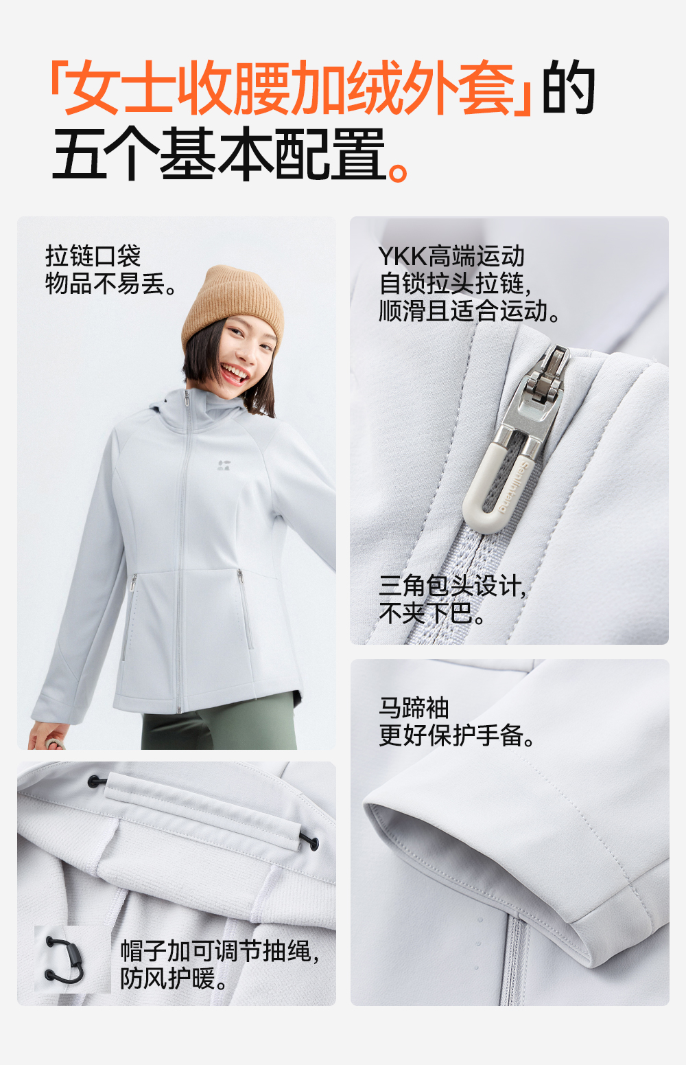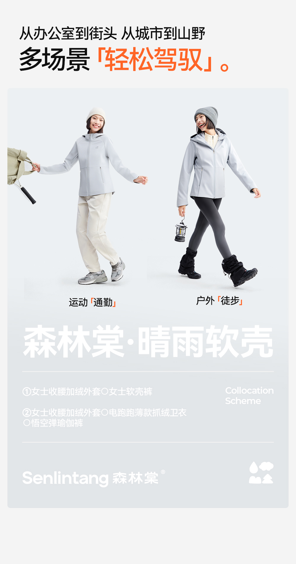 【女式收腰软壳外套】森林棠25秋冬女士晴雨户外收腰加绒防风保暖连帽外套60872501【森林棠11月专场】
