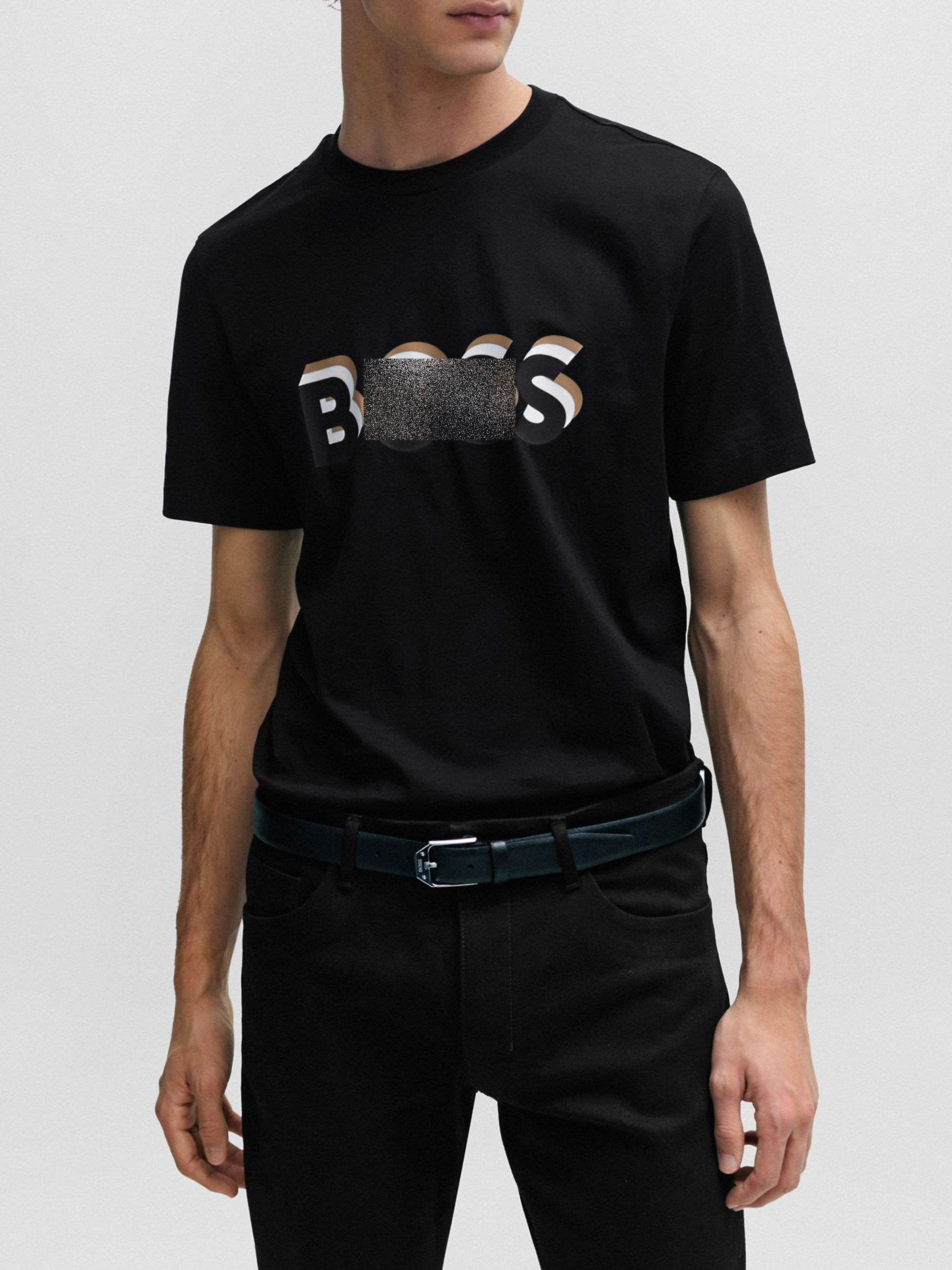 老板 Menswear 休闲 T 恤。该款式采用柔软平针织面料设计,胸前饰有老板 Menswear 标志性LOGO。