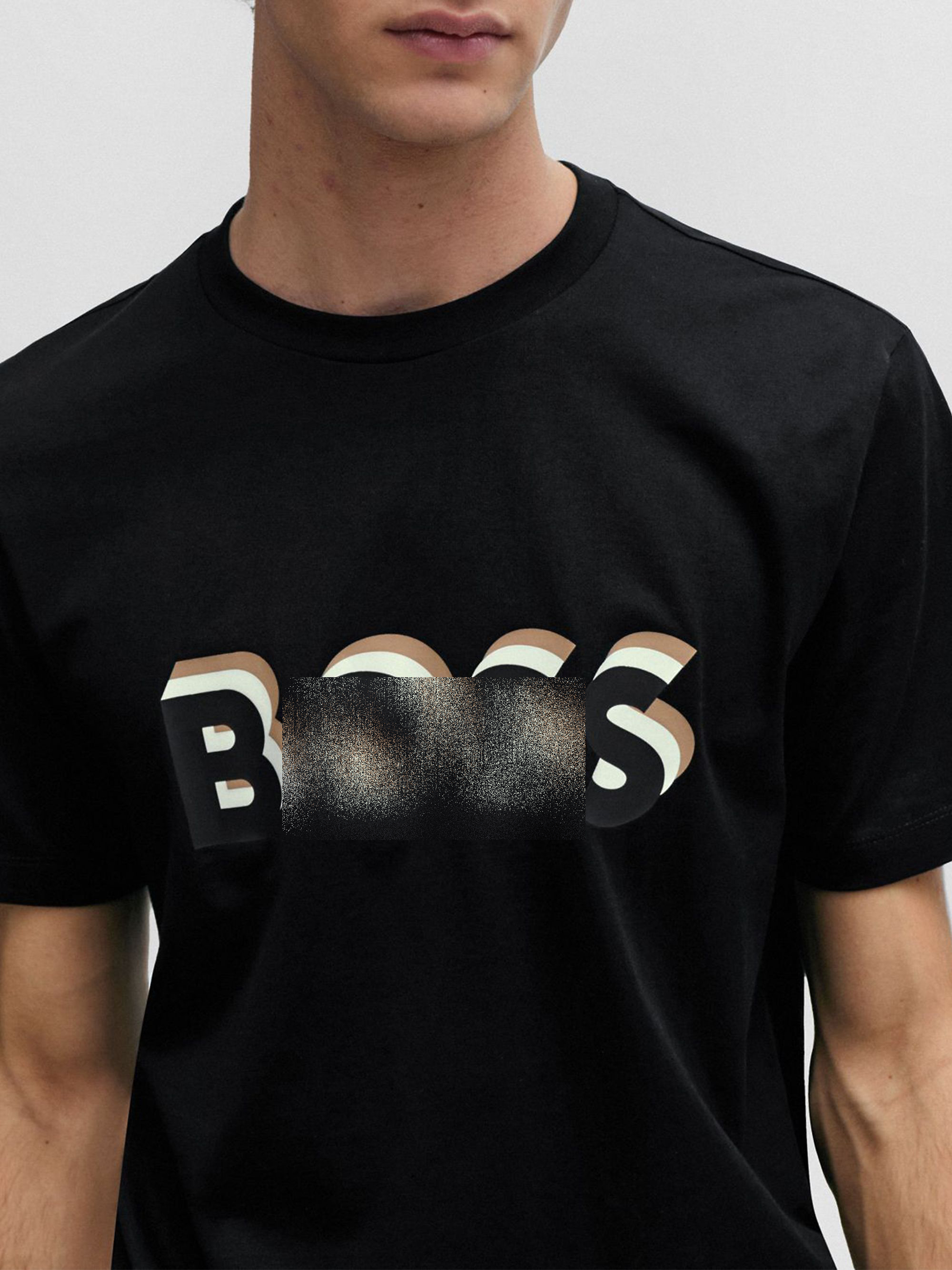 老板 男士2024夏季新款 三色叠影LOGO印花 丝光棉圆领短袖T恤 Z-11685