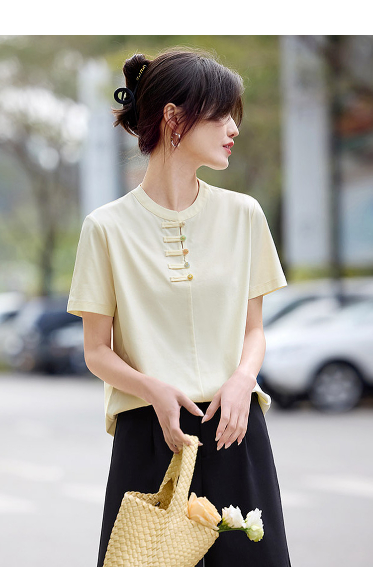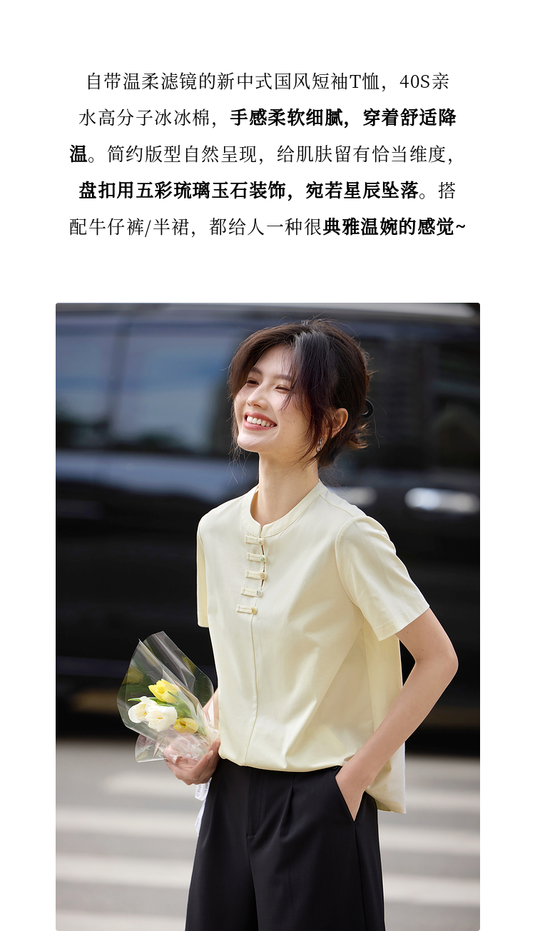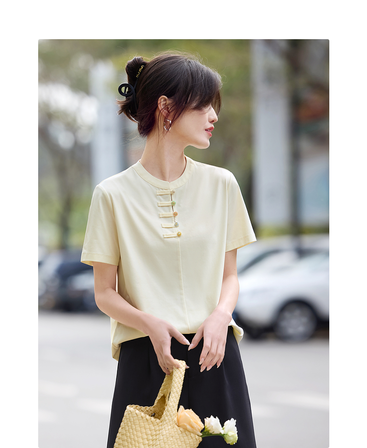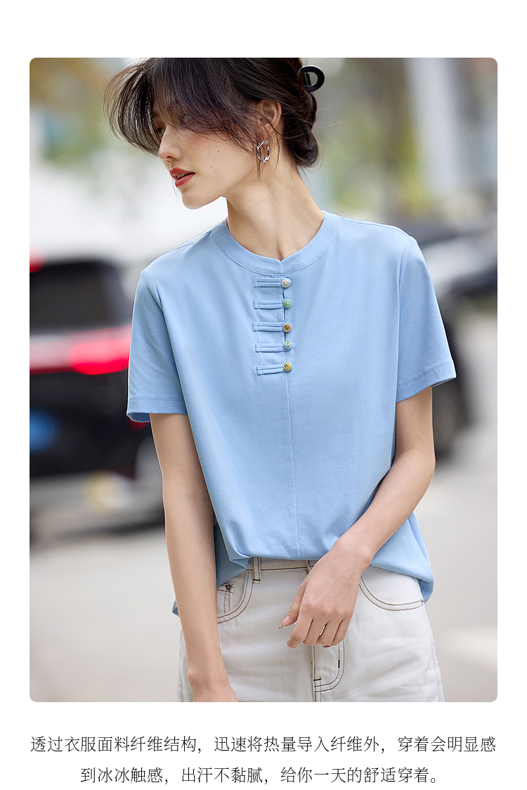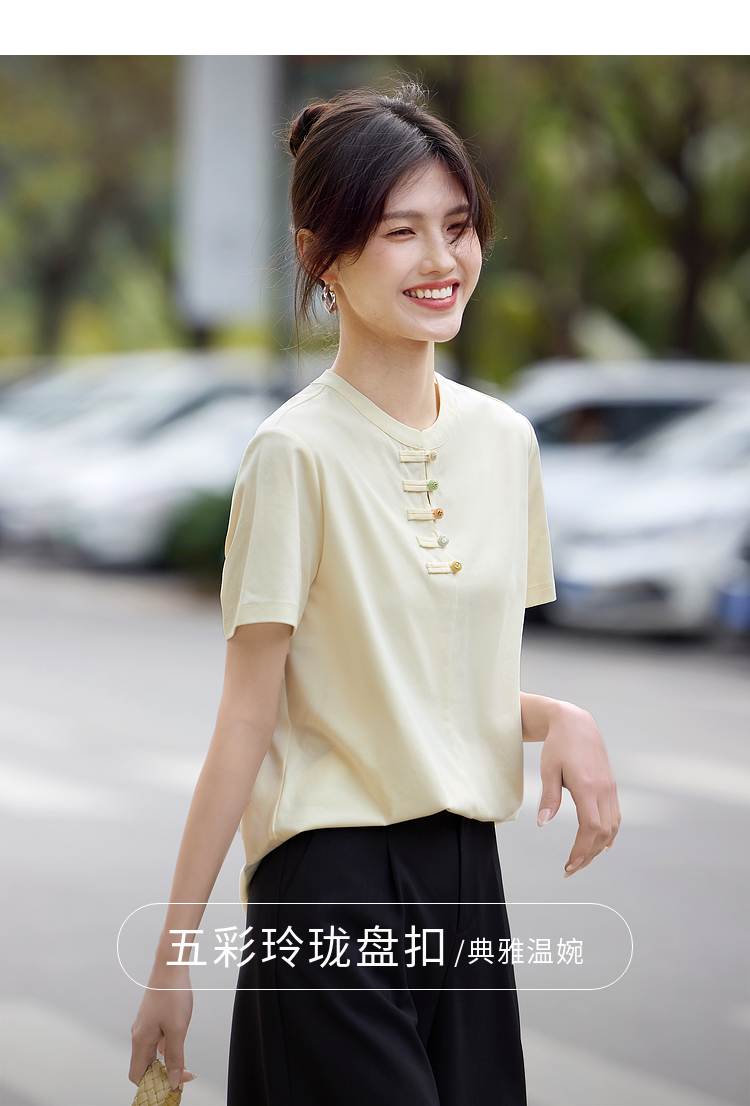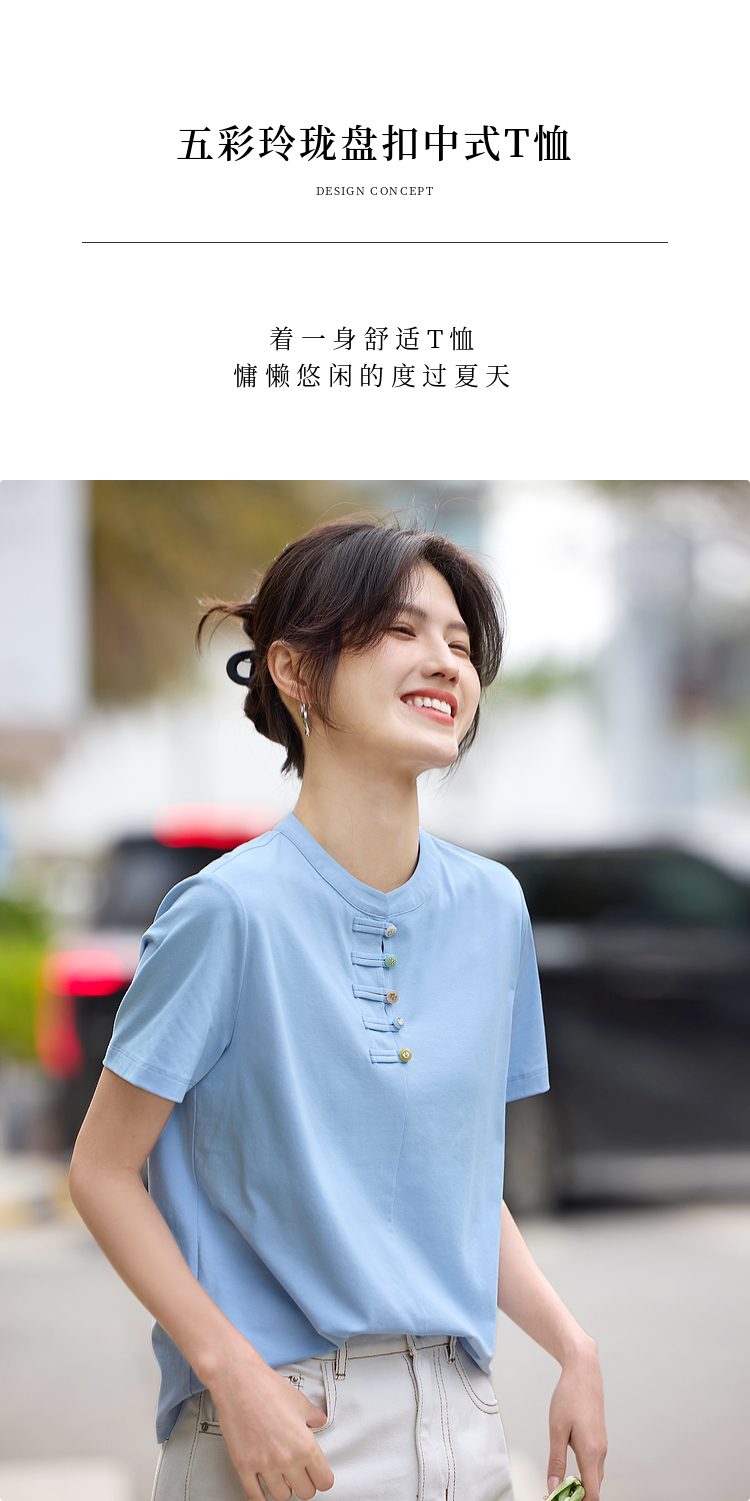 【专属特价】熙世界新中式盘扣圆领T恤女短袖2025夏新款宽松显瘦国风体恤上衣