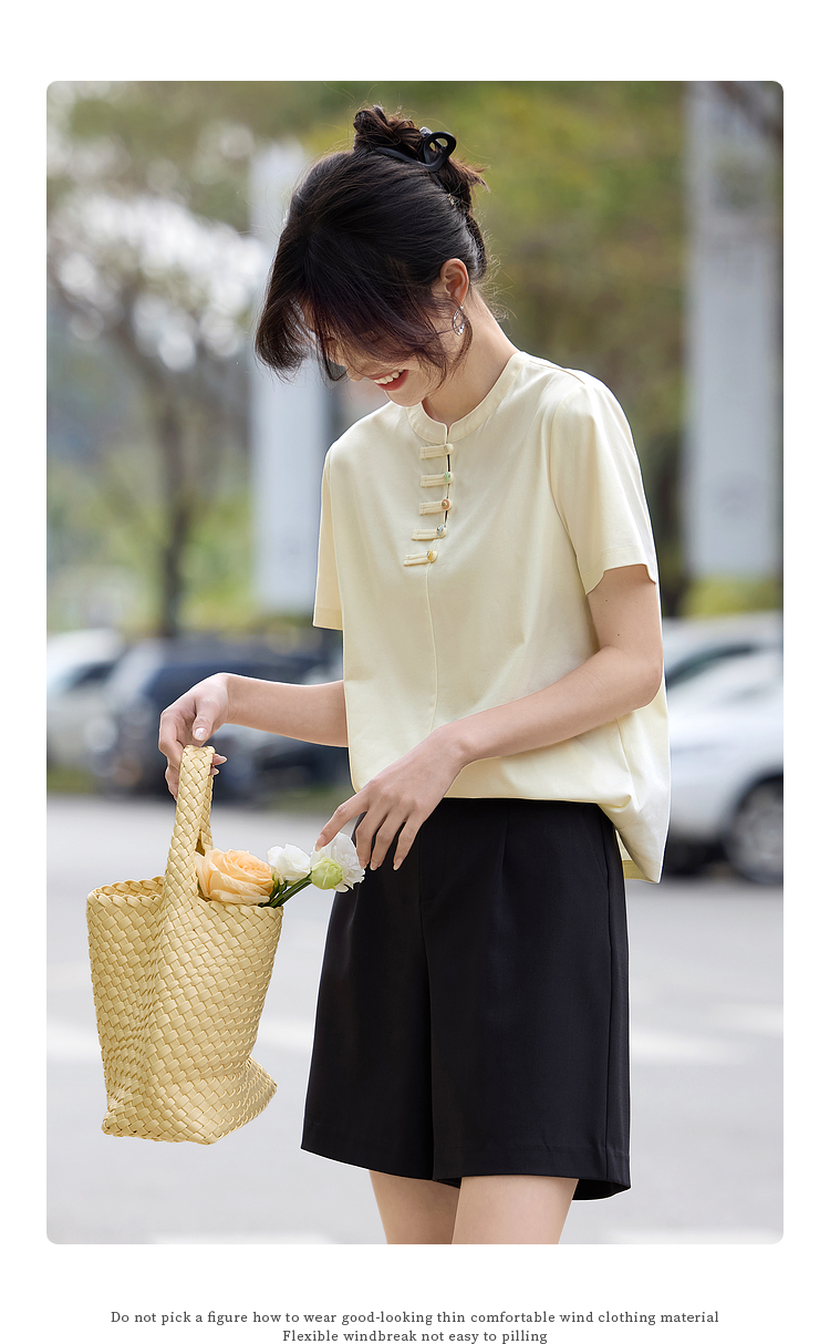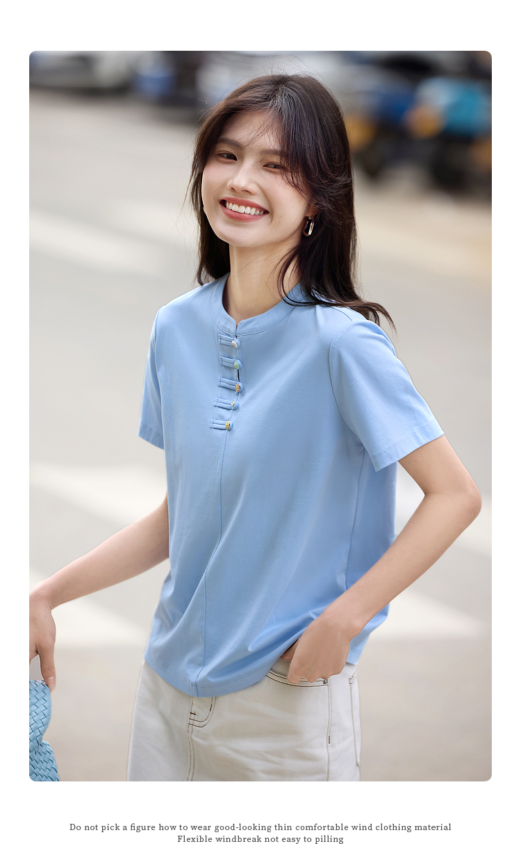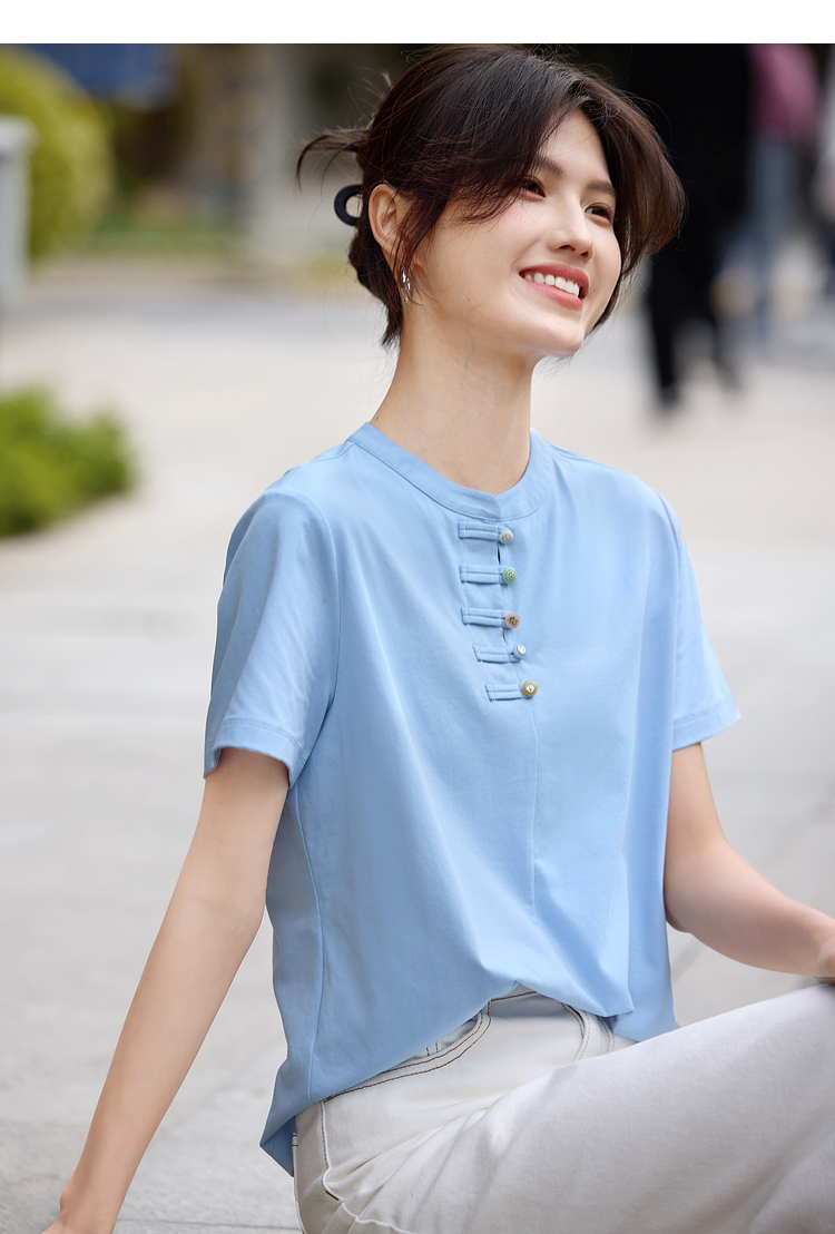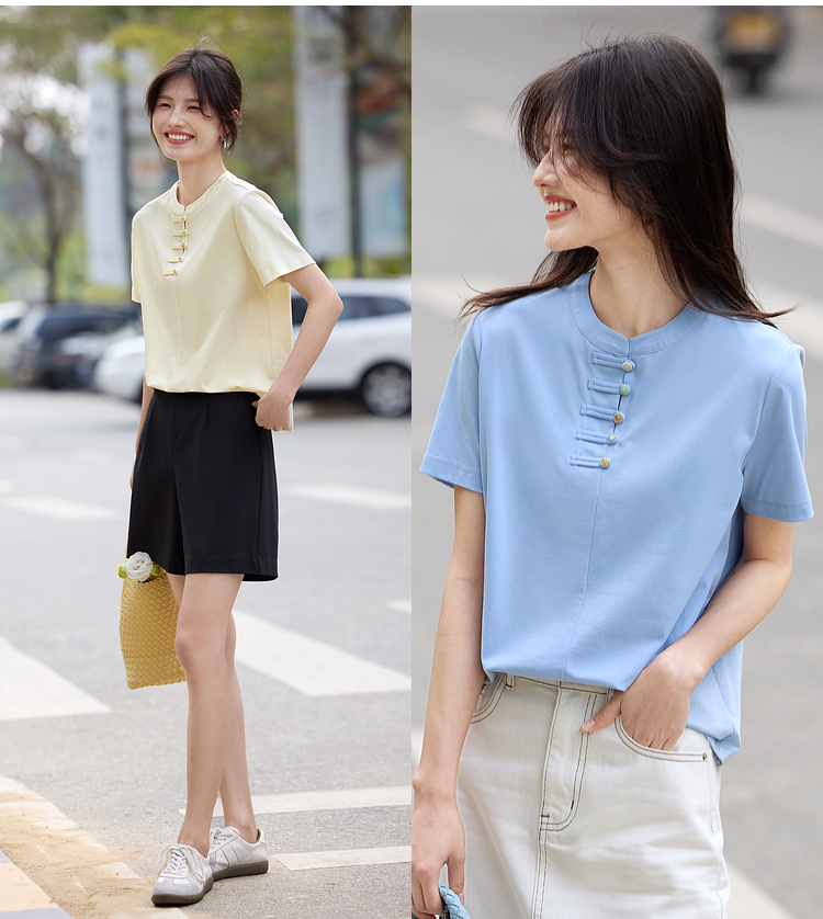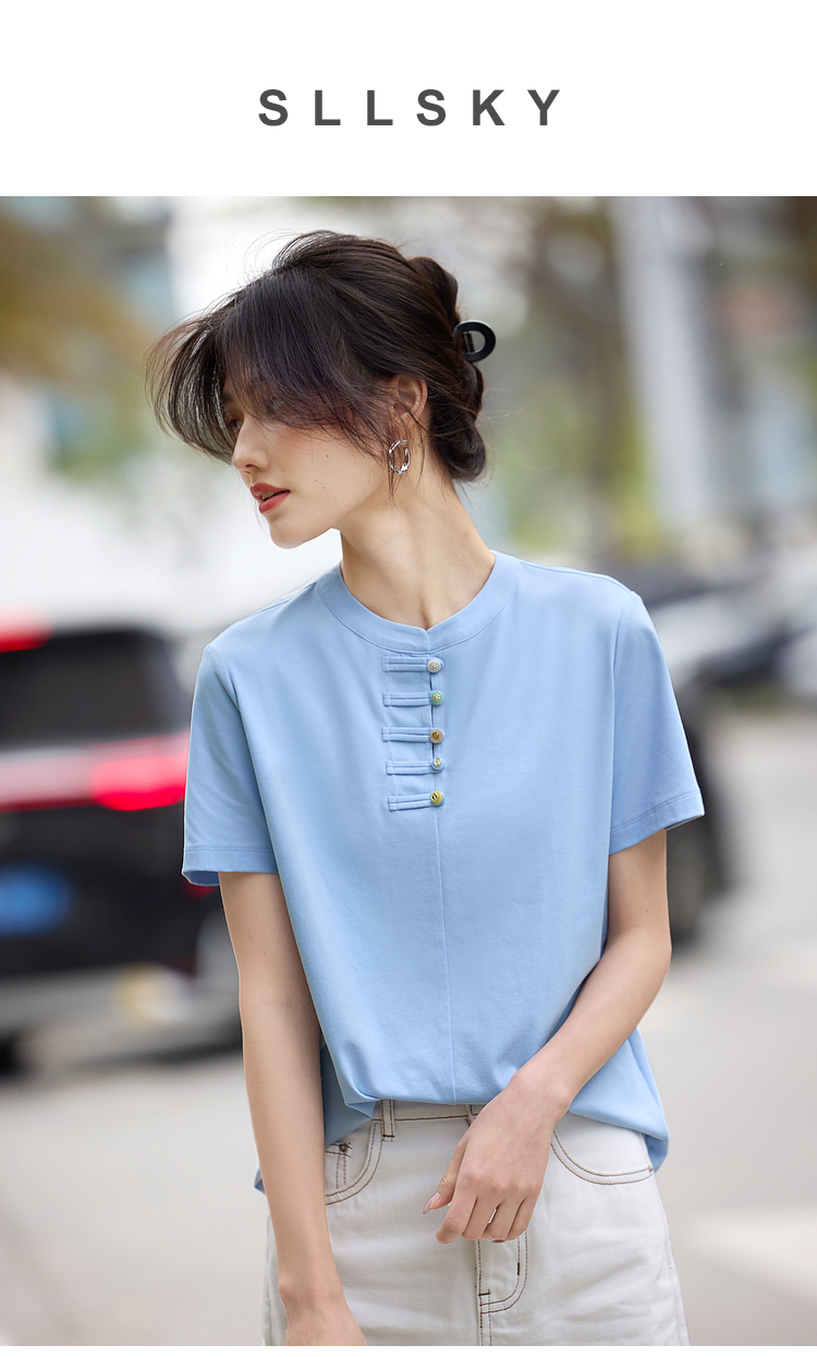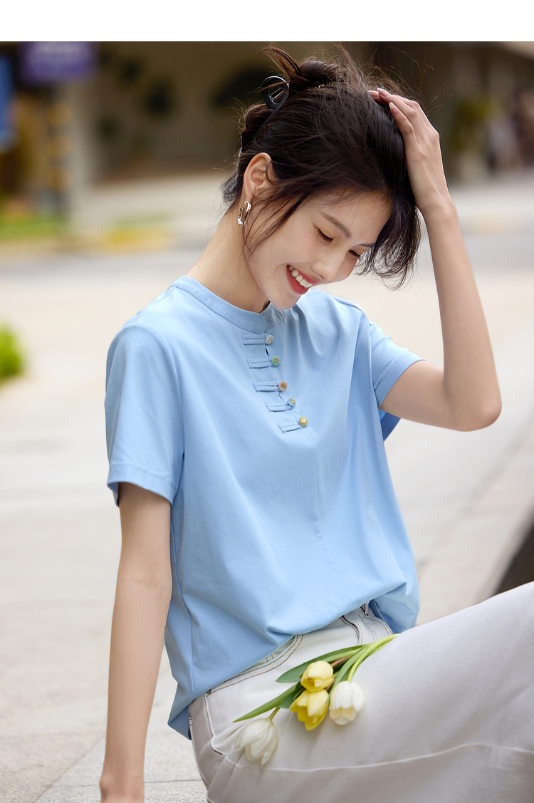 【专属特价】熙世界新中式盘扣圆领T恤女短袖2025夏新款宽松显瘦国风体恤上衣