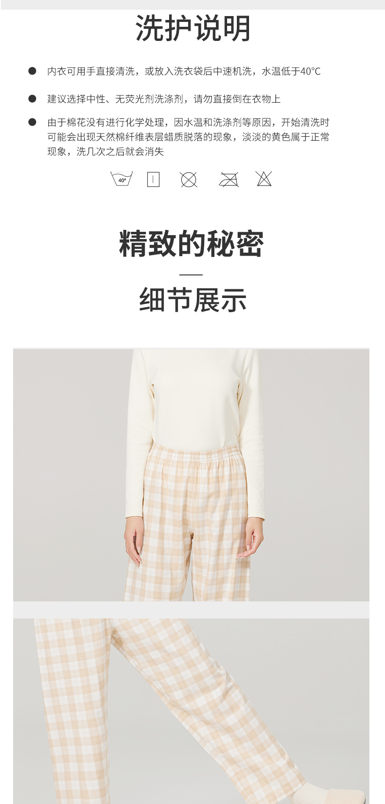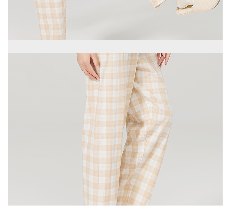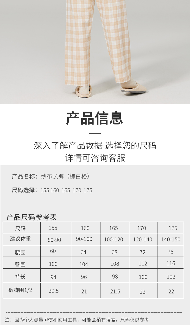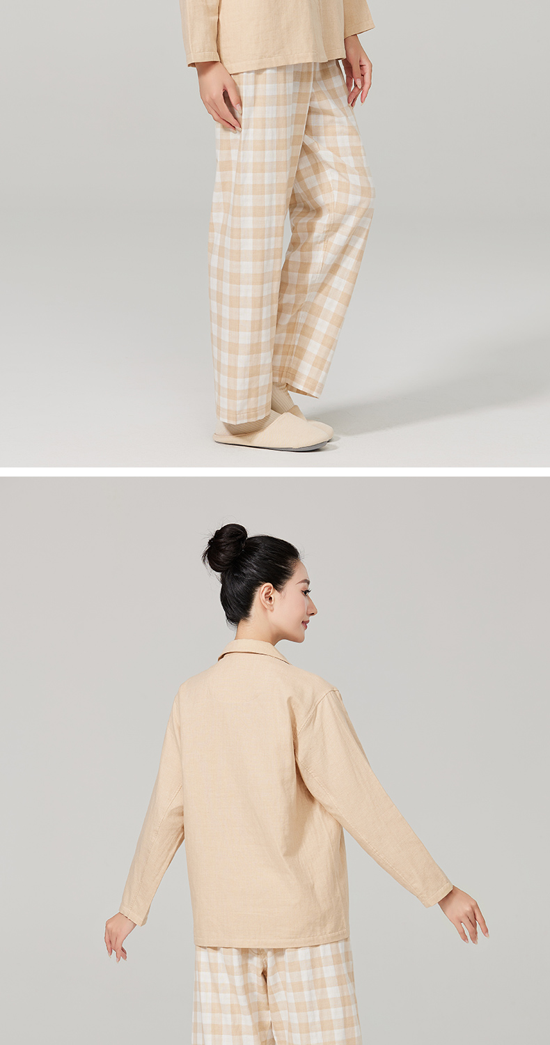 素道有机彩棉女士家居裤 100%棉纱布长裤松紧腰睡裤 梭织直筒女裤
