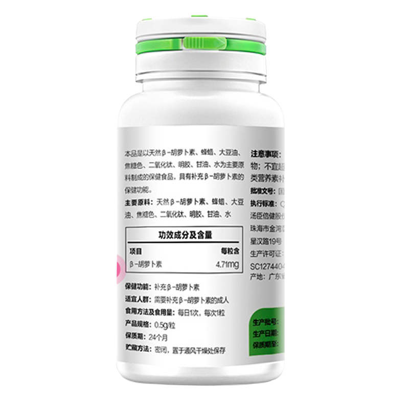 汤臣倍健 天然β-胡萝卜素软胶囊 0.5g*100粒 补钙铁锌补胡萝卜素