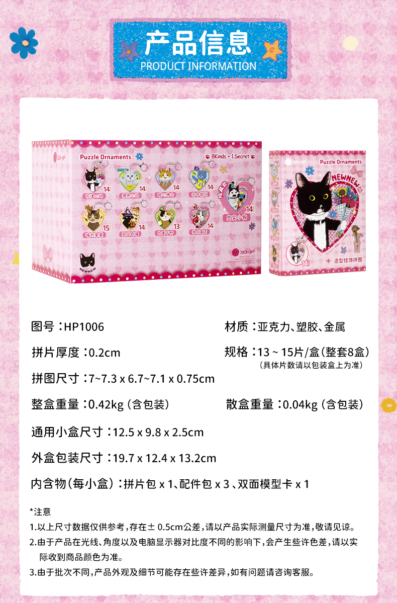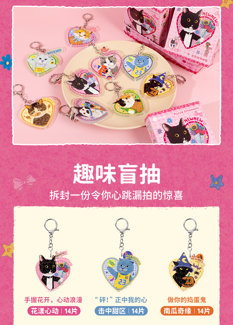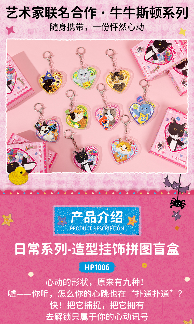13~15片 造型盲盒挂饰拼图 HP1006 牛牛斯顿 日常系列 小猫的怦然心动