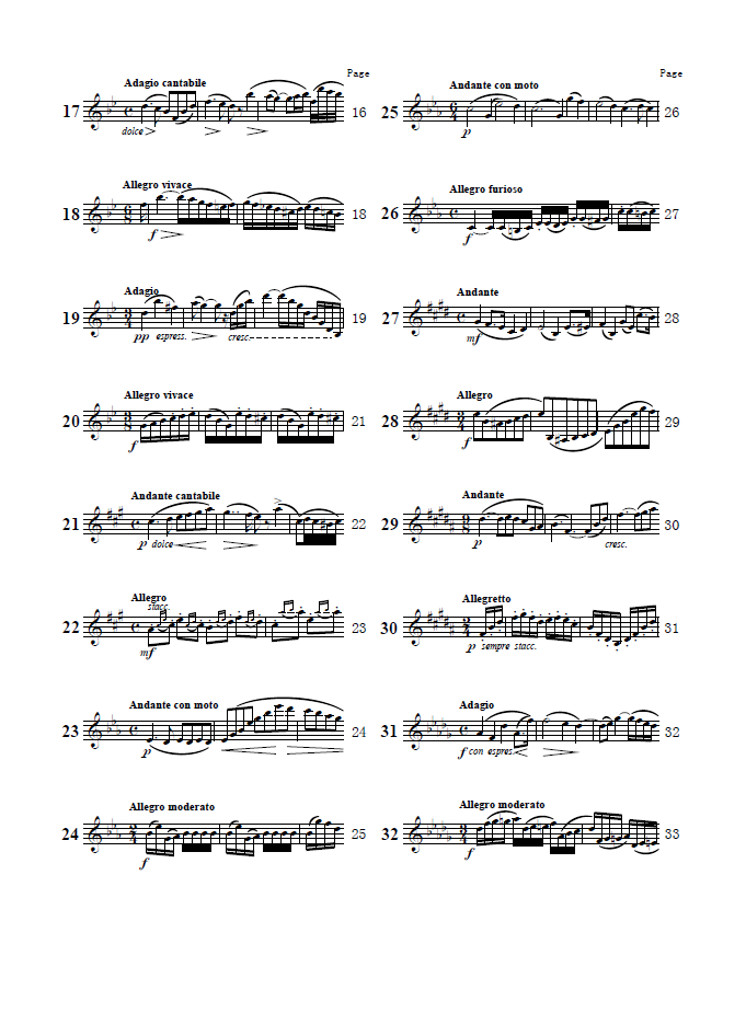 《罗塞单簧管练习曲集》主要适用于中级和高级阶段的单簧管练习者,也是目前单簧管专业学生练习曲集之一。本曲集将音乐与技术巧妙地融为一体,系统展现了单簧管演奏所需的大部分技巧。从易到难,循序渐进的练习能大大提高学生的技术水平。在练习本曲集时,无论是快节奏纯技术的作品,还是音乐性较强的作品,演奏者都应注意谱中所标记的音乐术语和表情记号,且应根据自身条件,由慢到快、循序渐进地进行练习,