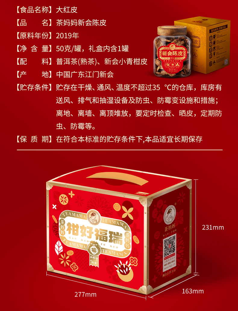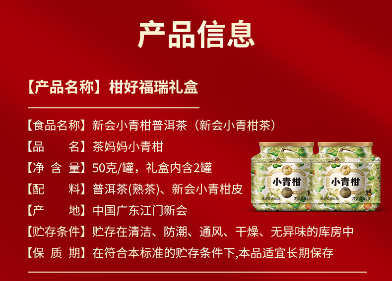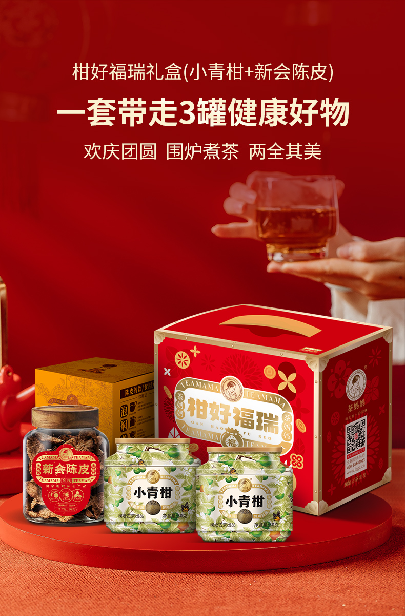 【积分当钱花】澜沧古茶2024年柑好福瑞茶妈妈小青柑普洱茶熟茶新会陈皮组合礼盒150g