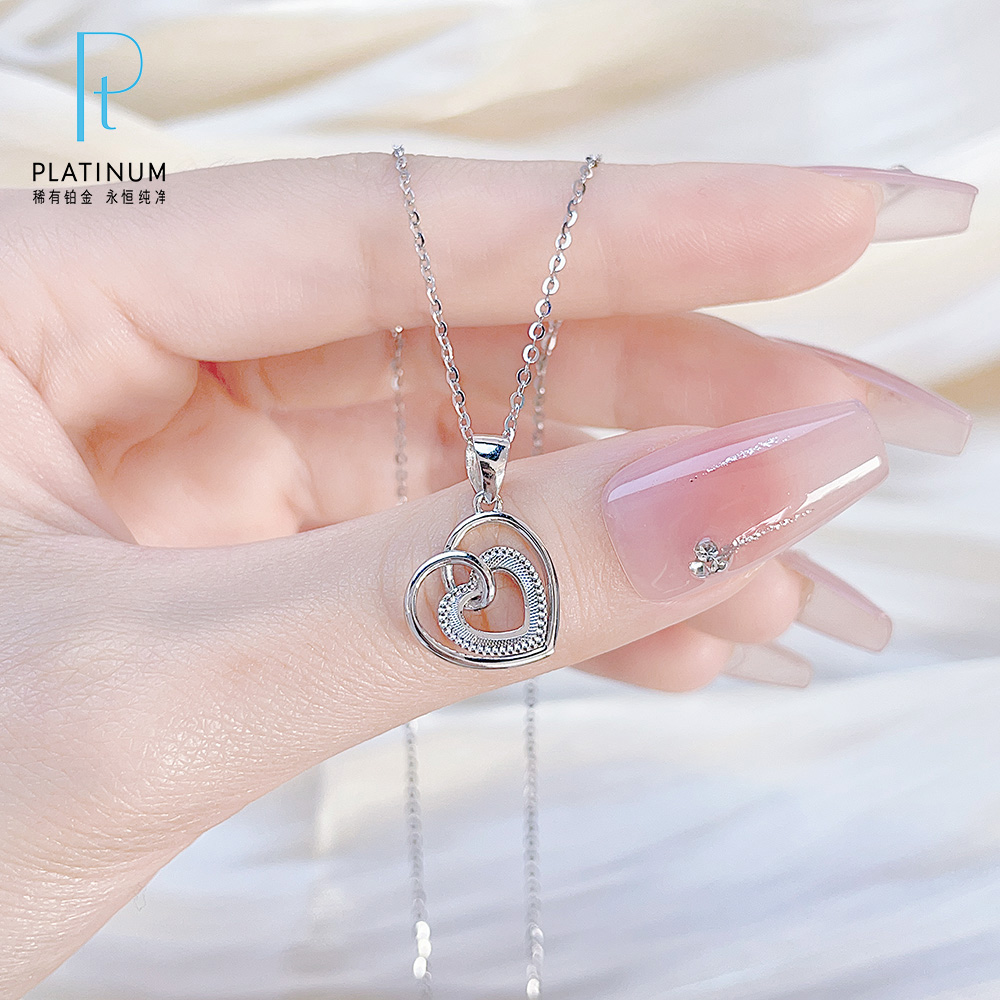 【限时8.8折】PT950 #怦然心动 #CNC 【国际铂金协会 精品】铂金镂空CNC心心相惜爱心心形吊坠(不含链)(ACPTDZ00055)预售产品下单后不退款不退货不换货不补差价)