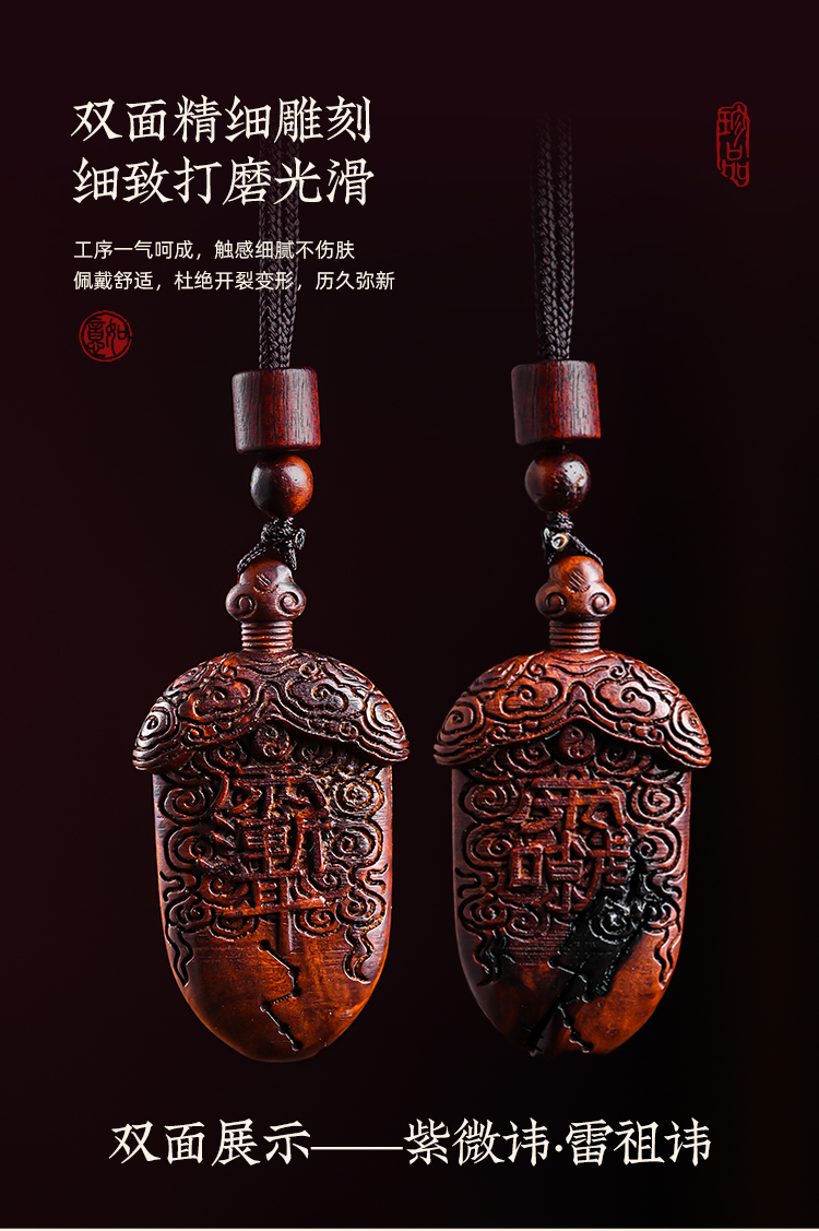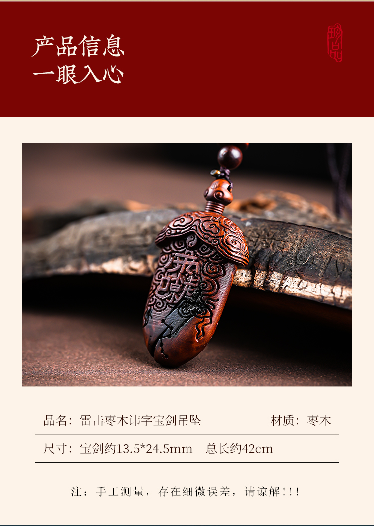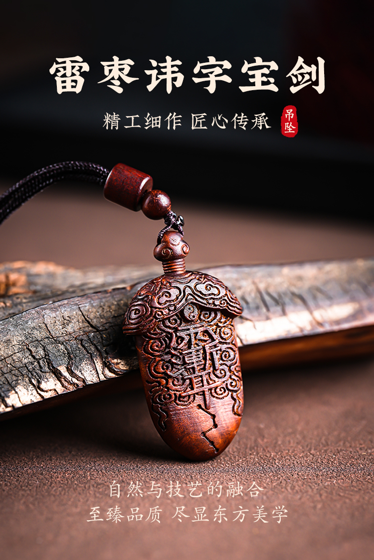 雷击木宝剑吊坠天然枣木雕紫薇北斗七星挂件饰品