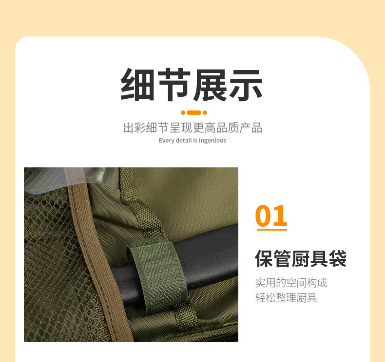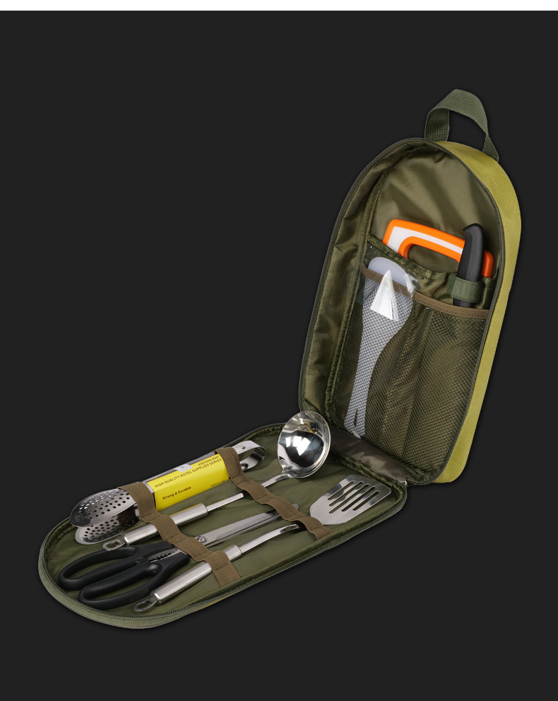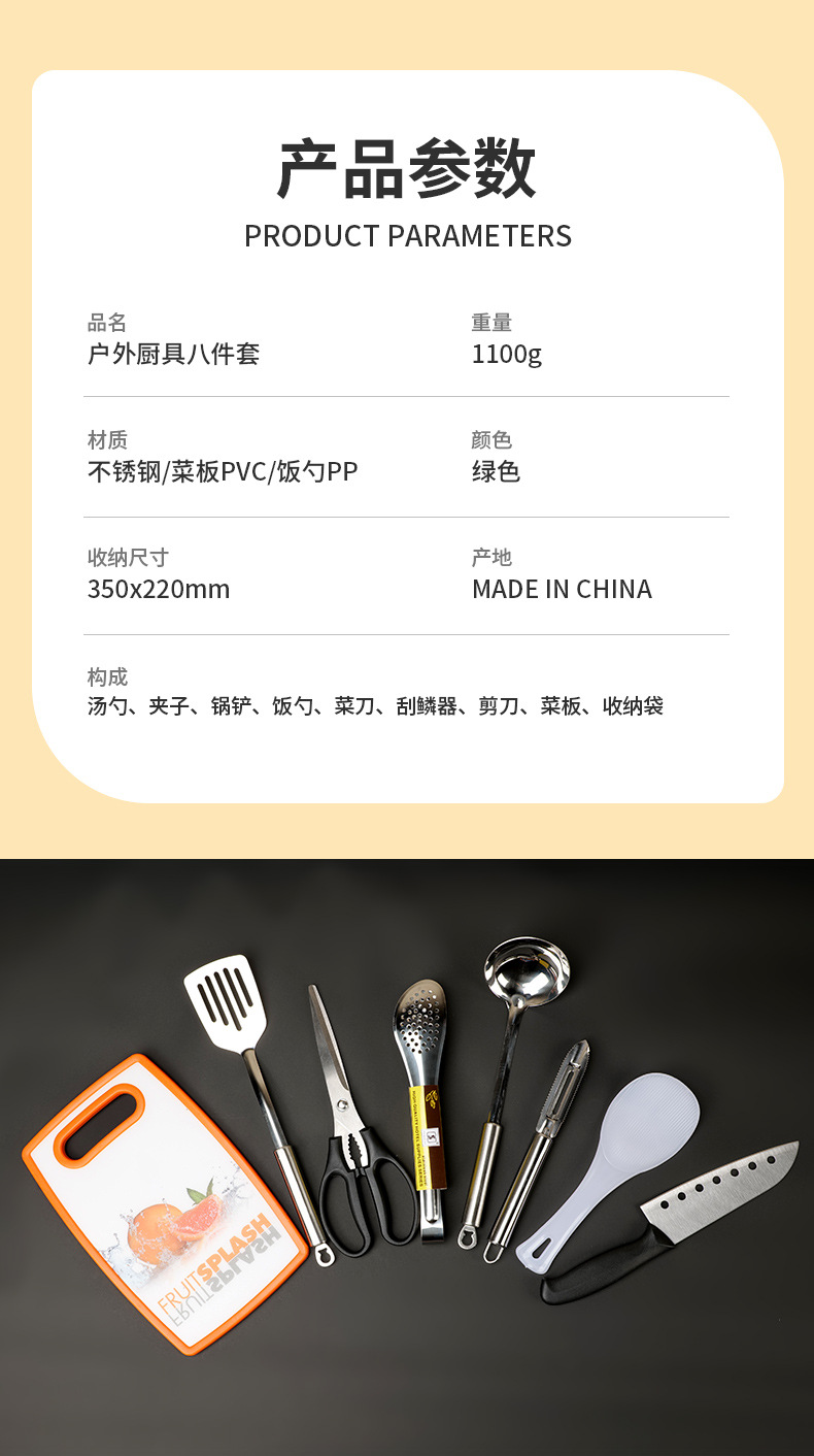 【运动装备】跨境户外炊具套装野炊厨具便携201不锈钢收纳手提包野炊包八件套