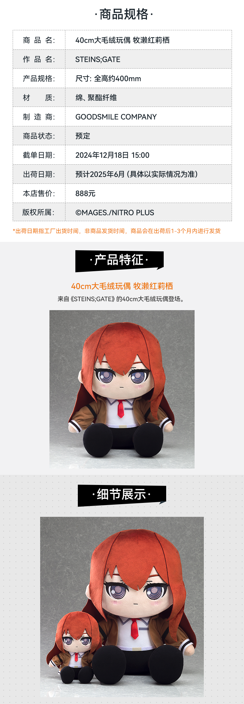 【GSC现货】40cm大毛绒玩偶 牧濑红莉栖 STEINS;GATE
