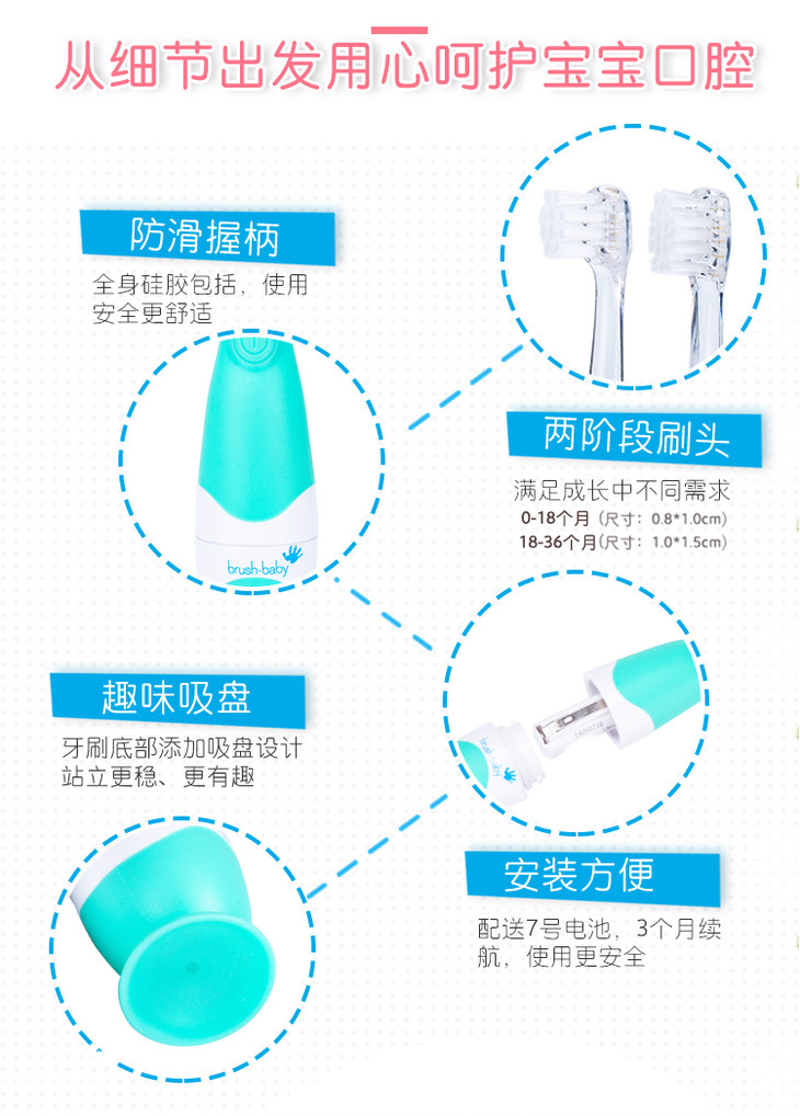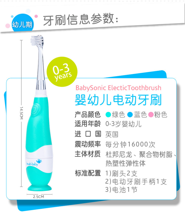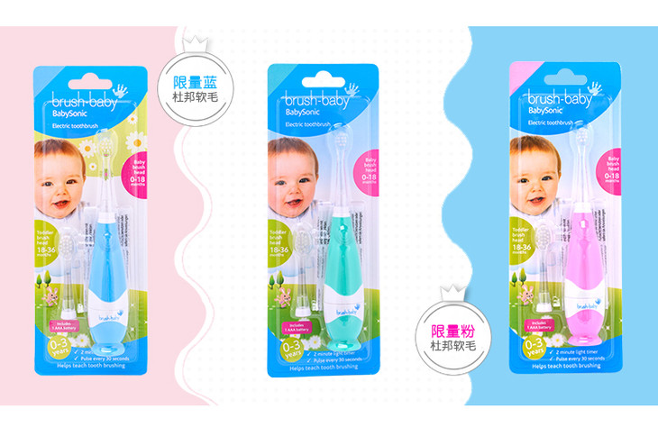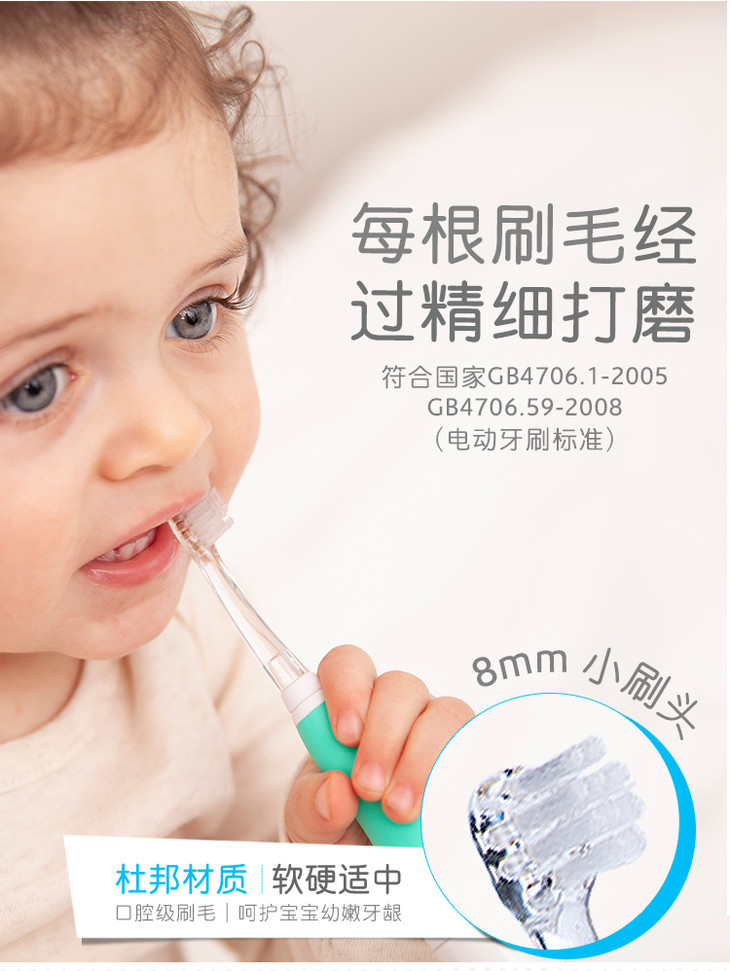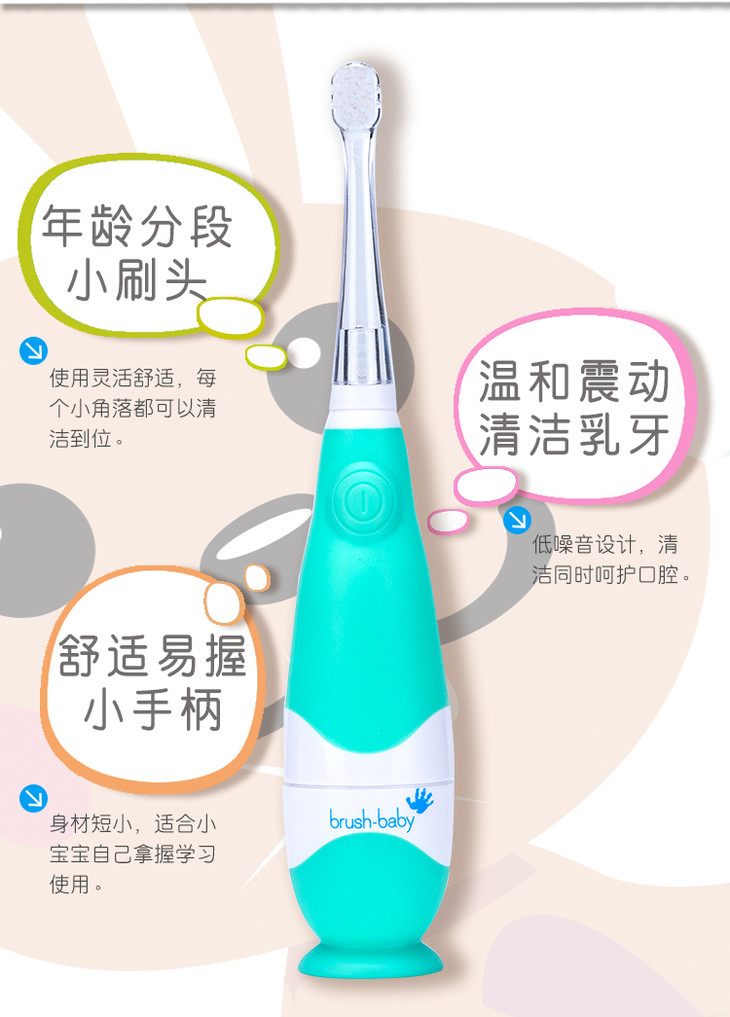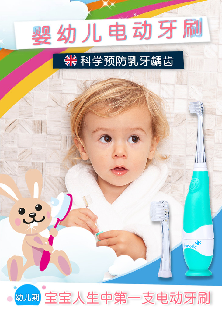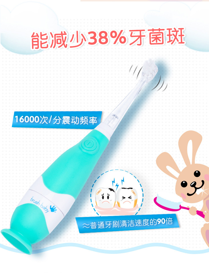 brush-baby百刷宝贝婴幼儿电动牙刷3岁以下软毛防水智能牙刷