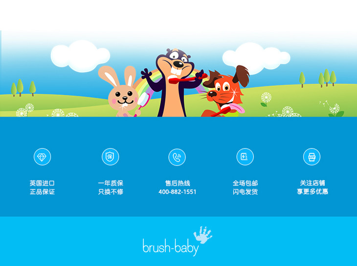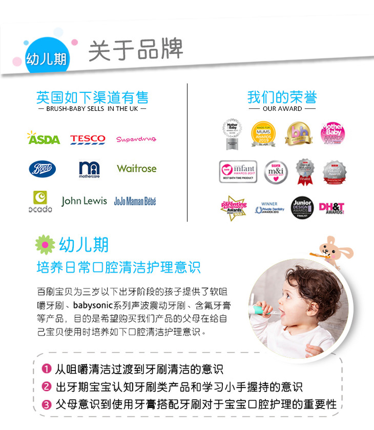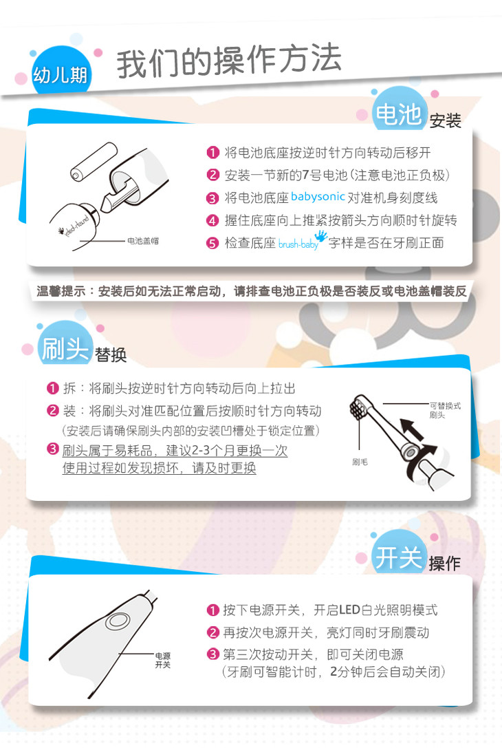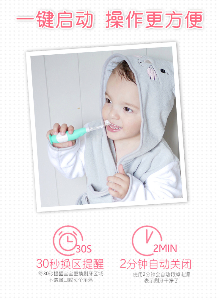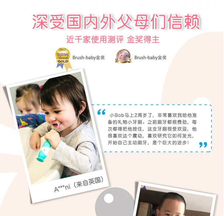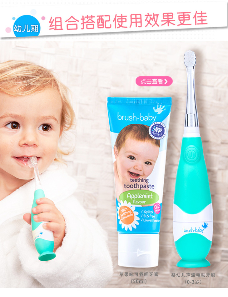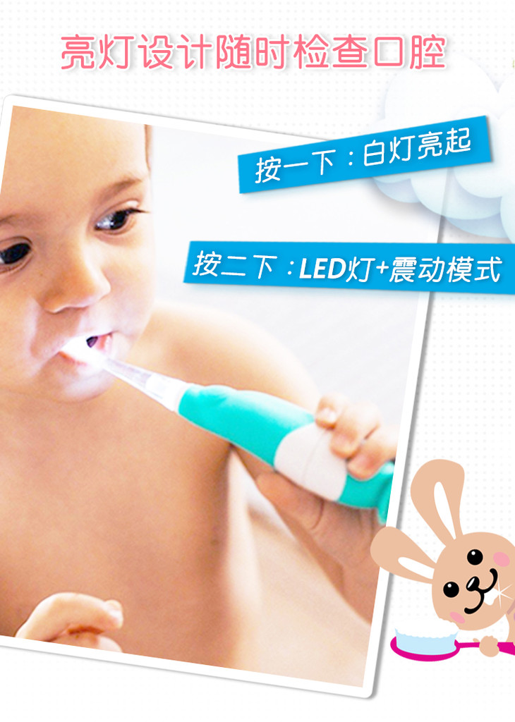 brush-baby百刷宝贝婴幼儿电动牙刷3岁以下软毛防水智能牙刷