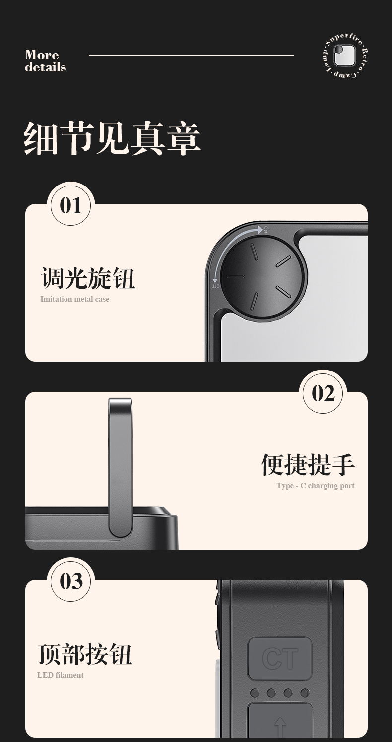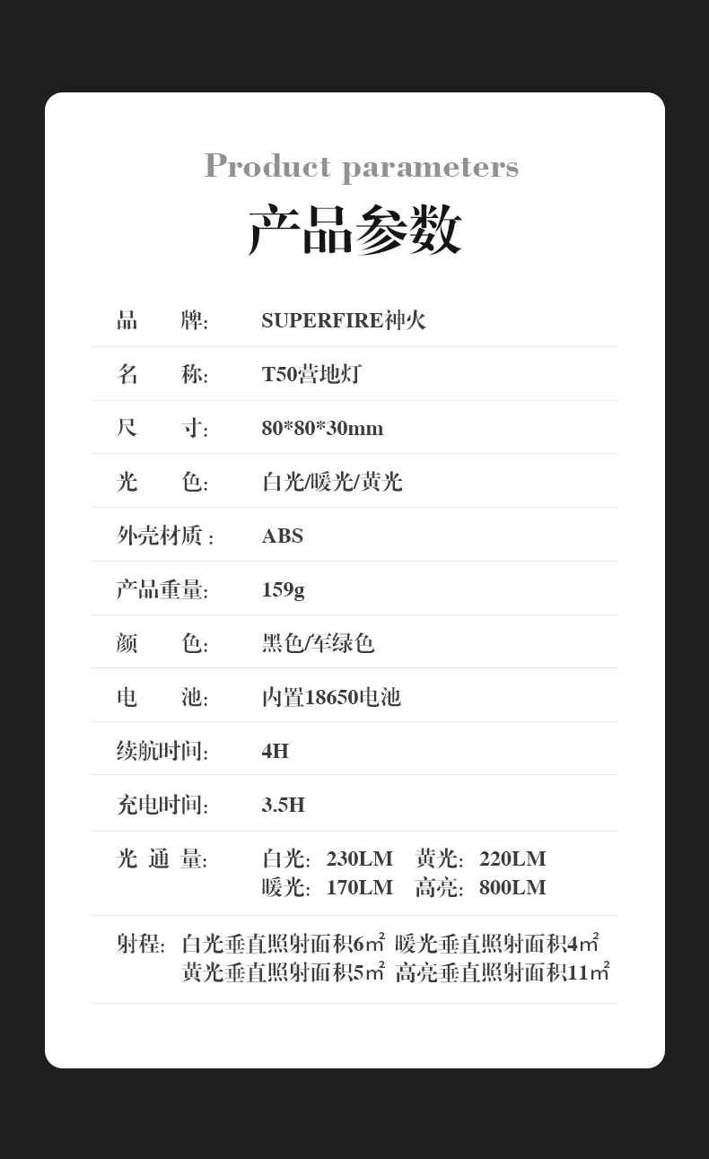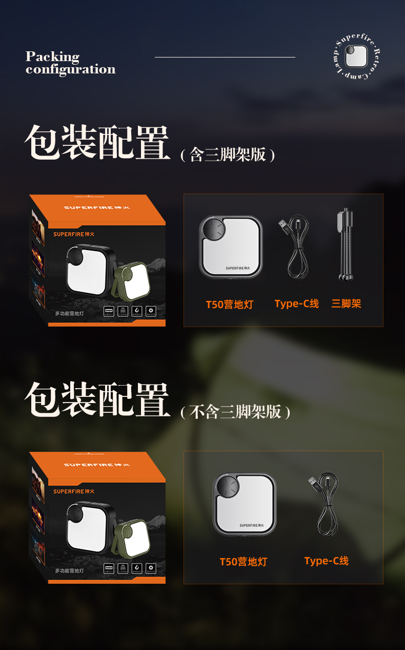 SUPERFIRE神火T50营地灯可充电户外露营家居照明多功能露营灯