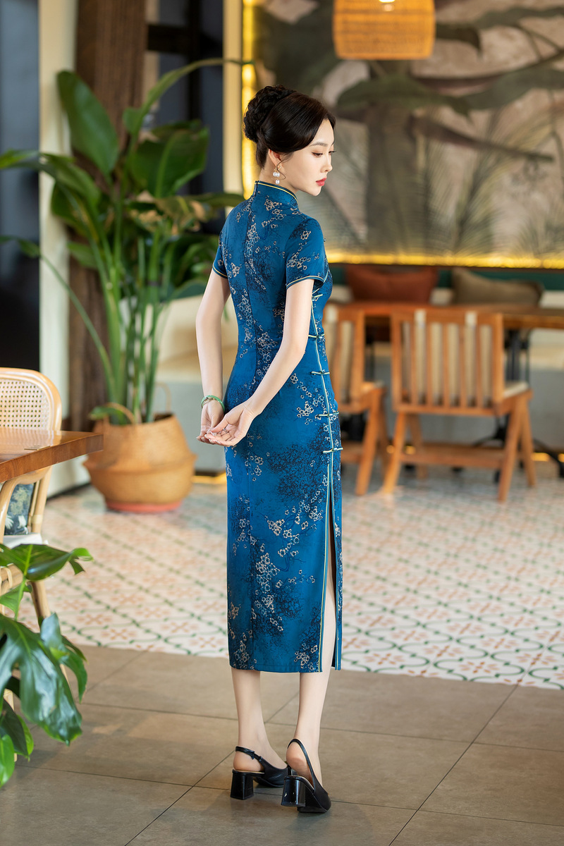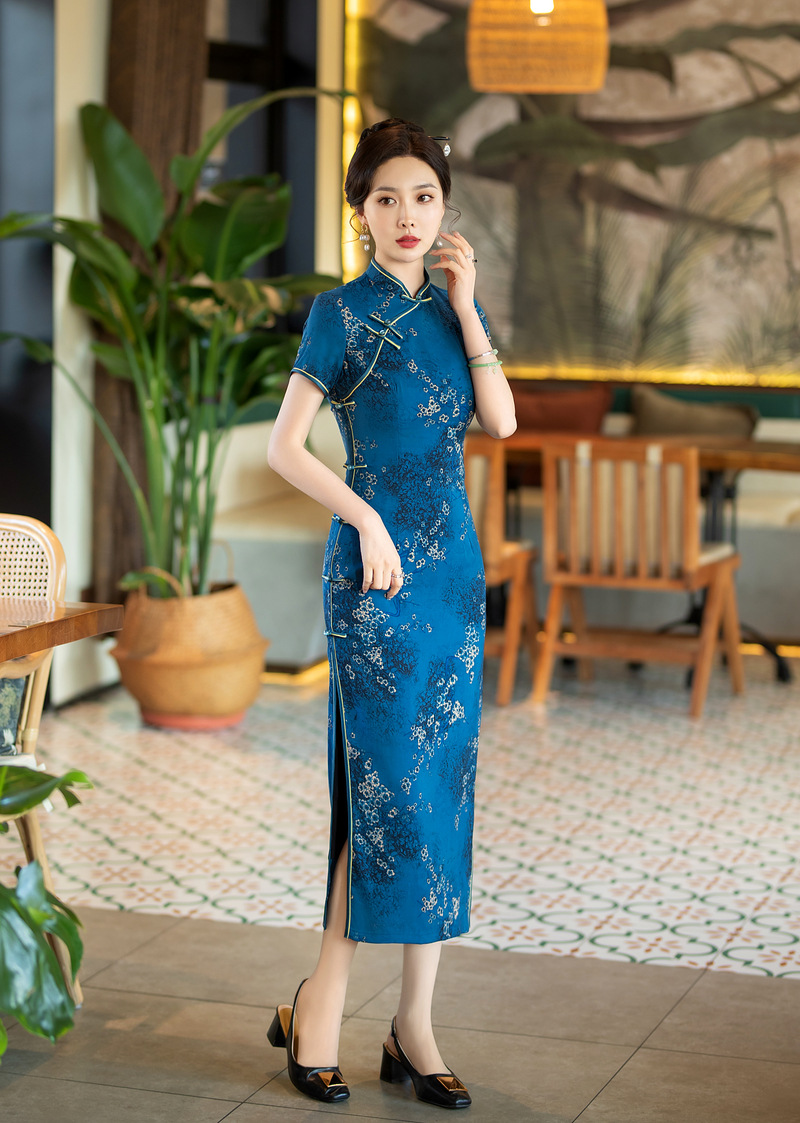 春季新款,花罗改良长款旗袍日常修身显瘦中国风时尚气质旗袍ZA-5186
