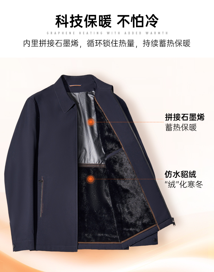 【实付满399送保温杯】【翻领加绒夹克】石墨烯行政夹克外套仿水貂绒通勤保暖上衣JZ401
