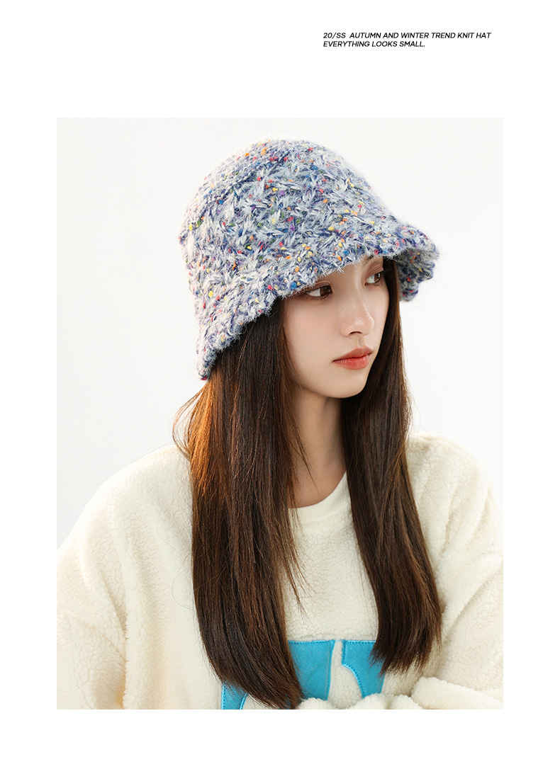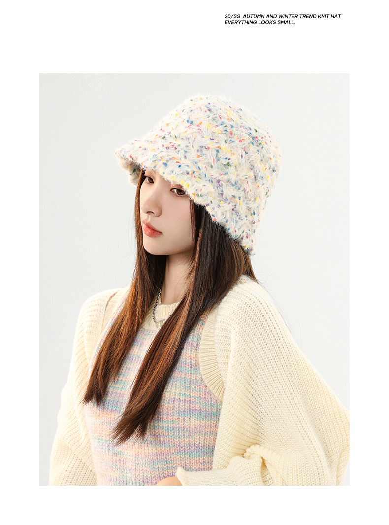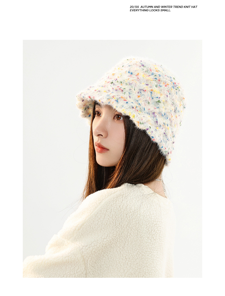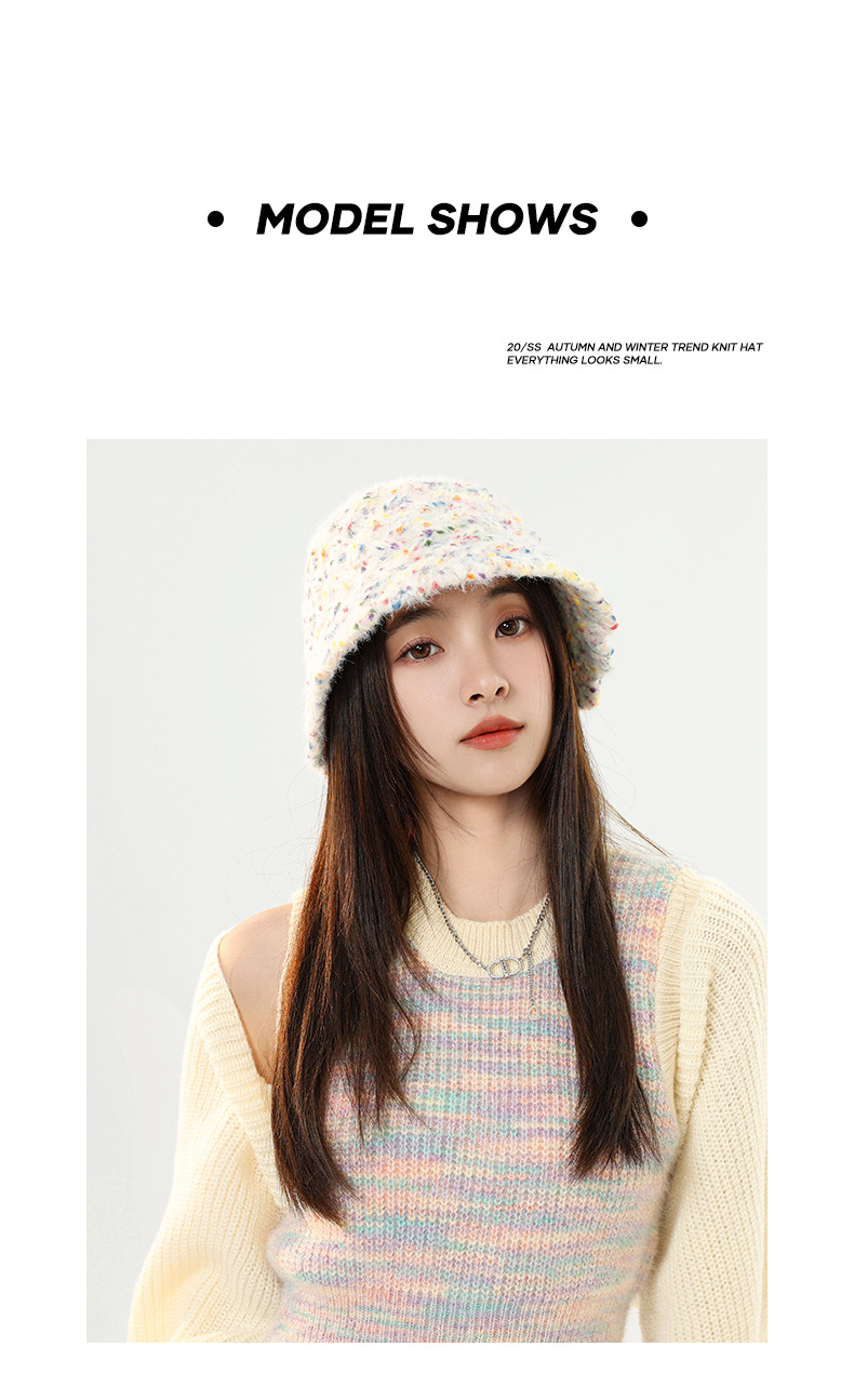 冬季【七彩碎点点拉毛盆帽】显脸小针织渔夫帽 保暖护耳仿兔毛线帽 防寒毛茸茸潮
