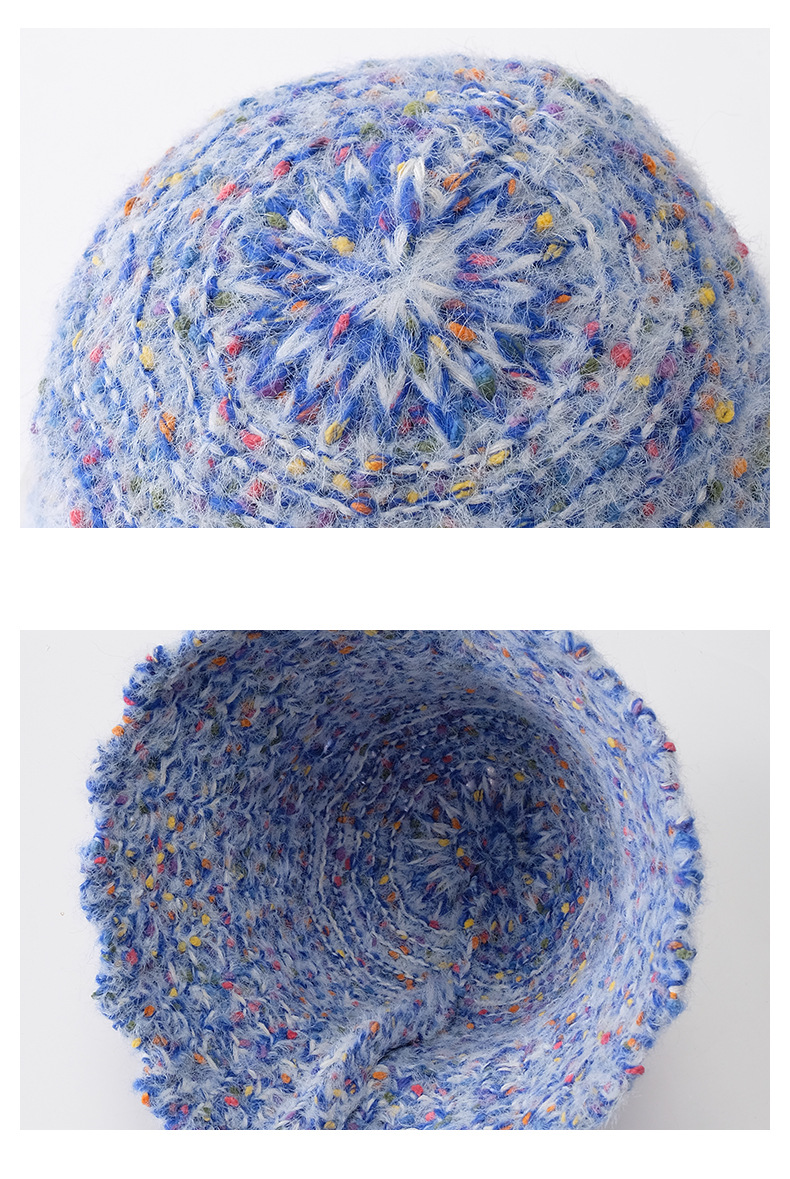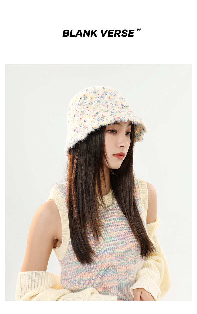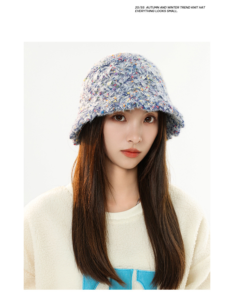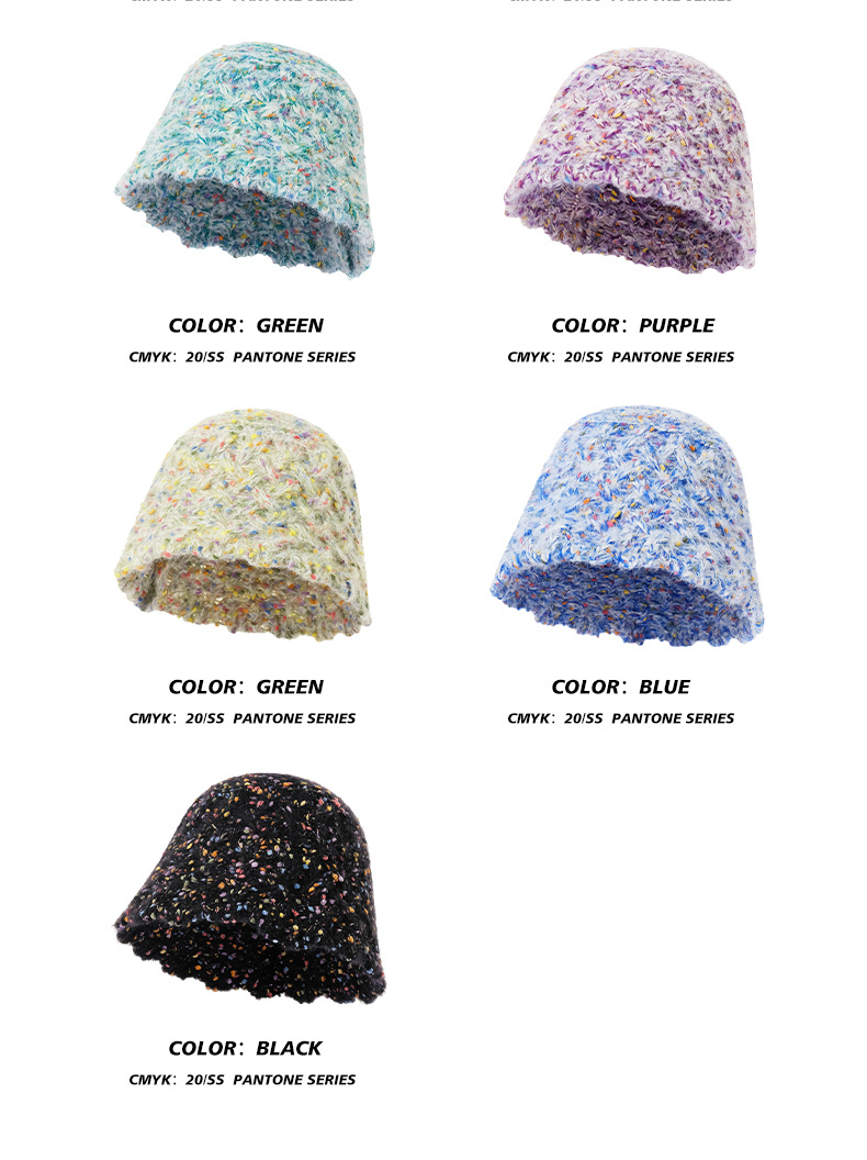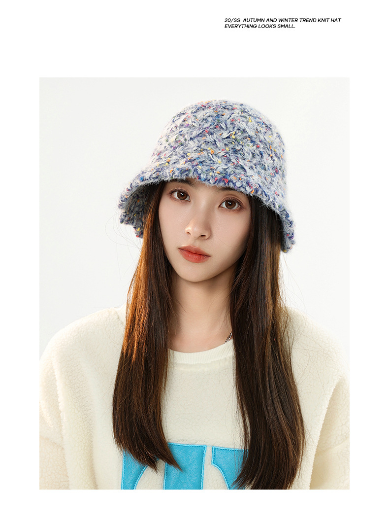 冬季【七彩碎点点拉毛盆帽】显脸小针织渔夫帽 保暖护耳仿兔毛线帽 防寒毛茸茸潮