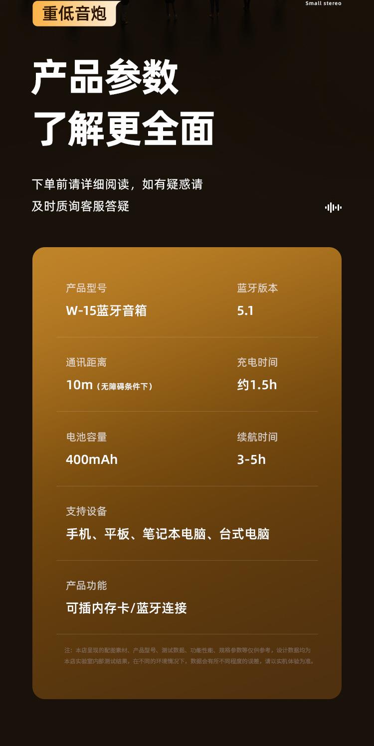 W15无线蓝牙音箱音响tws互联超长续航新款小音箱