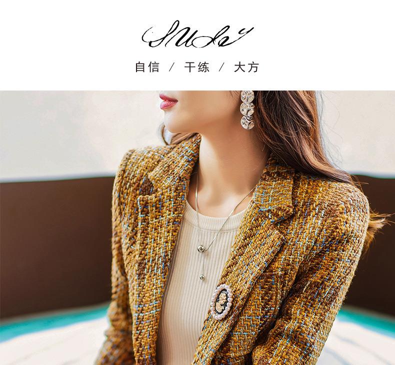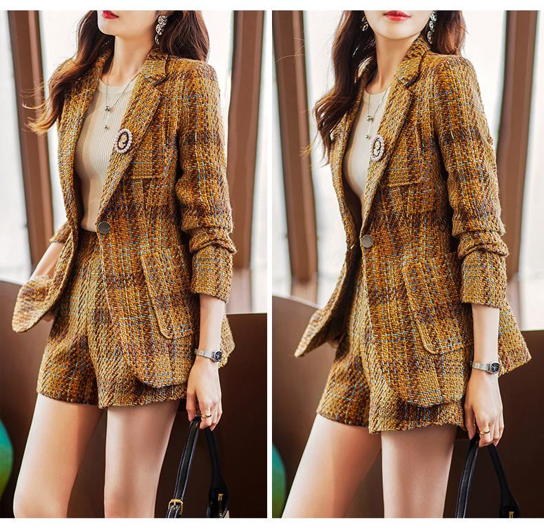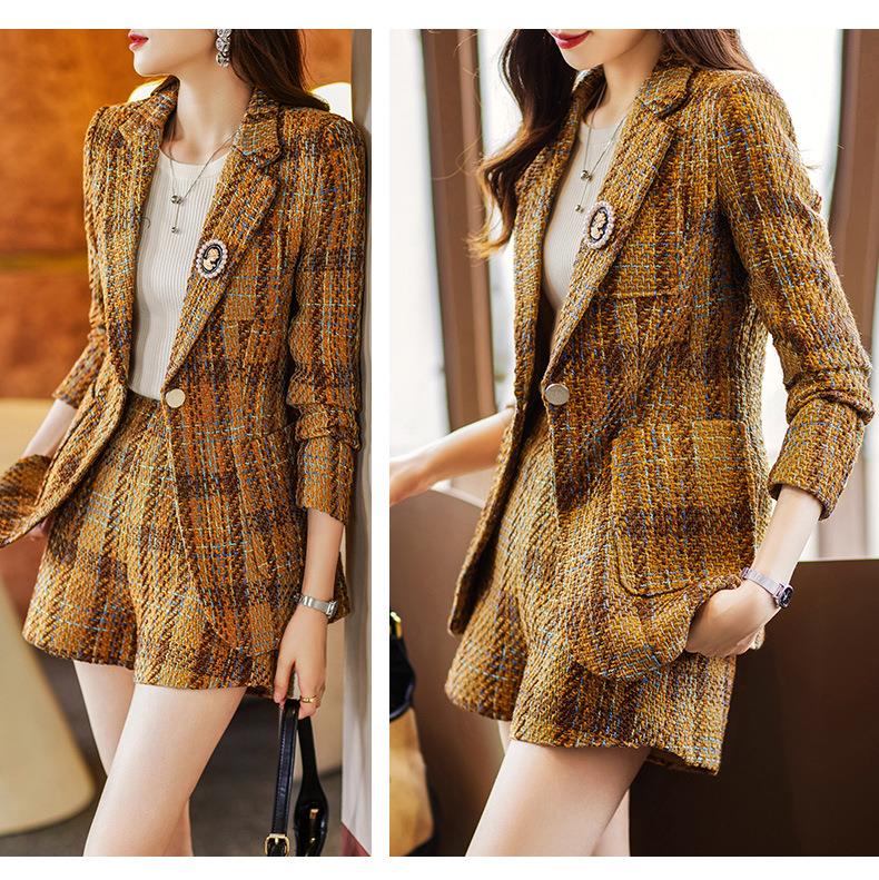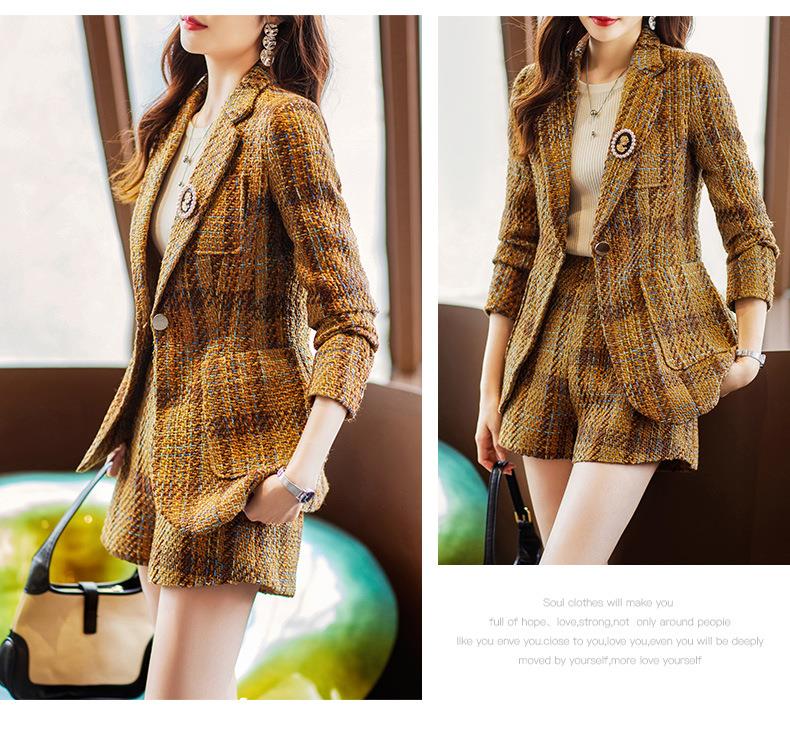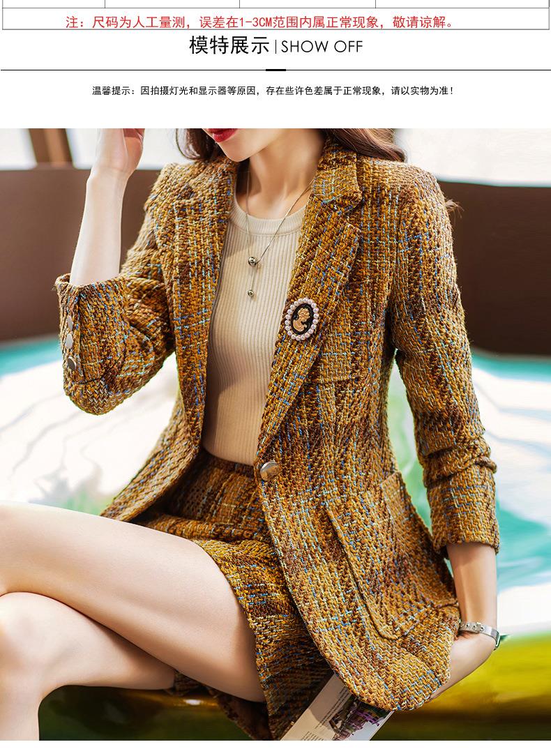娜璐多 西装套装女新款秋季复古格子法式名媛高级感小洋装通勤外套两件套