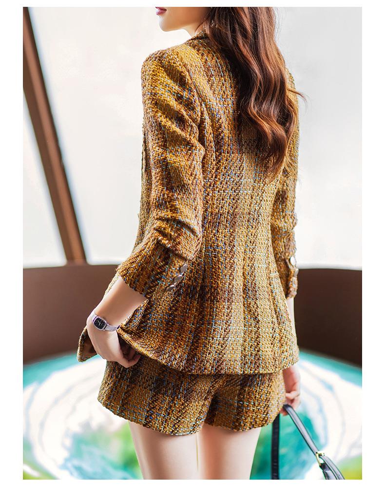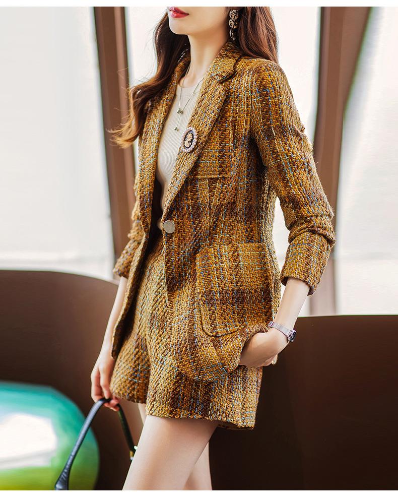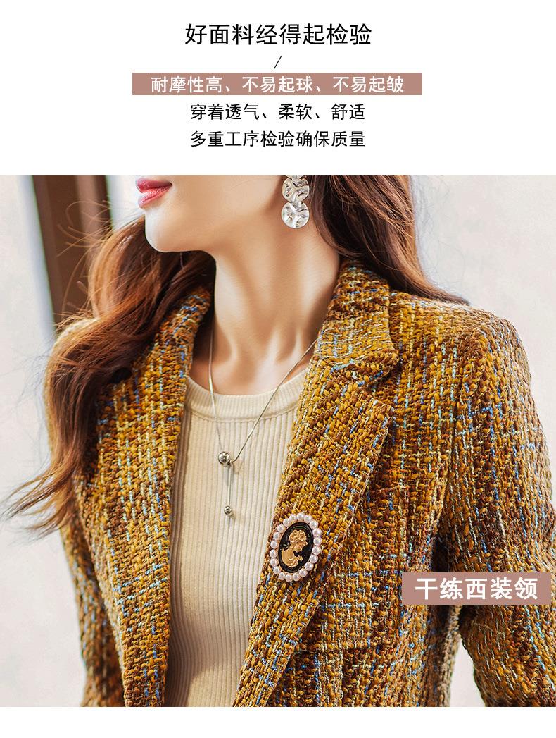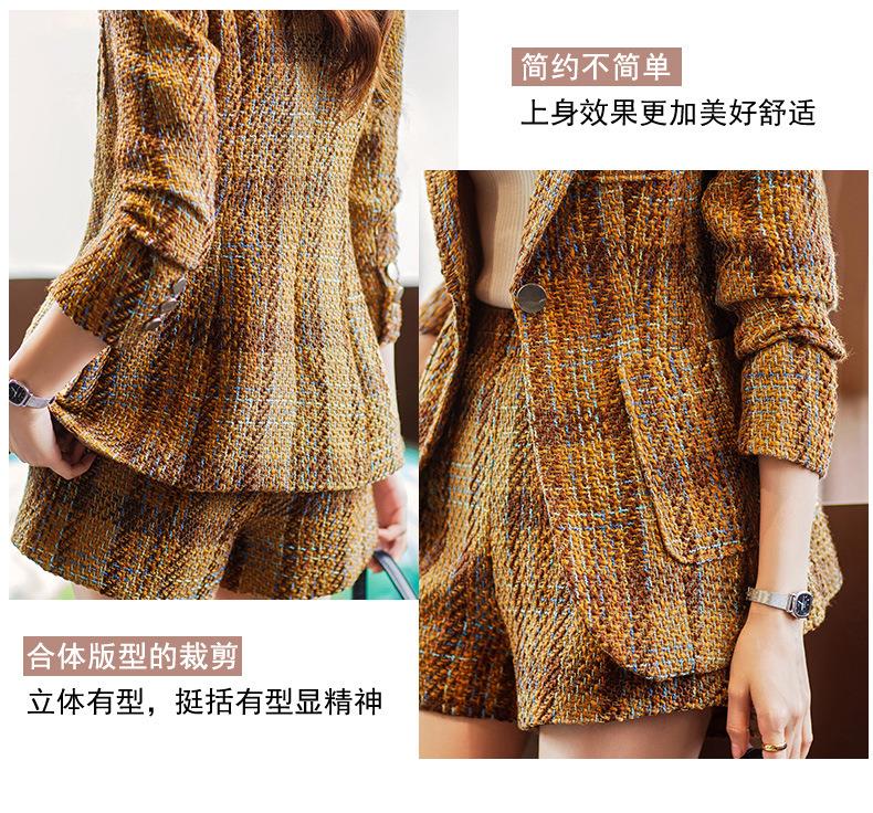 娜璐多 西装套装女新款秋季复古格子法式名媛高级感小洋装通勤外套两件套