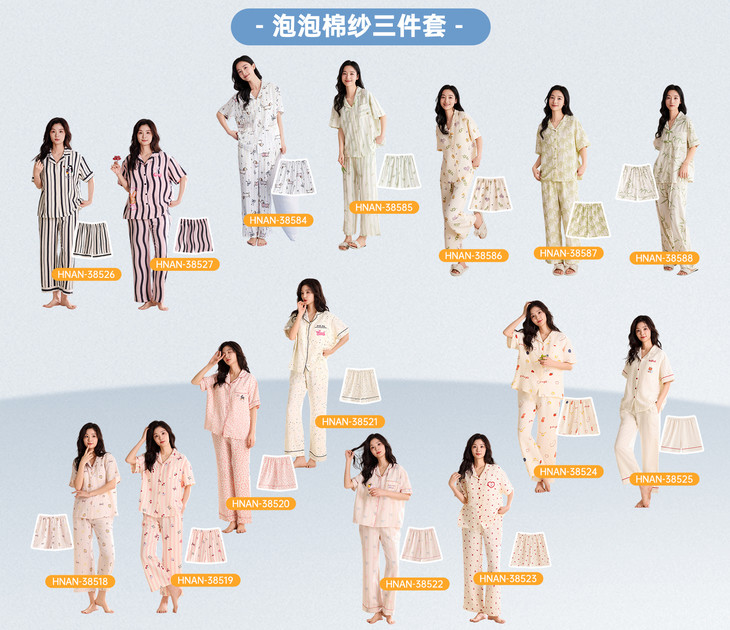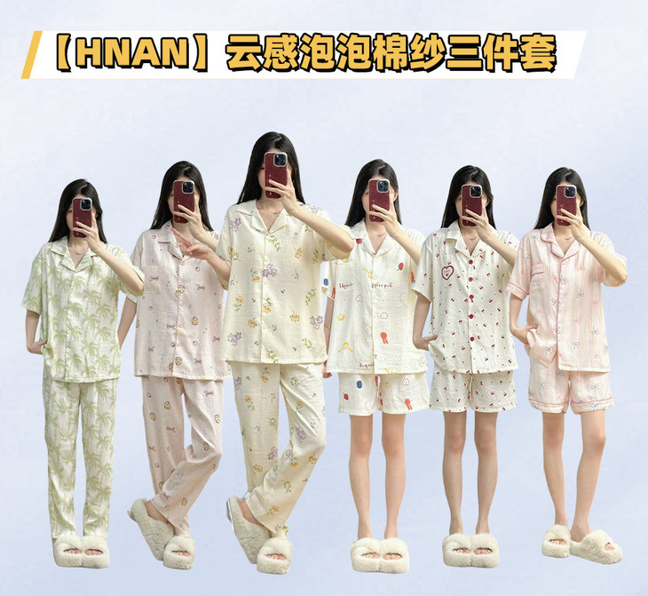 ✅【HNAN】泡泡棉纱系列三件套睡衣❗❗❗ ✅ 有质感有颜值69.9💰到手三件套云感棉家居服