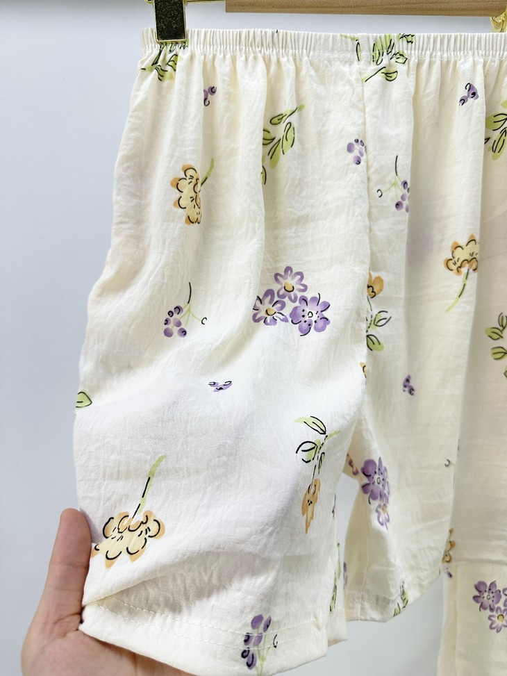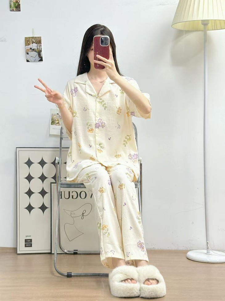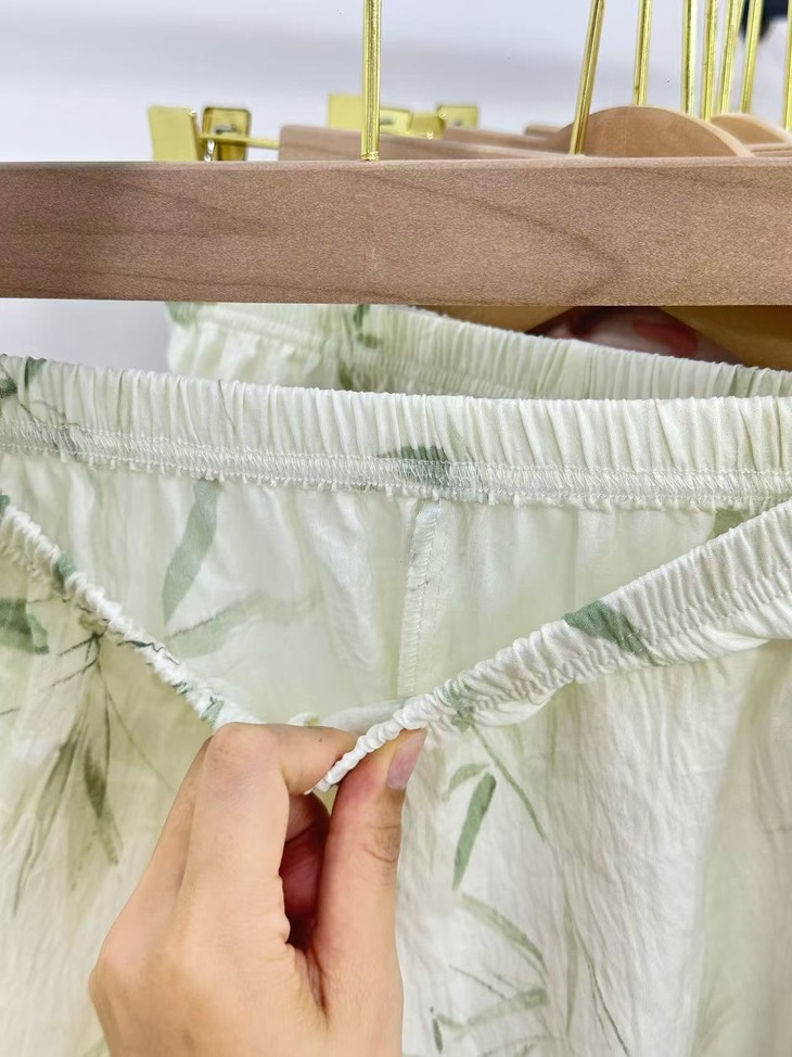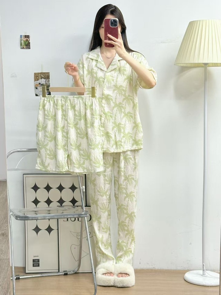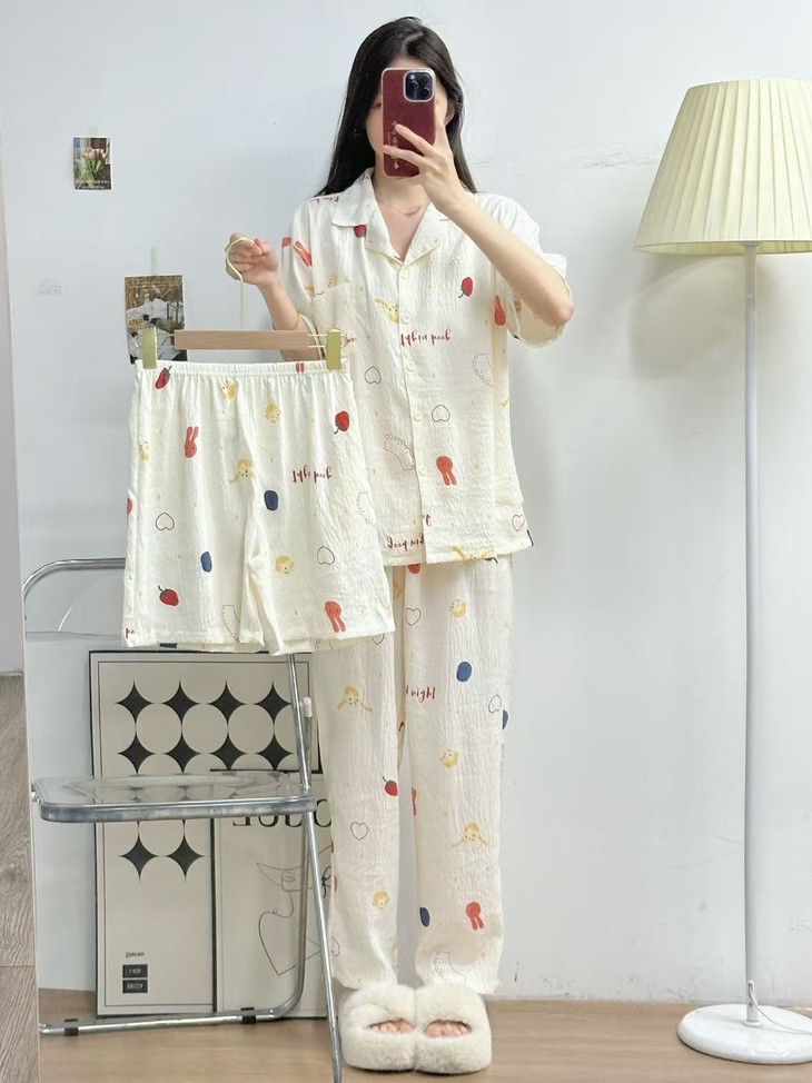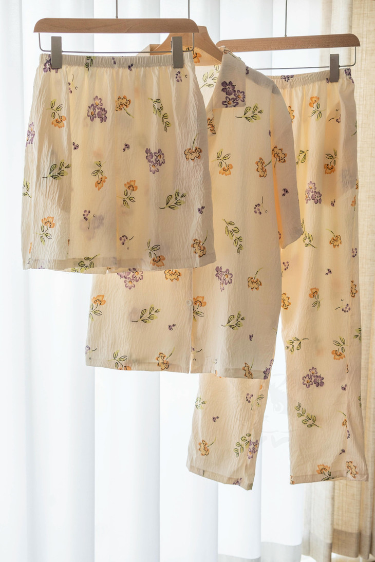 这三件套的设计超贴心 一件短袖上衣,在炎热夏日让手臂自由“呼吸” 一件短裤,方便你在家里各种“葛优瘫”: 一件长裤,夜晚温度降低或者开着空调时,给腿部全方位保暖。 实现“一套多穿”的时尚自由!