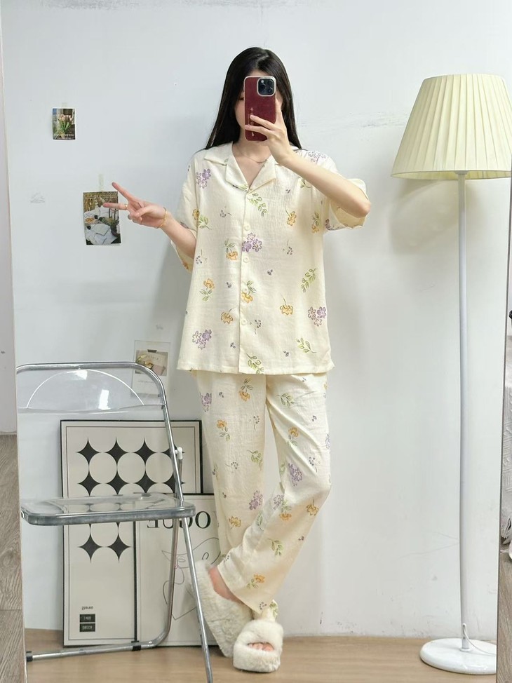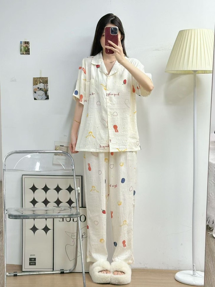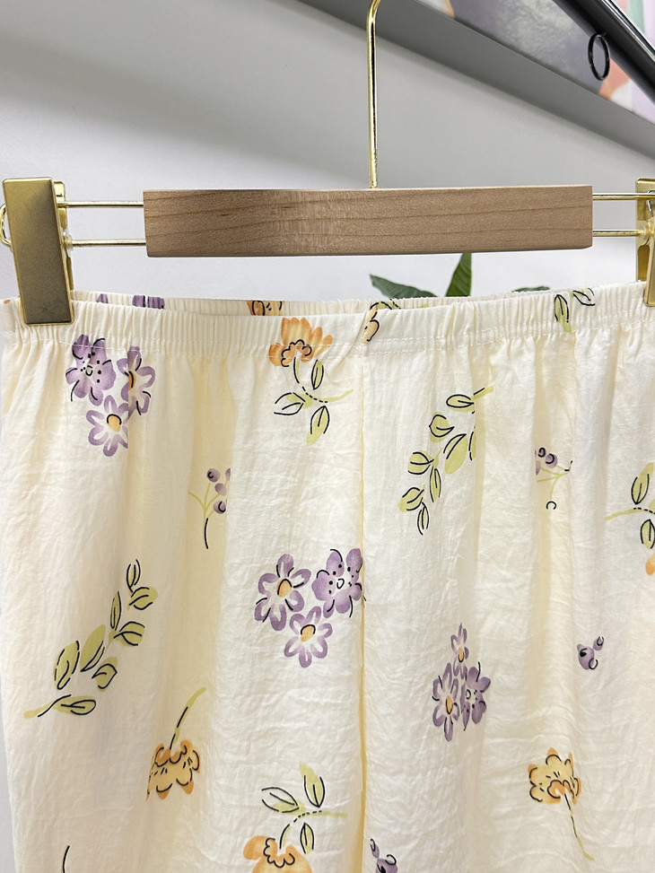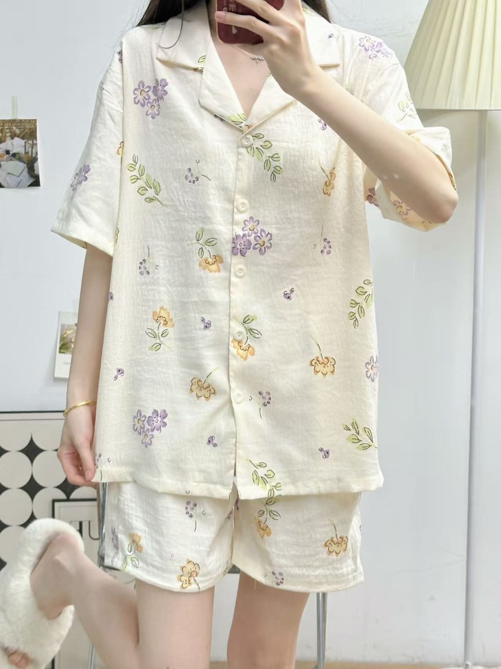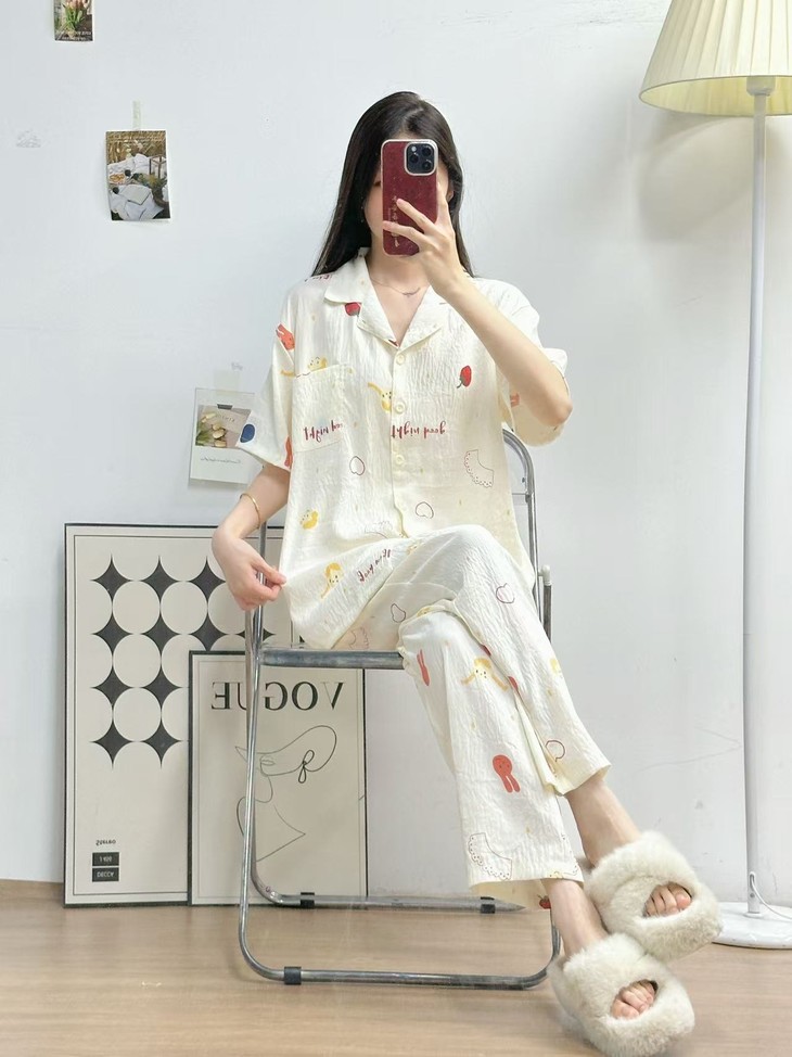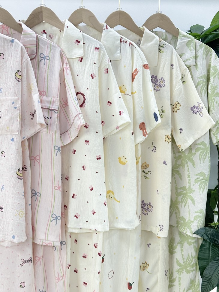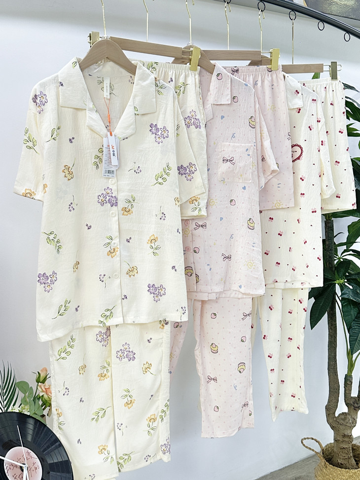 这三件套的设计超贴心 一件短袖上衣,在炎热夏日让手臂自由“呼吸” 一件短裤,方便你在家里各种“葛优瘫”: 一件长裤,夜晚温度降低或者开着空调时,给腿部全方位保暖。 实现“一套多穿”的时尚自由!