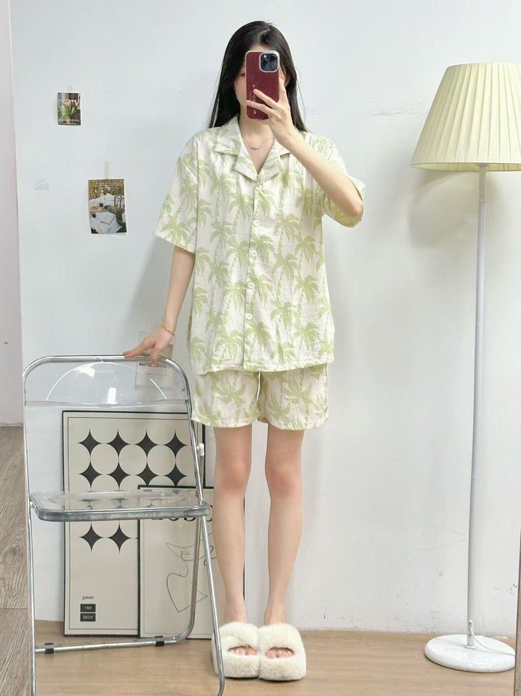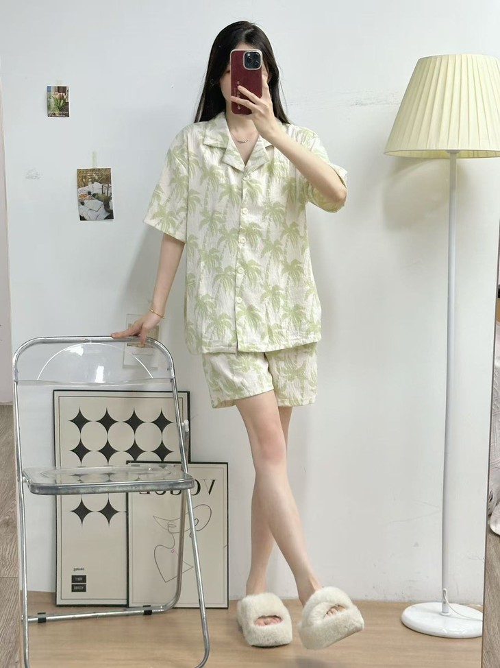 整体看起来最清爽的款式 海南椰子树风格 因衣服而联想场景。 用的都是很好的泡泡棉,摸着超级舒服,很亲肤, 🆓一般都是卖二三百块的大牌才用的面料~