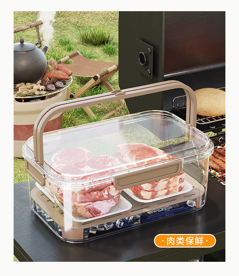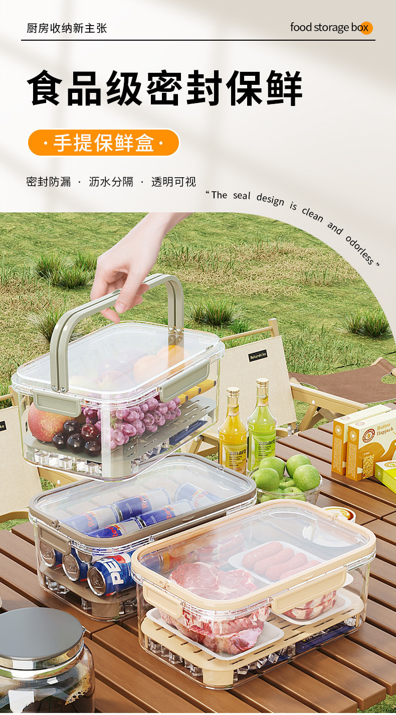 【春天踏春露营! 移动的小冰箱】露营户外便携保鲜盒持久冷藏储物盒可手提带饭盒沥水移动小冰箱。ry