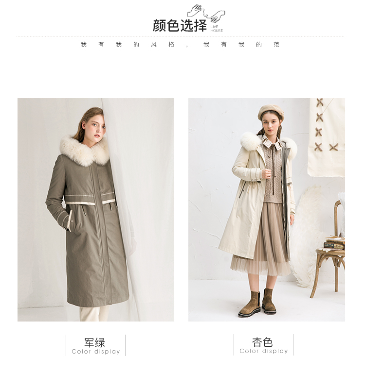 famecoco范可儿长款连帽羽绒服冬季外套F218AH007