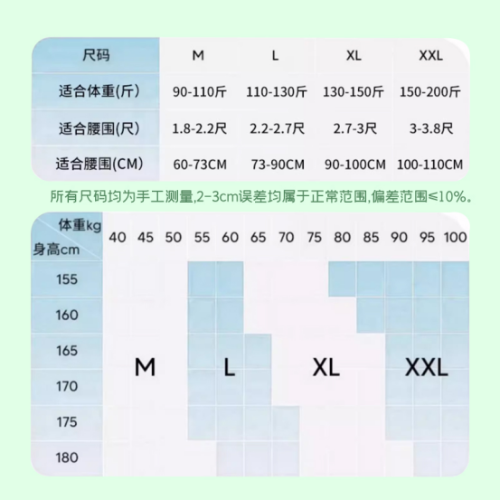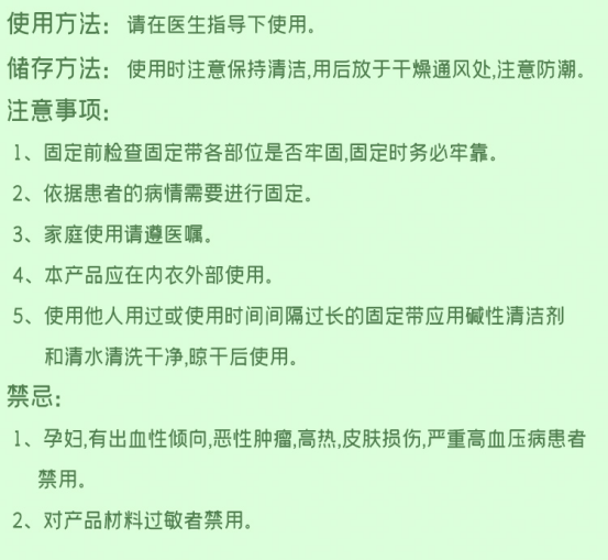 洗涤:选择中性清洁剂,30度以下水温手洗,自然晾干,禁止暴晒,禁止过度浸泡 穿戴禁忌: 任何护具都必须正确穿戴,并科学使用 严禁超出功能所述使用范围,如使用护腰带过程中出现不适请停止使用并及时就医 使用时长: 建议每天佩戴1-2小时,常规一天佩戴2-4次 症状严重都可以增加使用次数,如有好转请坚持佩戴