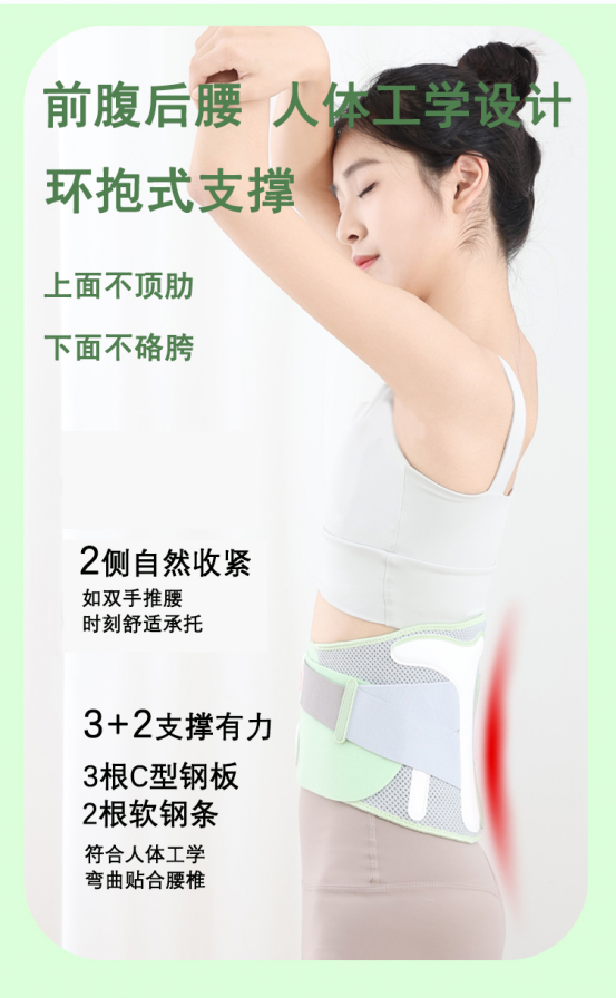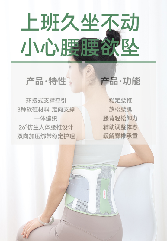 为美撑腰, 挺你到底 上班久坐的宝宝们,戴上它不仅保护腰椎,还能挺直腰身,挺拔身姿 有健身习惯的姐妹们,运动时戴上它也不影响运动,还可以更好的保护腰部