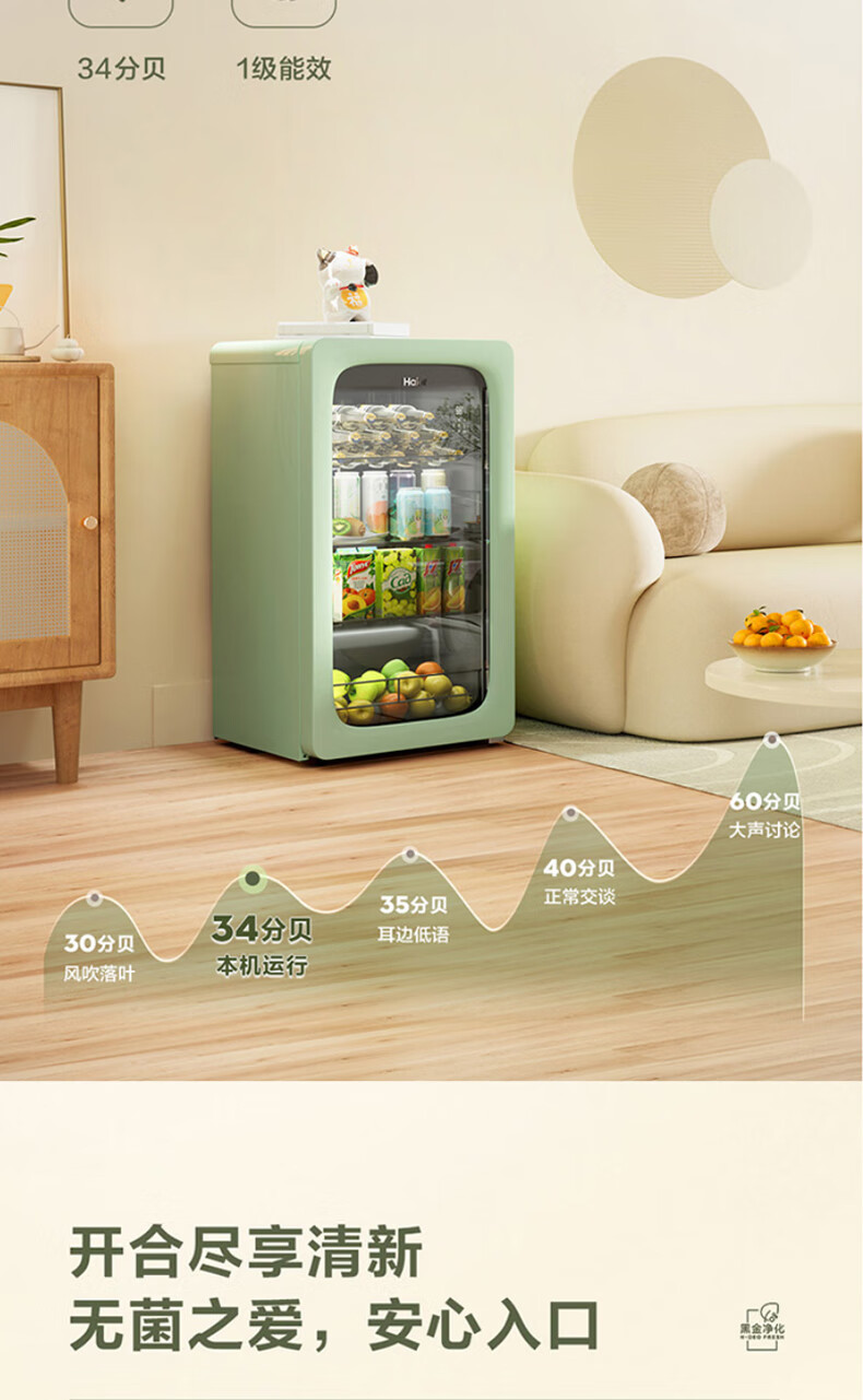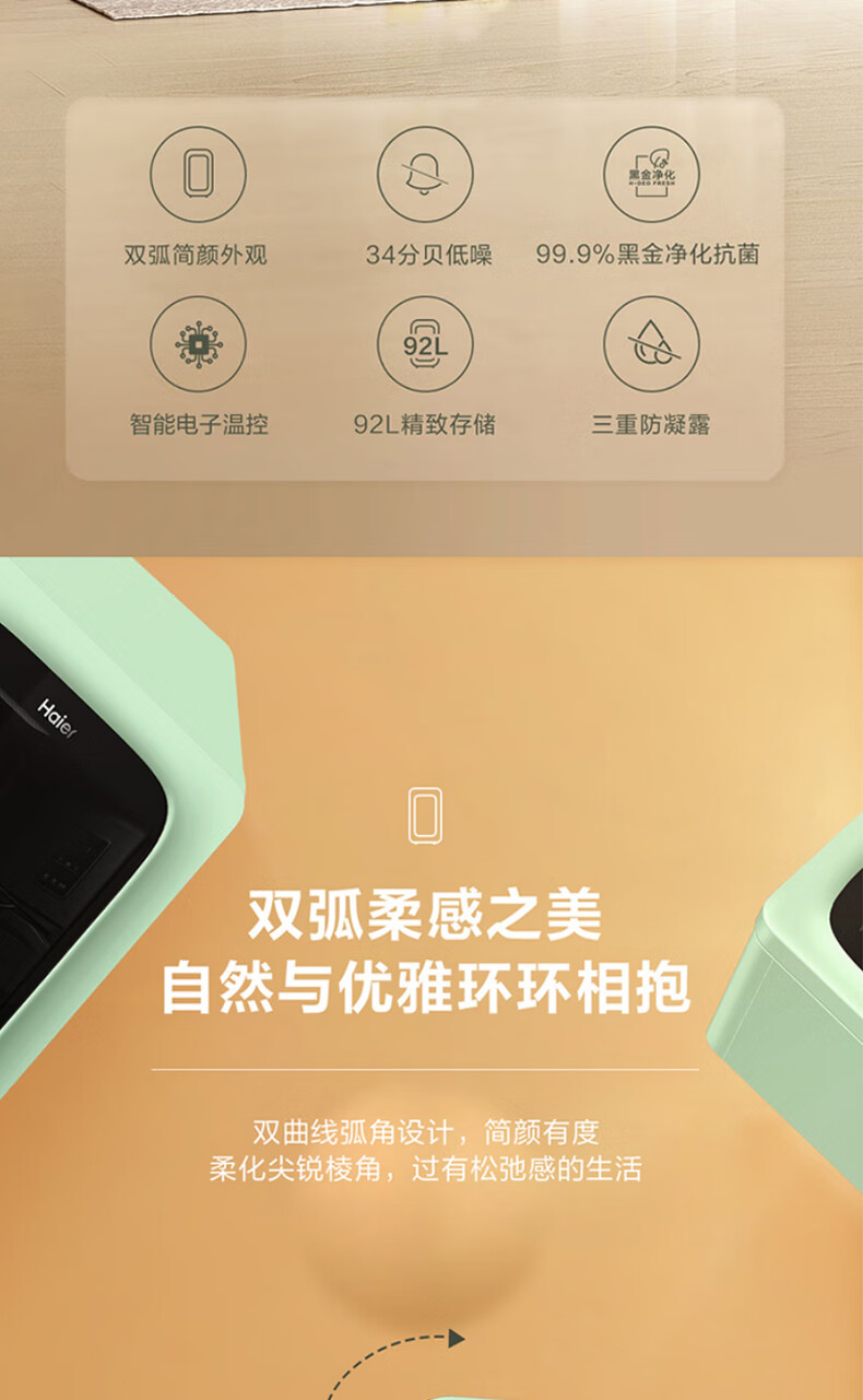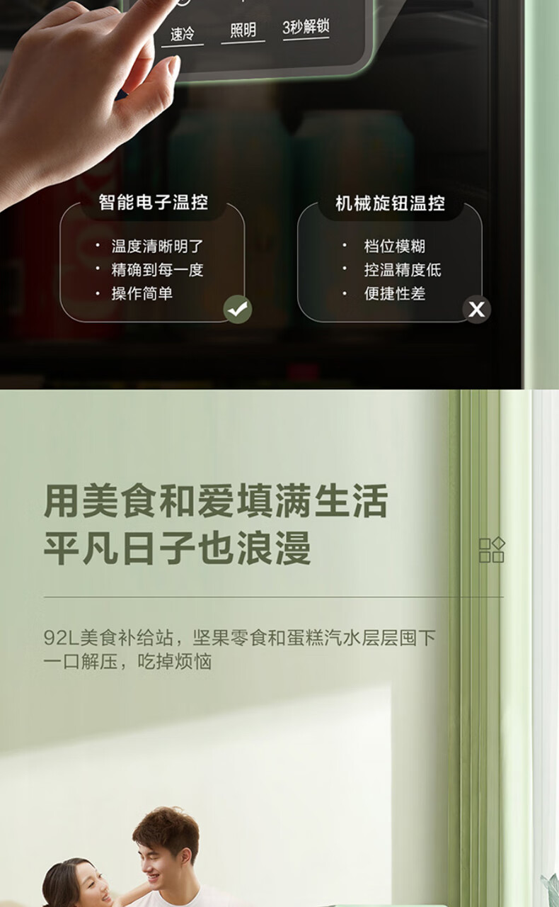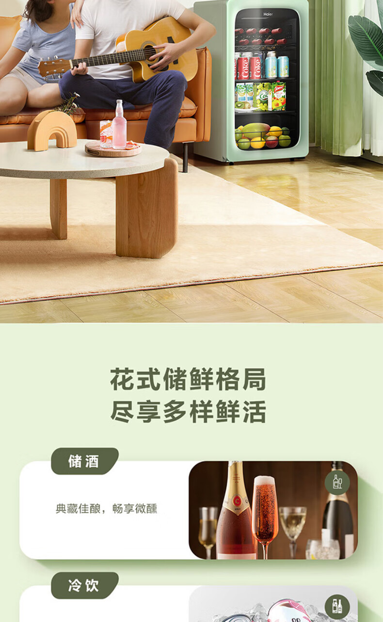 海尔(Haier)冰吧家用92升透明玻璃门小型冰吧客厅办公室饮料茶叶冷藏柜水果立式保鲜柜LC-92LH9EC1