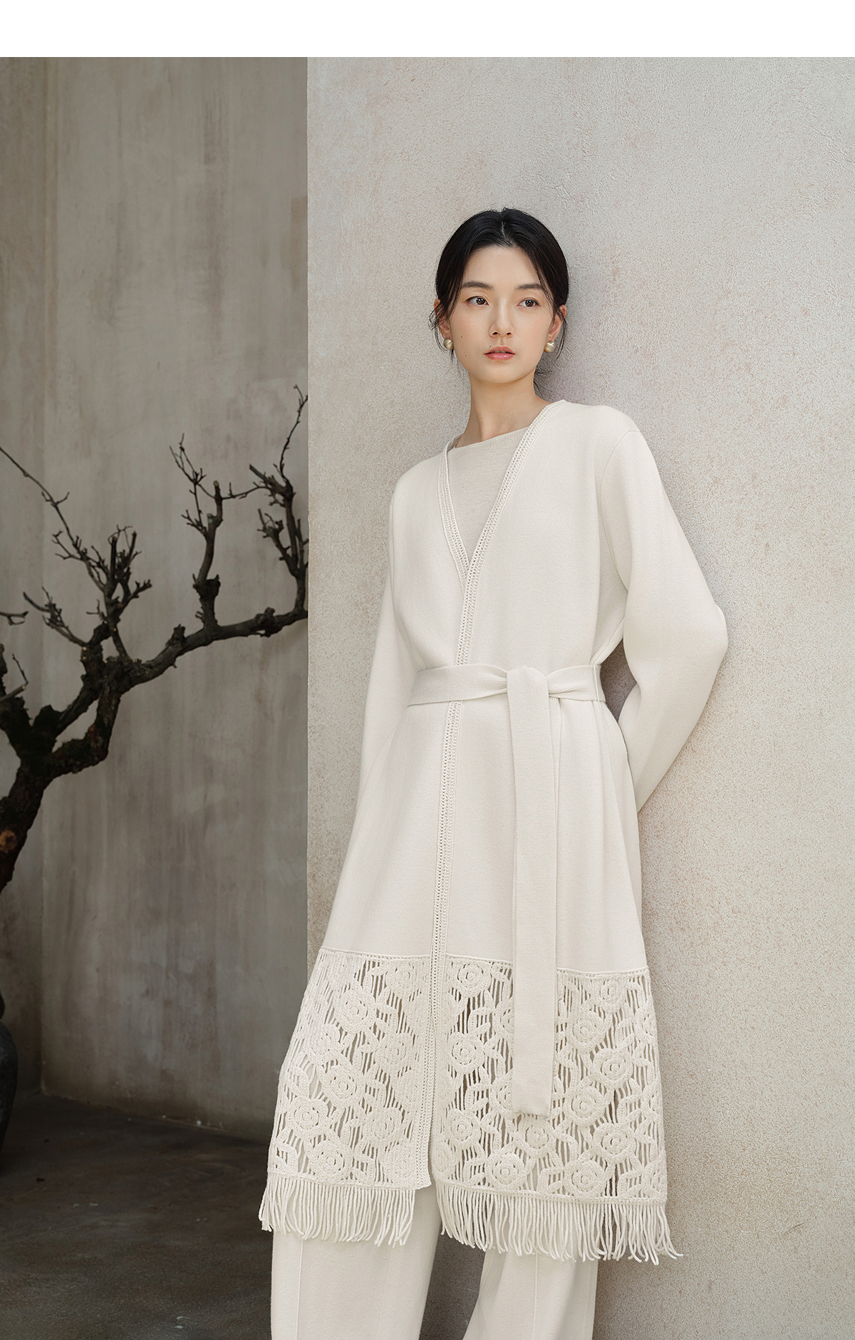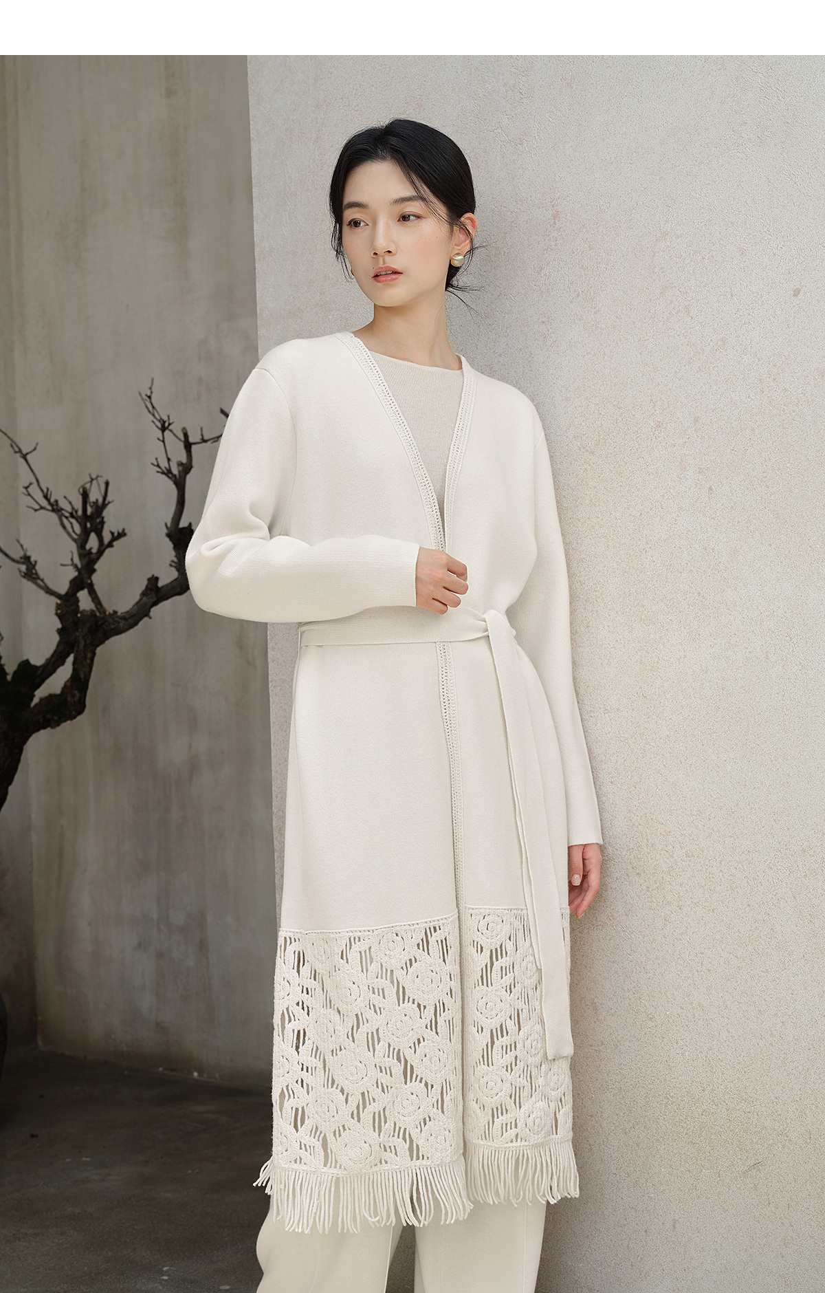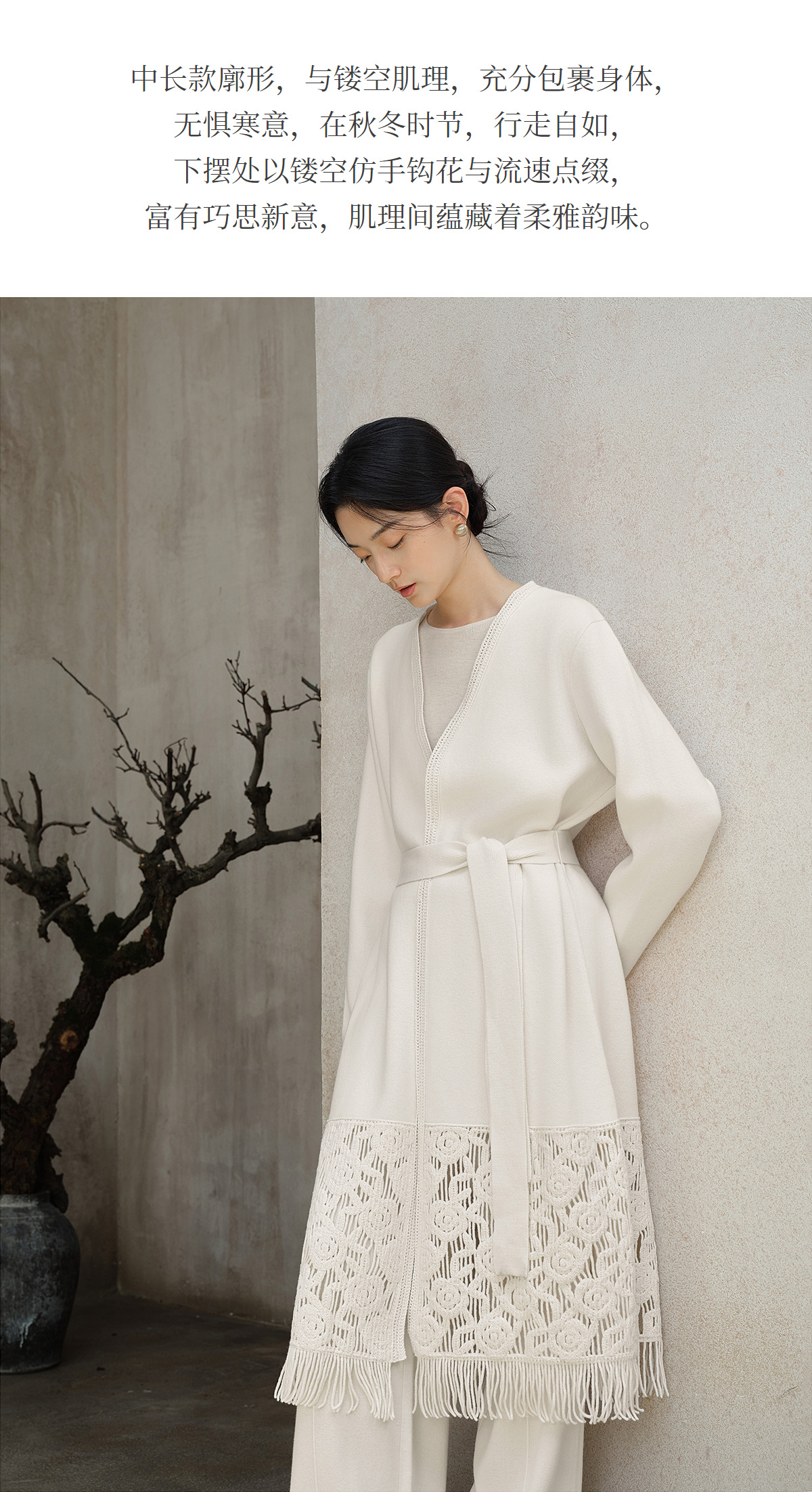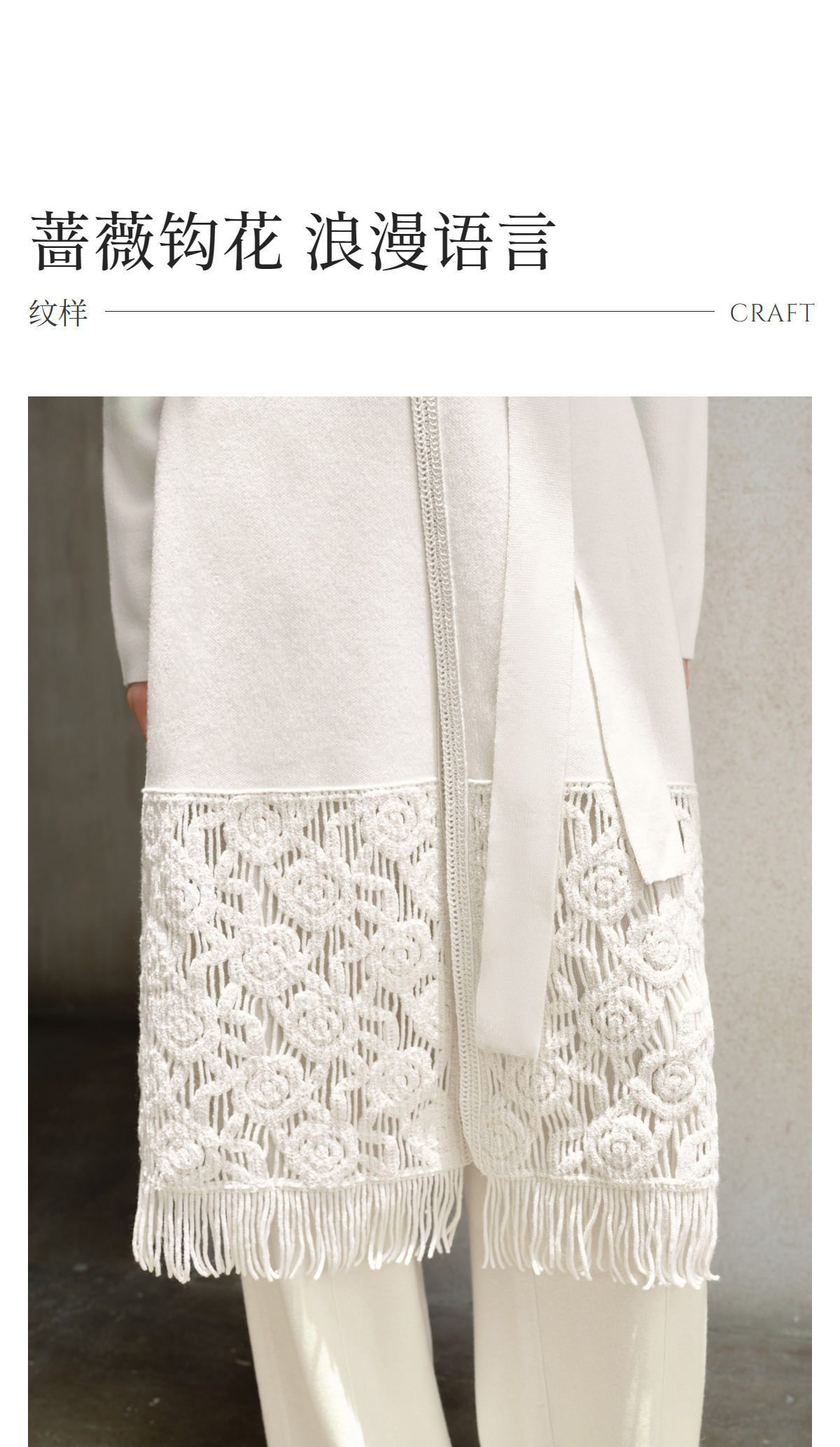 【林栖设计小店】纯白系列绵羊毛毛织外套保暖镂空流苏仿手钩花2025秋冬新款毛衣女1953203