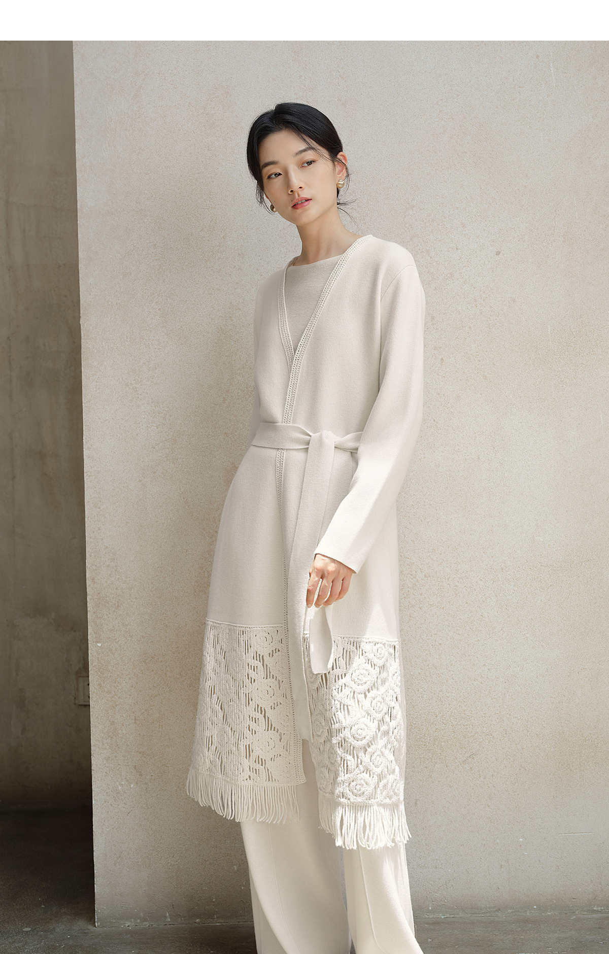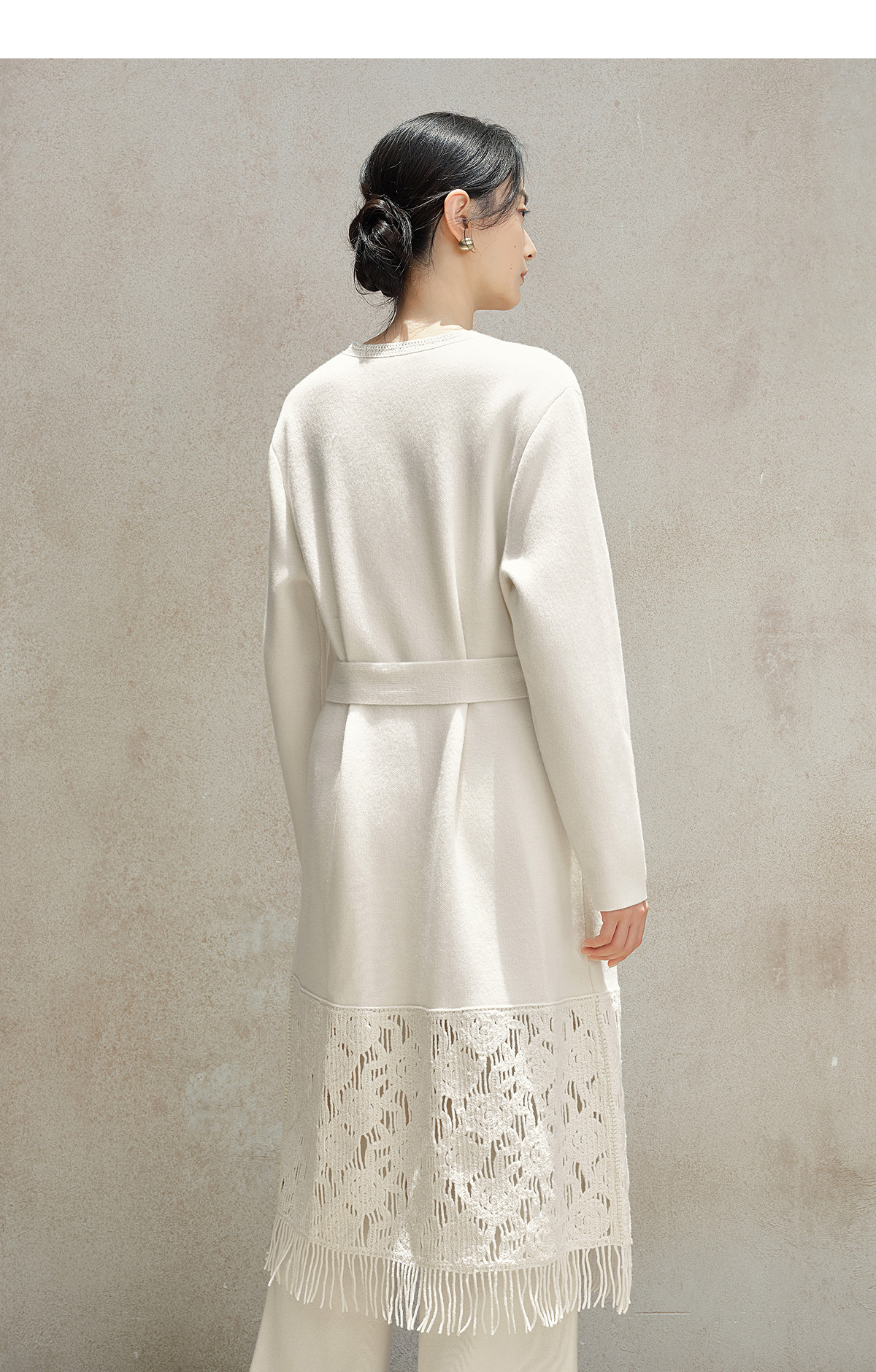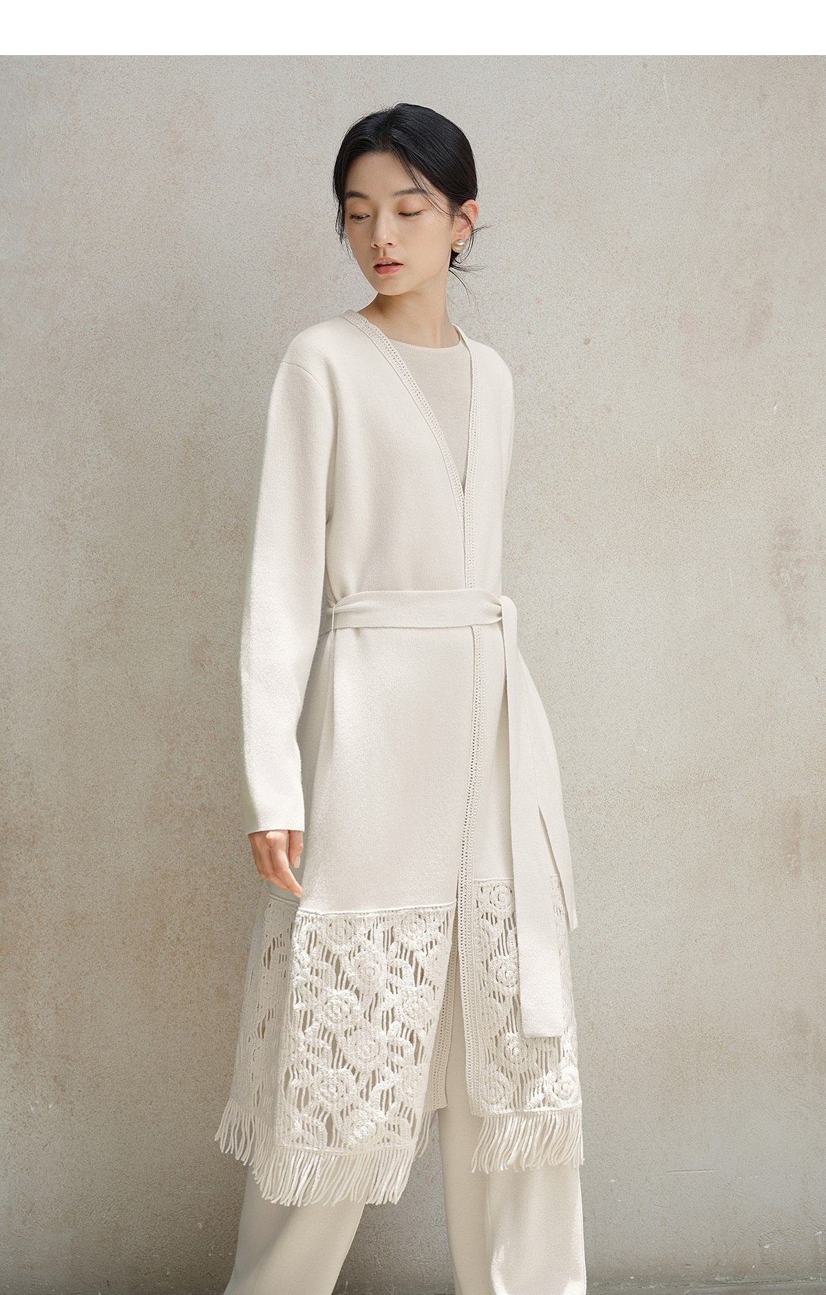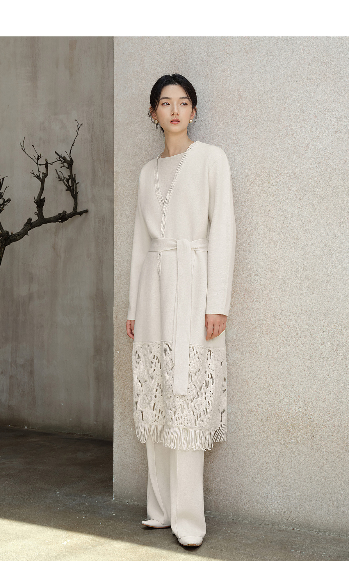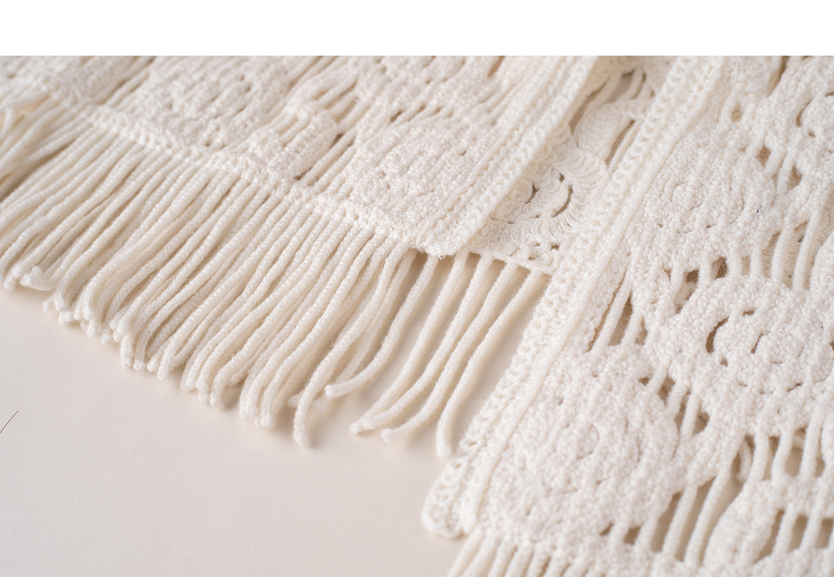 【林栖设计小店】纯白系列绵羊毛毛织外套保暖镂空流苏仿手钩花2025秋冬新款毛衣女1953203