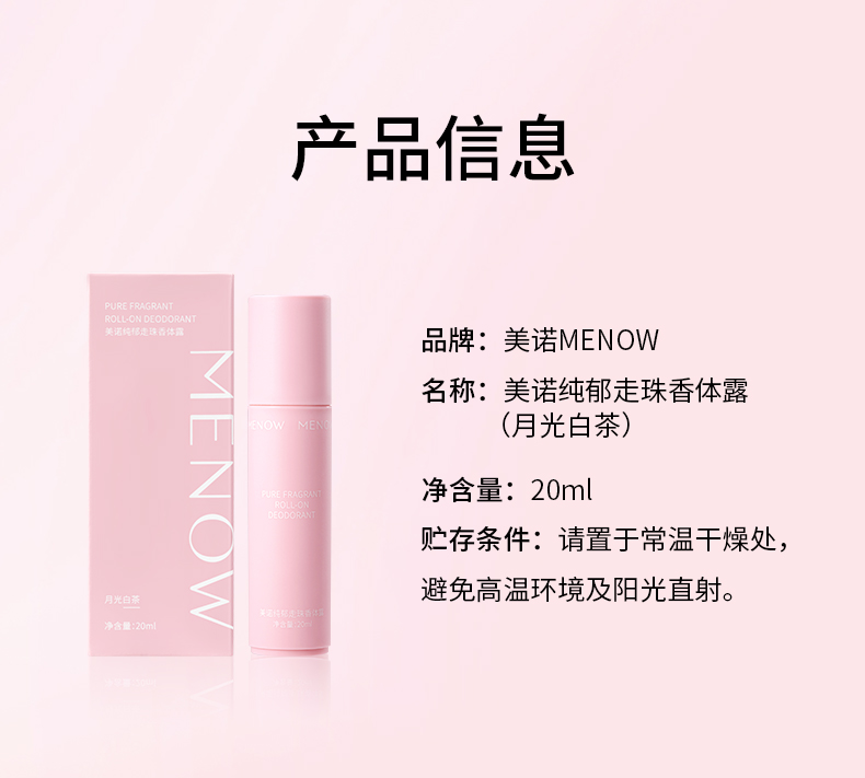 【MENOW】美诺纯郁走珠香体露腋下止汗露清新玫瑰味20ML