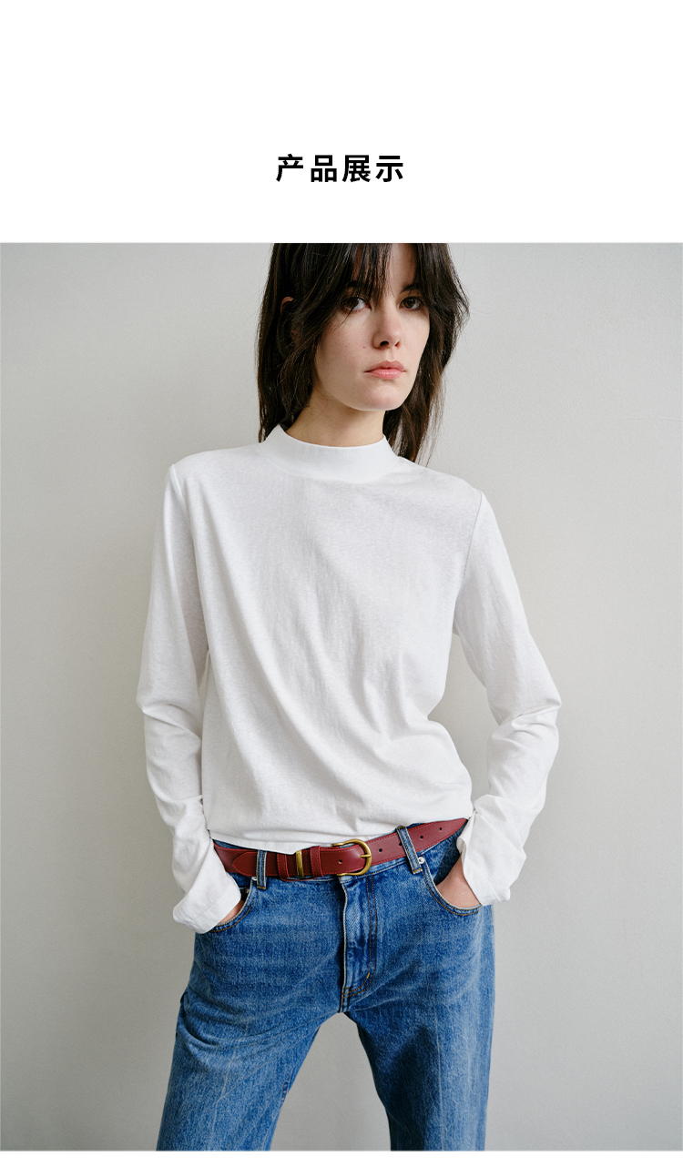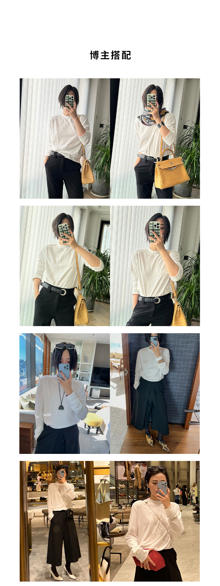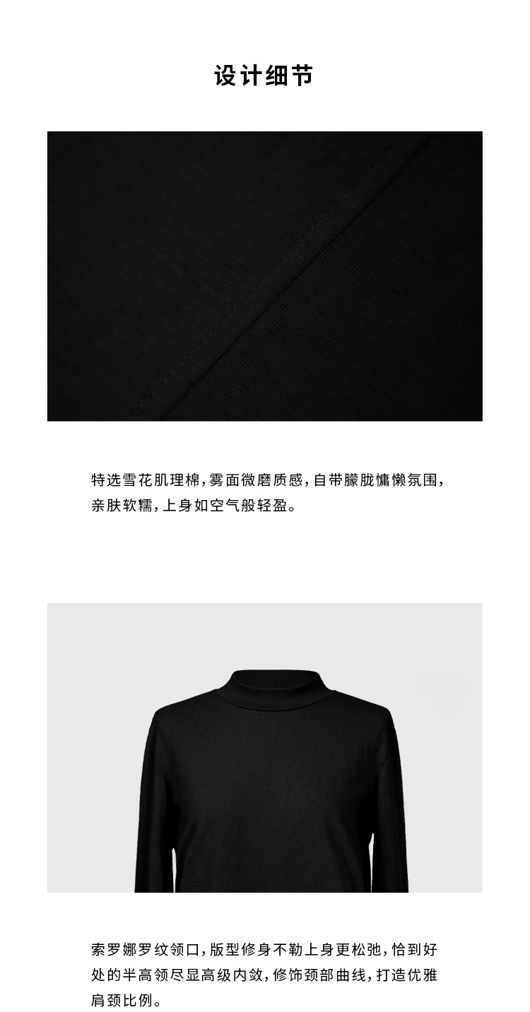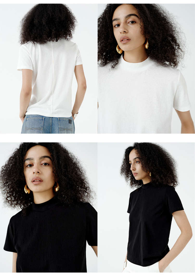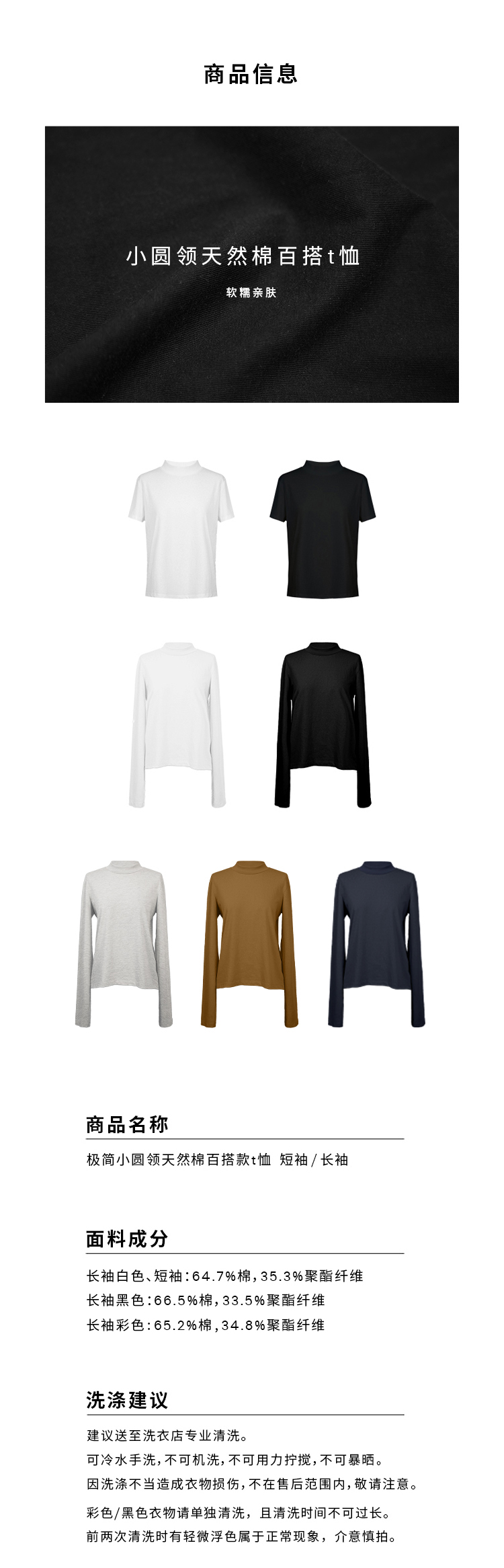 HIDEMI 极简小圆领天然棉百搭款t恤 长袖/短袖 白色/黑色