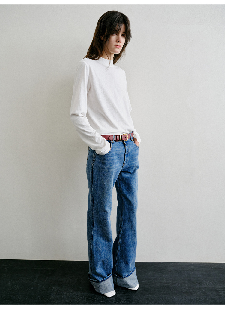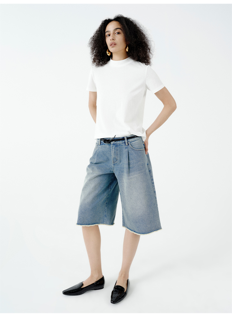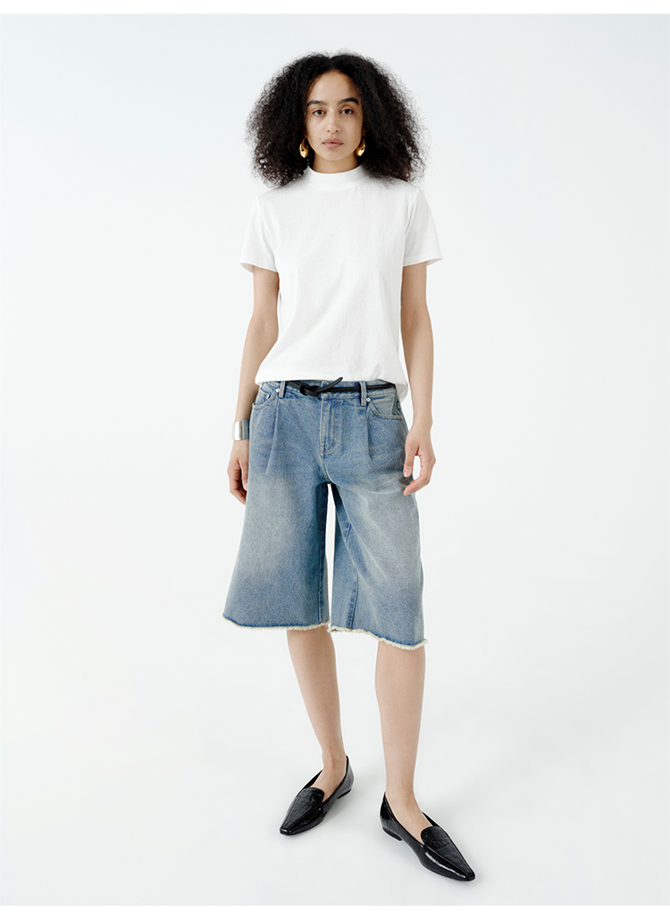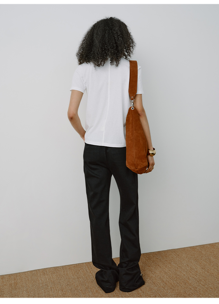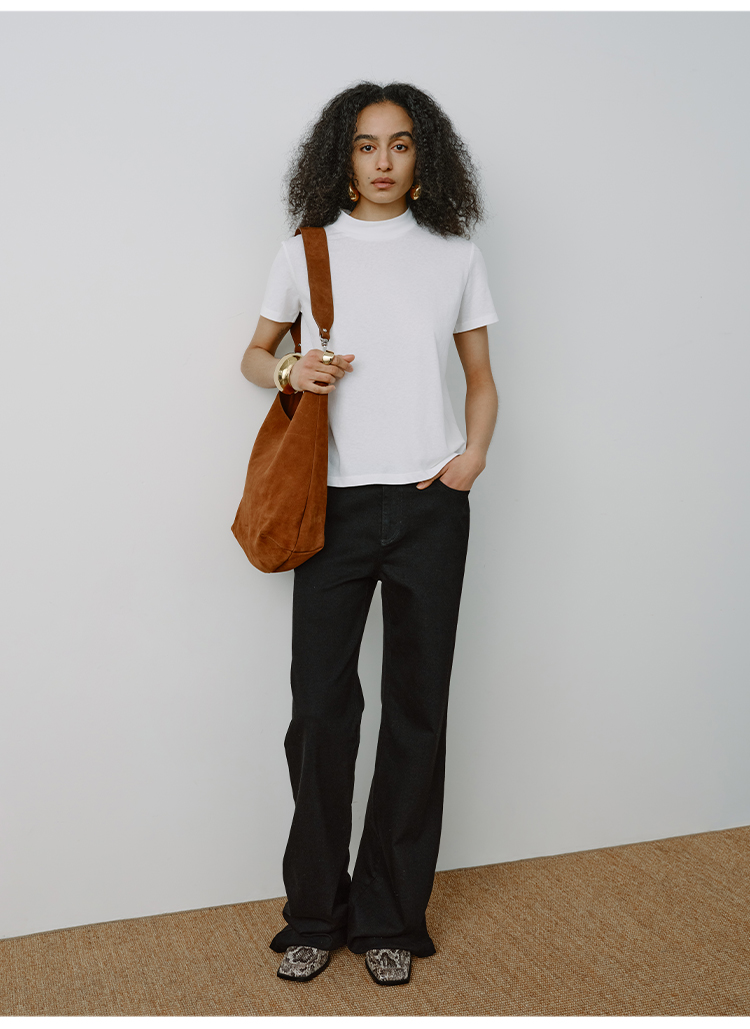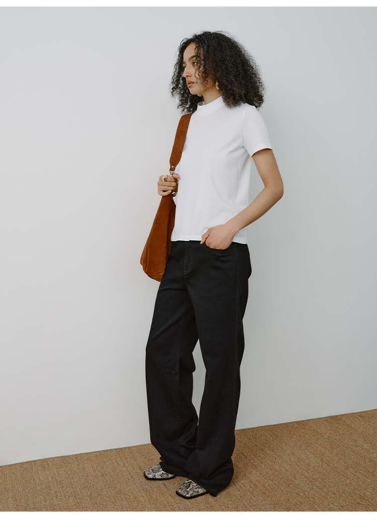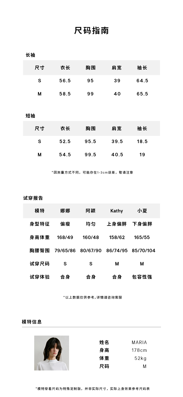 HIDEMI 极简小圆领天然棉百搭款t恤 长袖/短袖 白色/黑色