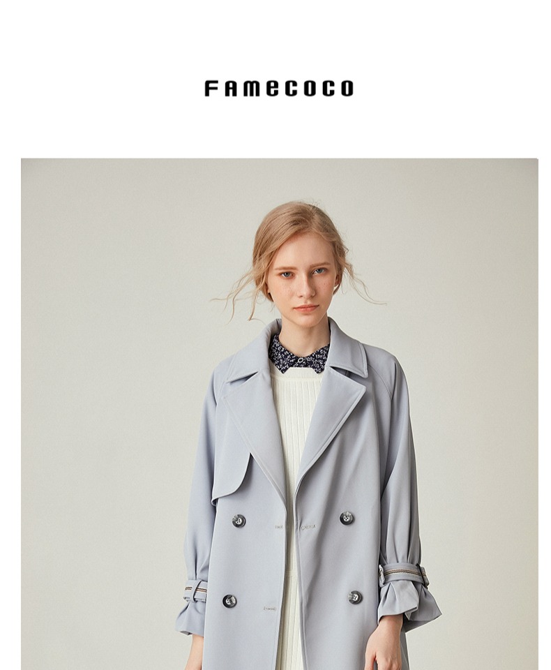 famecoco范可儿风衣外套2020时尚英伦风中长款收腰系带F191AB006