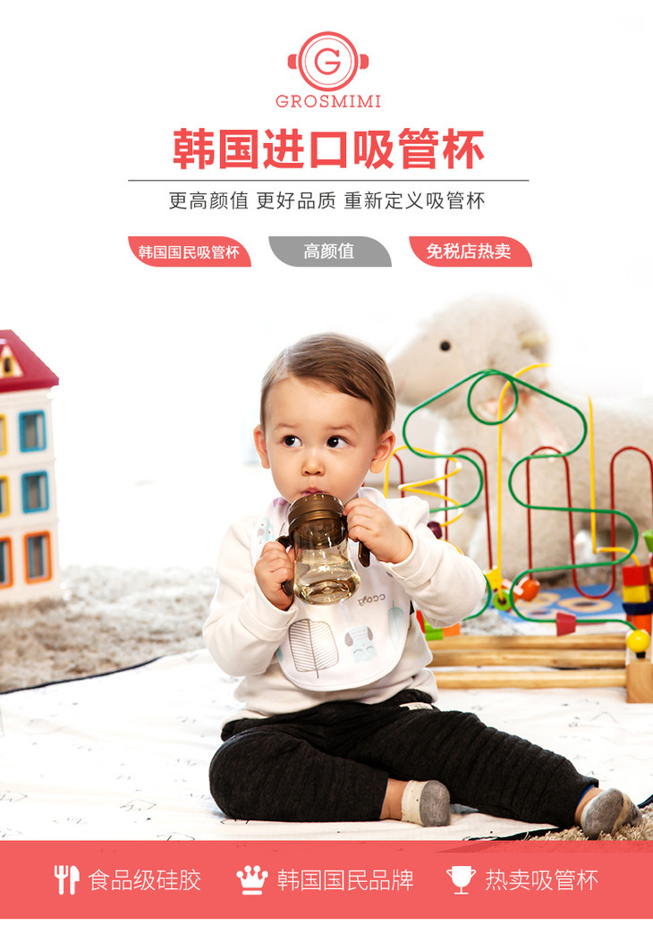 GROSMIMI格罗咪咪韩国进口宝宝吸管杯(拆开以后不支持7天无理由)