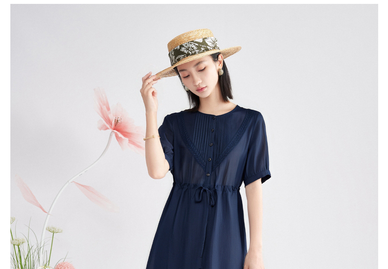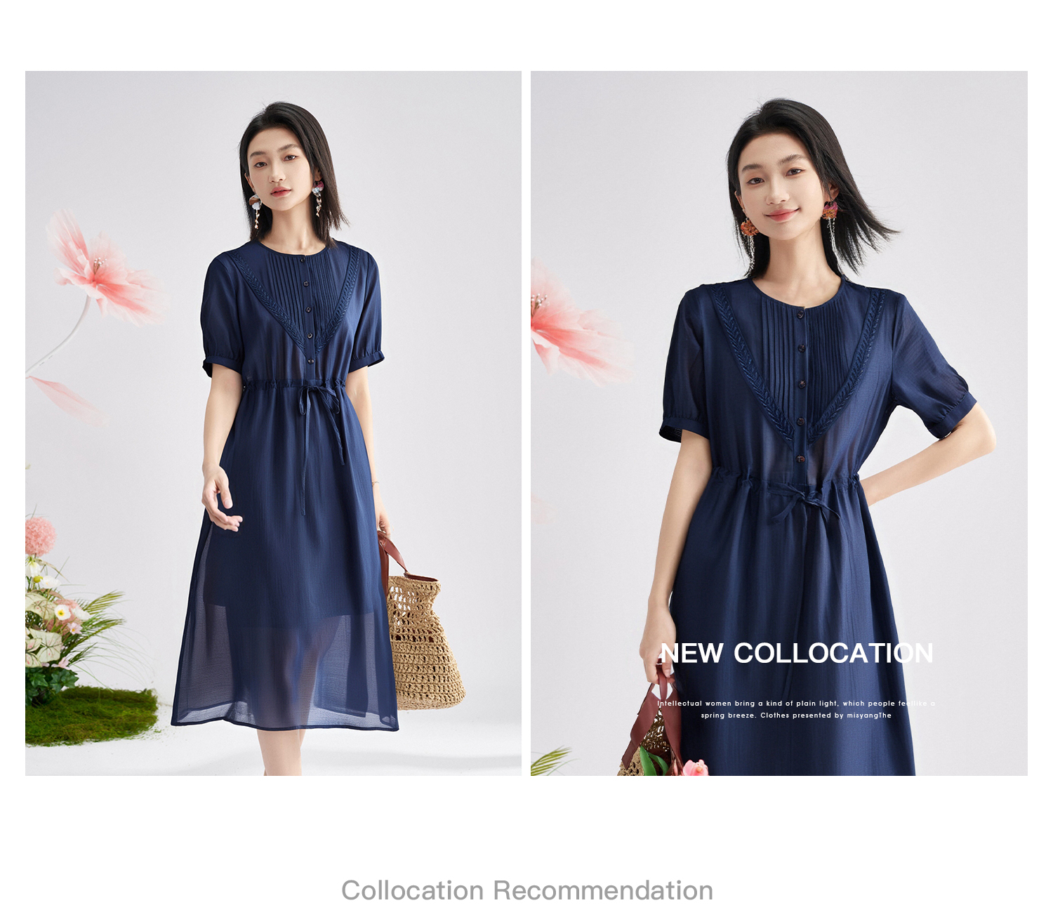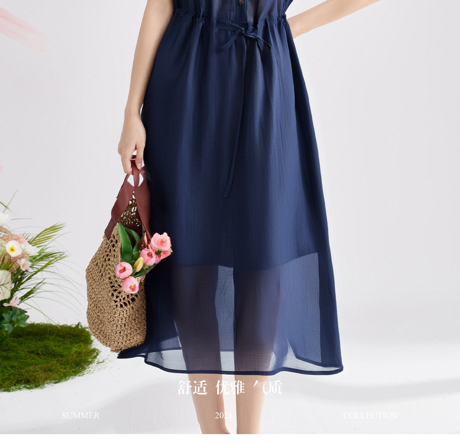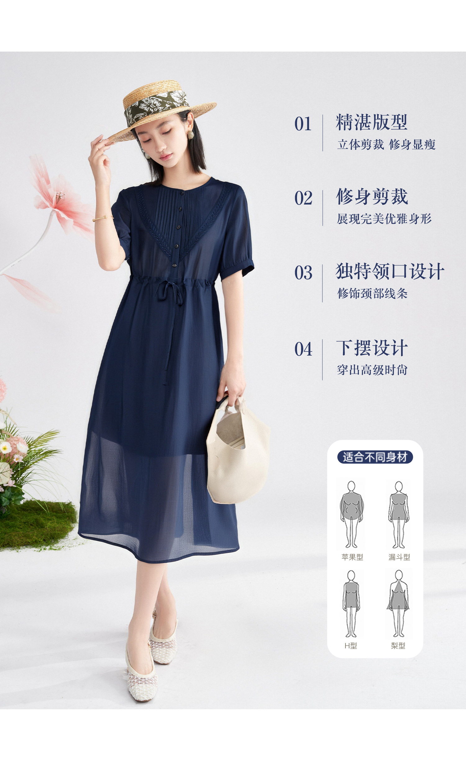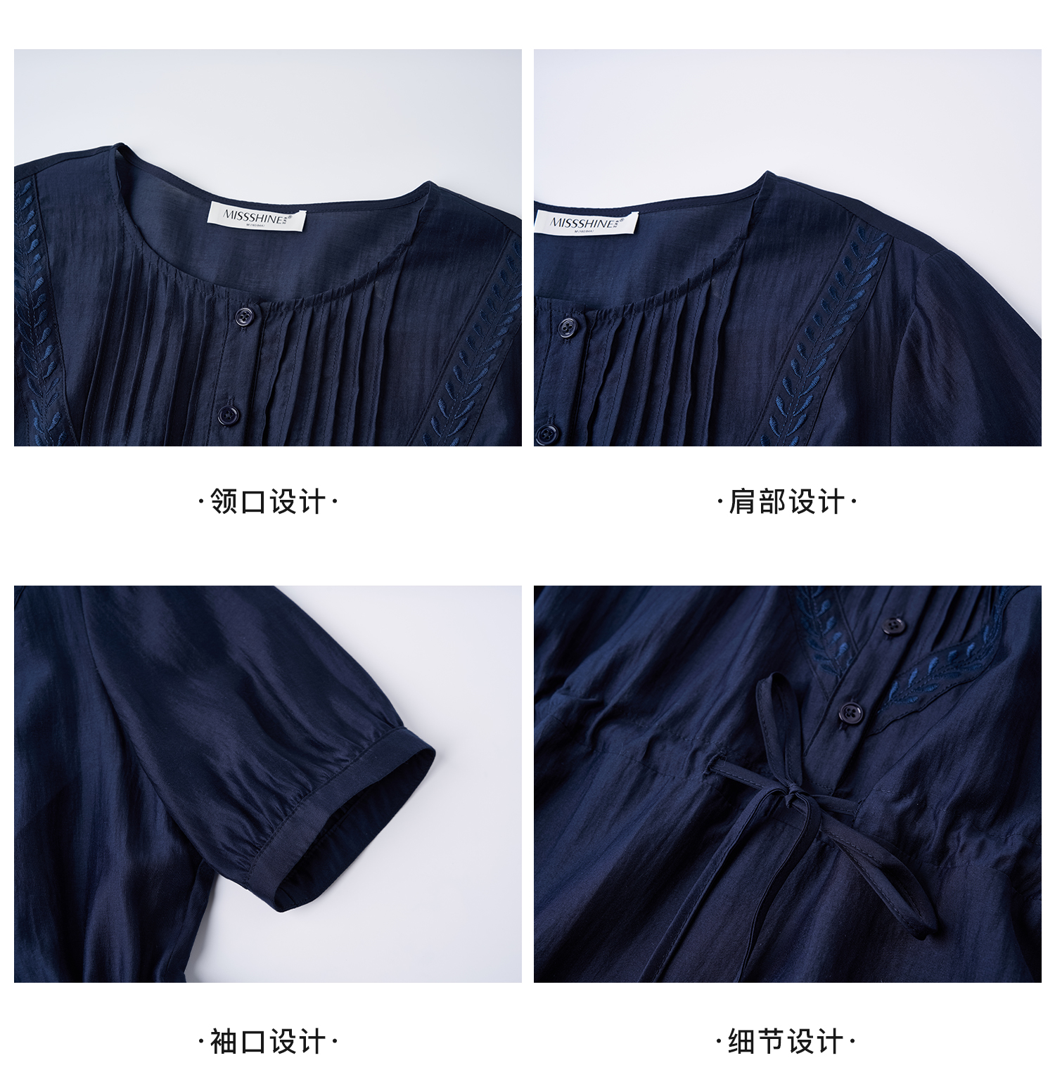 高级感天丝精致裙子 米思阳2025夏季新款时尚气质压褶连衣裙女1426