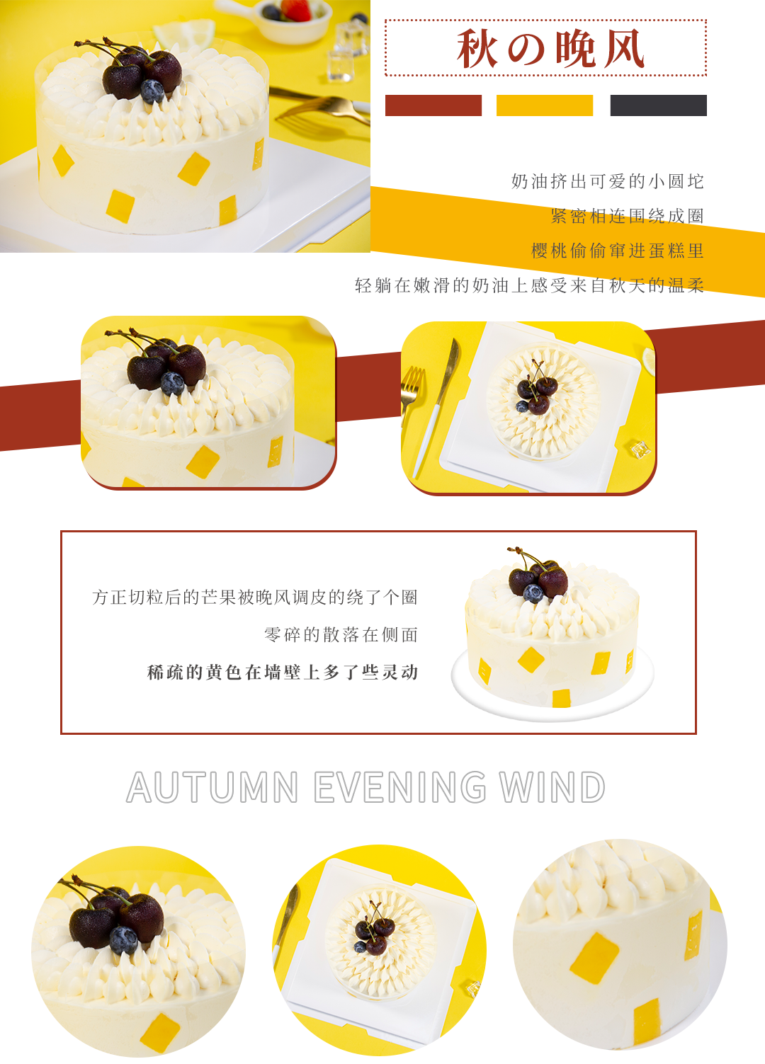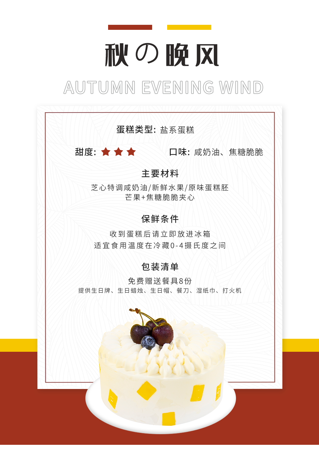 (咸味)奶油【秋の晚风】- 新鲜水果+焦糖脆脆夹心,镶嵌的方形芒果可以提高蛋糕的美感哦!