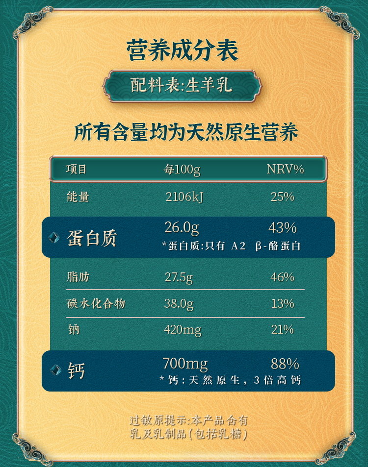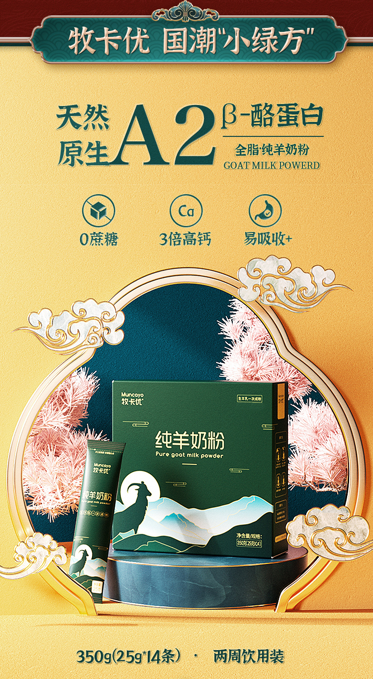 牧卡优 全脂纯羊奶粉 0蔗糖天然近3倍高钙成年人中老年学