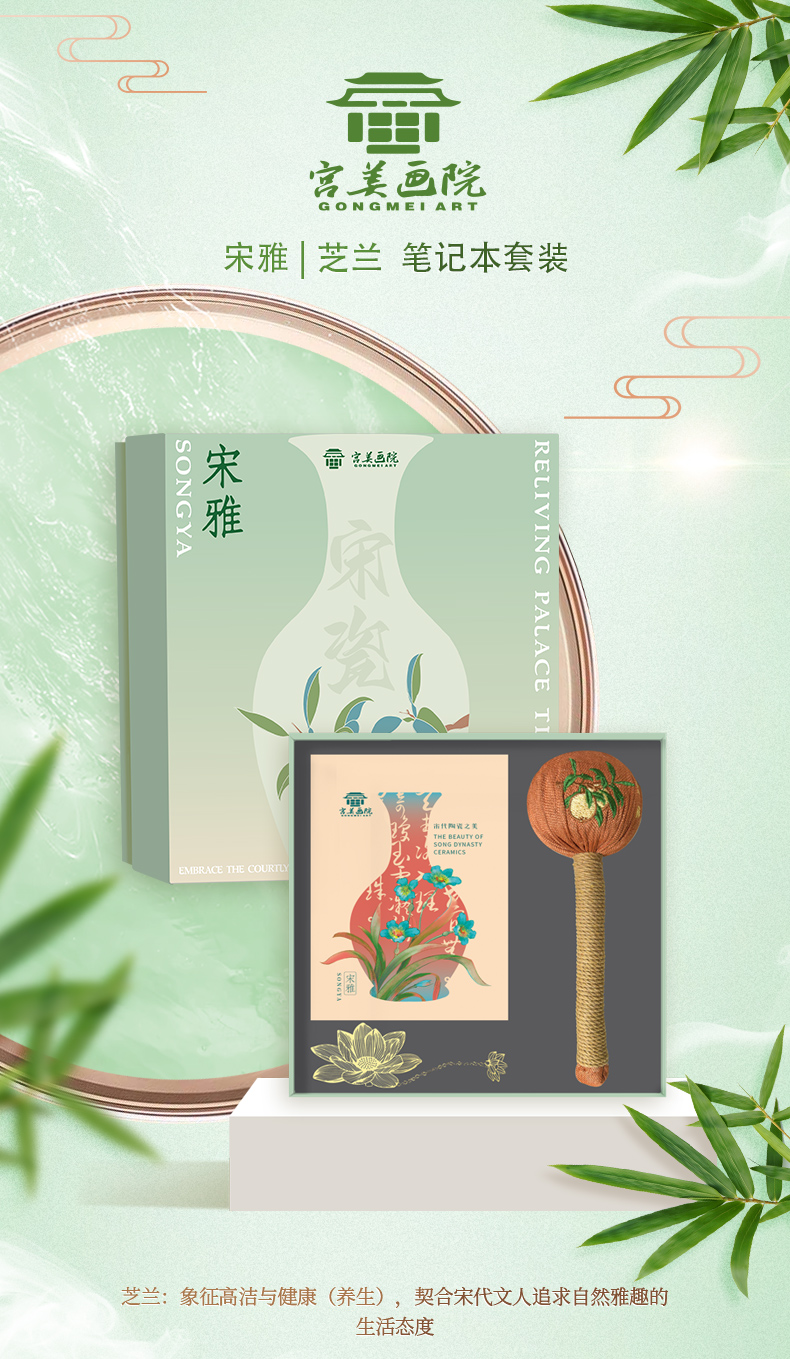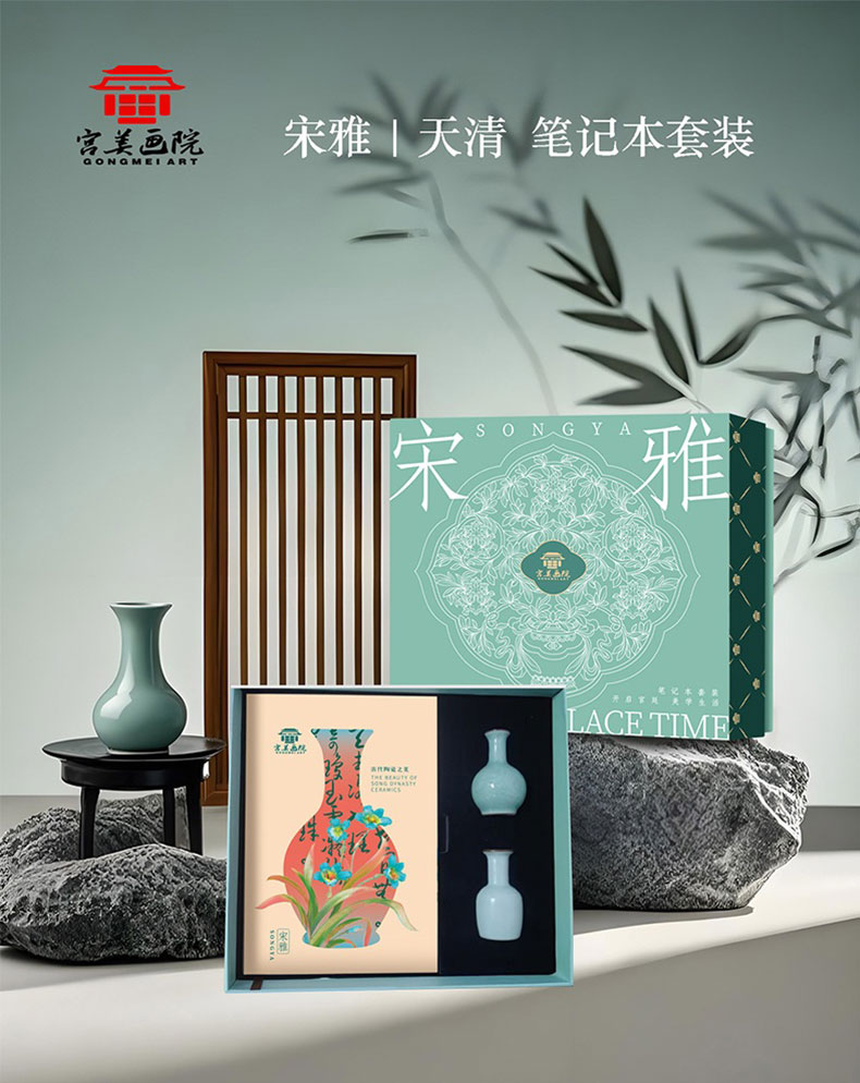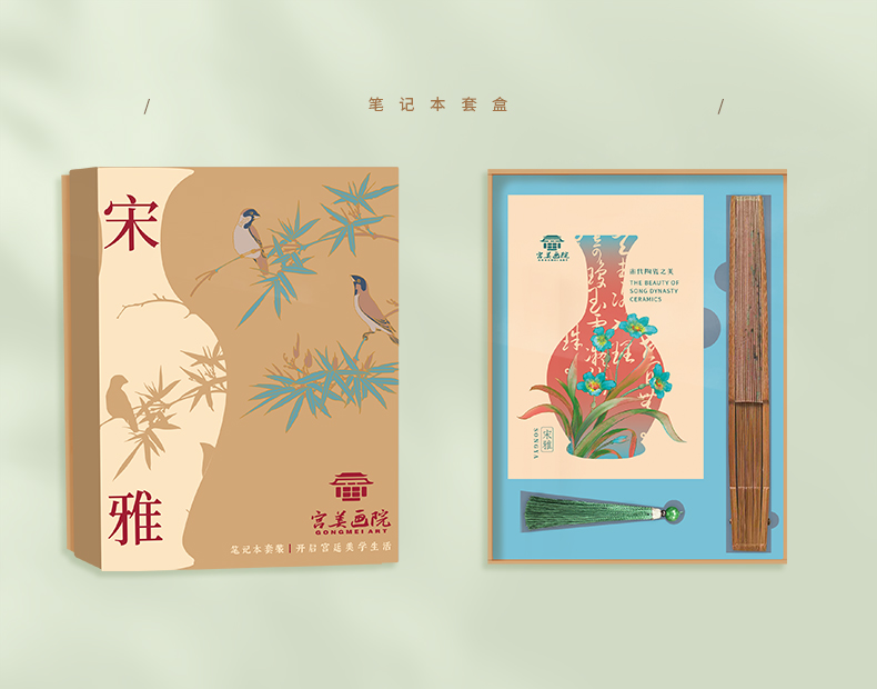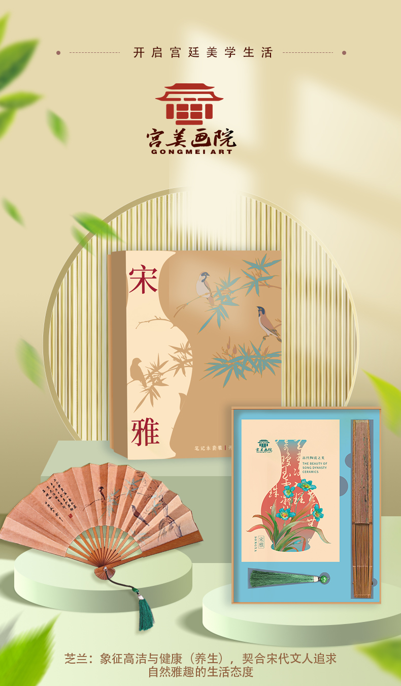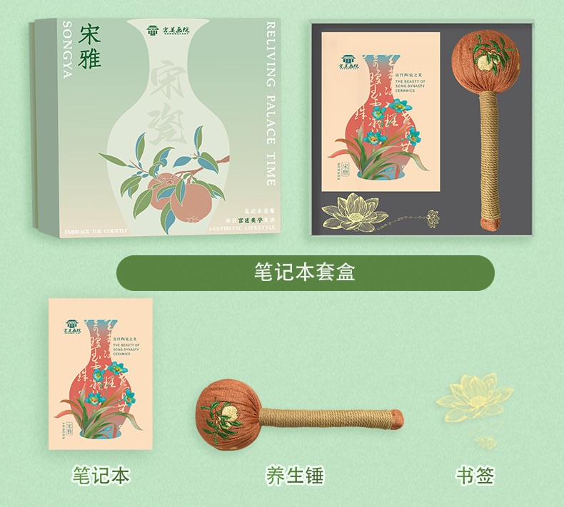 宫美画院 宋雅手账本套装 天清/风笺/芝兰 笔记本 书签 宣纸 折扇 冰箱贴 文创礼盒 手账本
