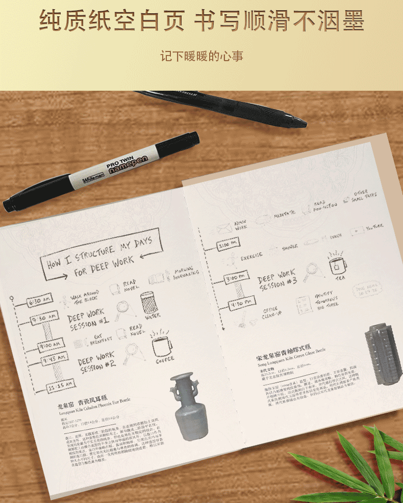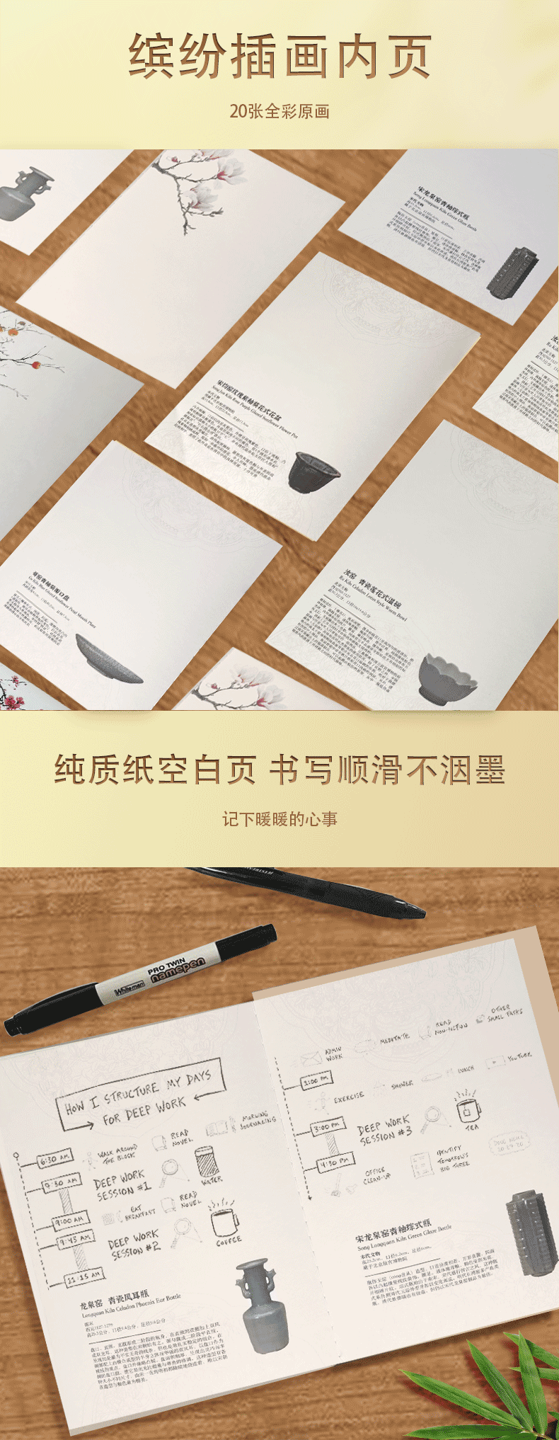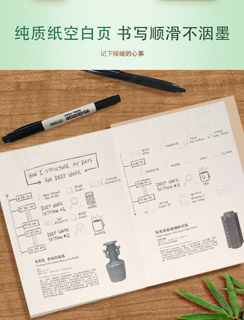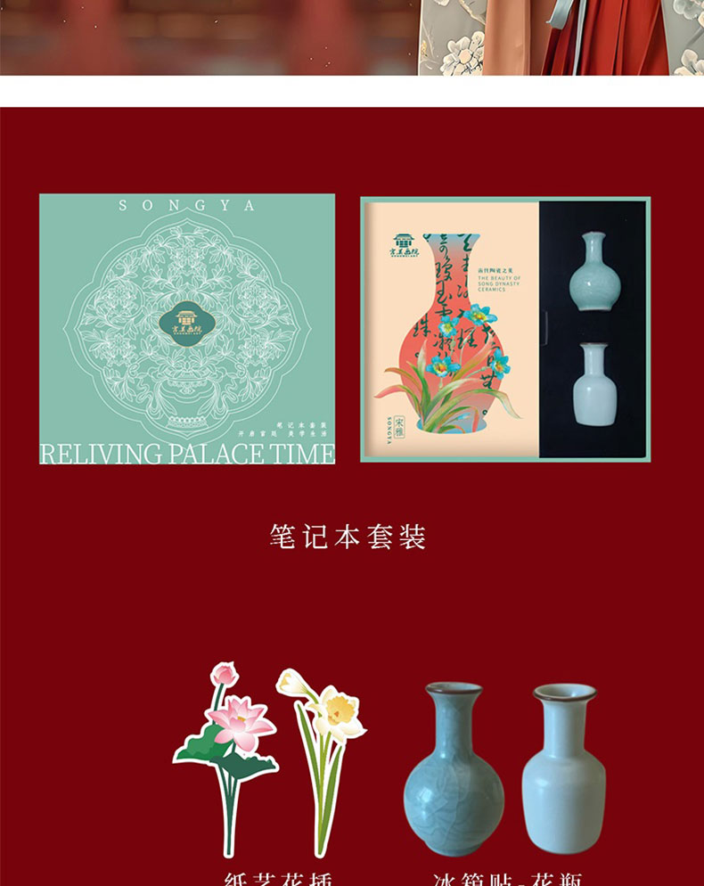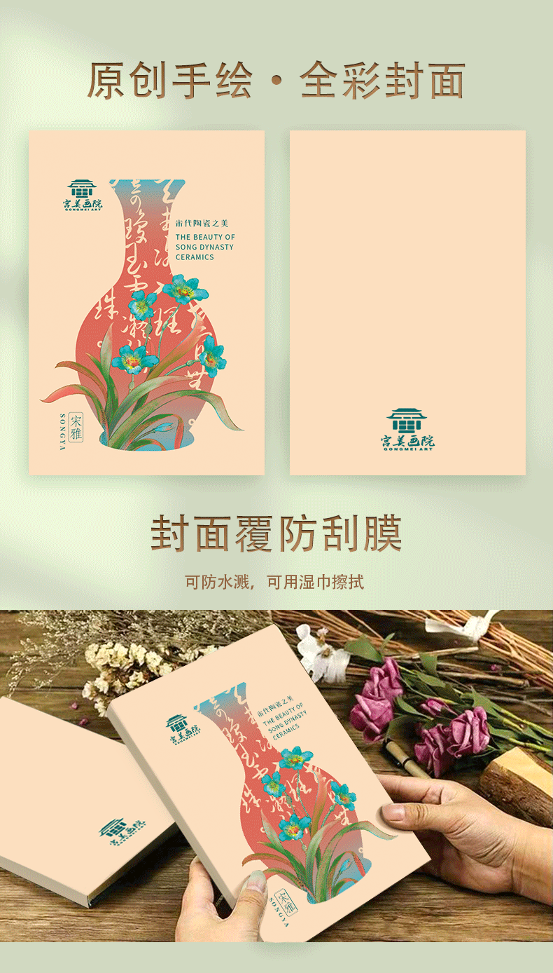 宫美画院 宋雅手账本套装 天清/风笺/芝兰 笔记本 书签 宣纸 折扇 冰箱贴 文创礼盒 手账本
