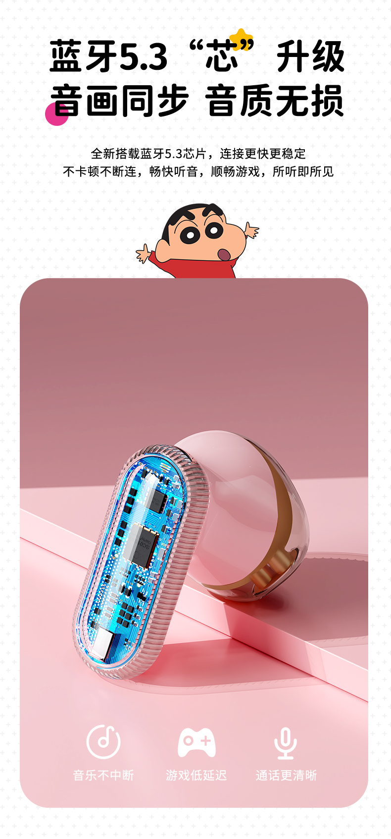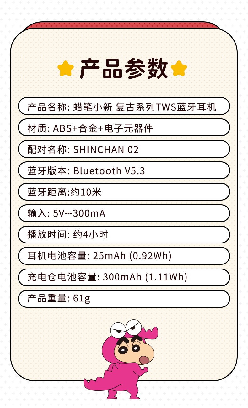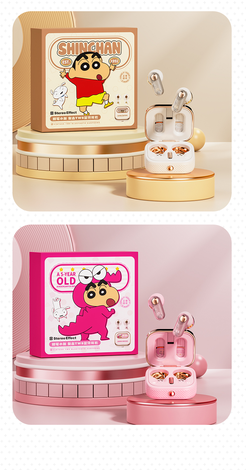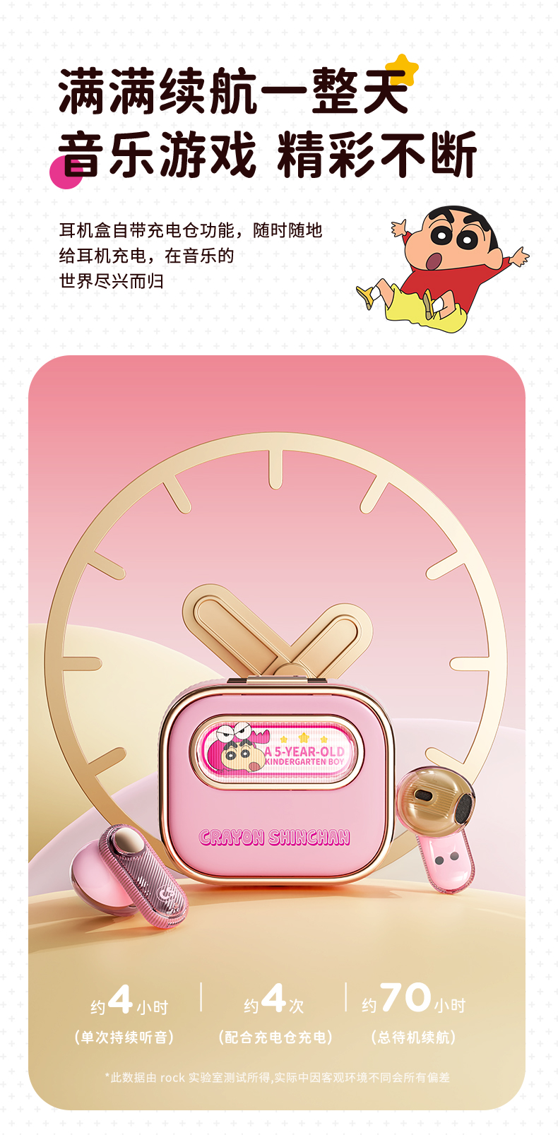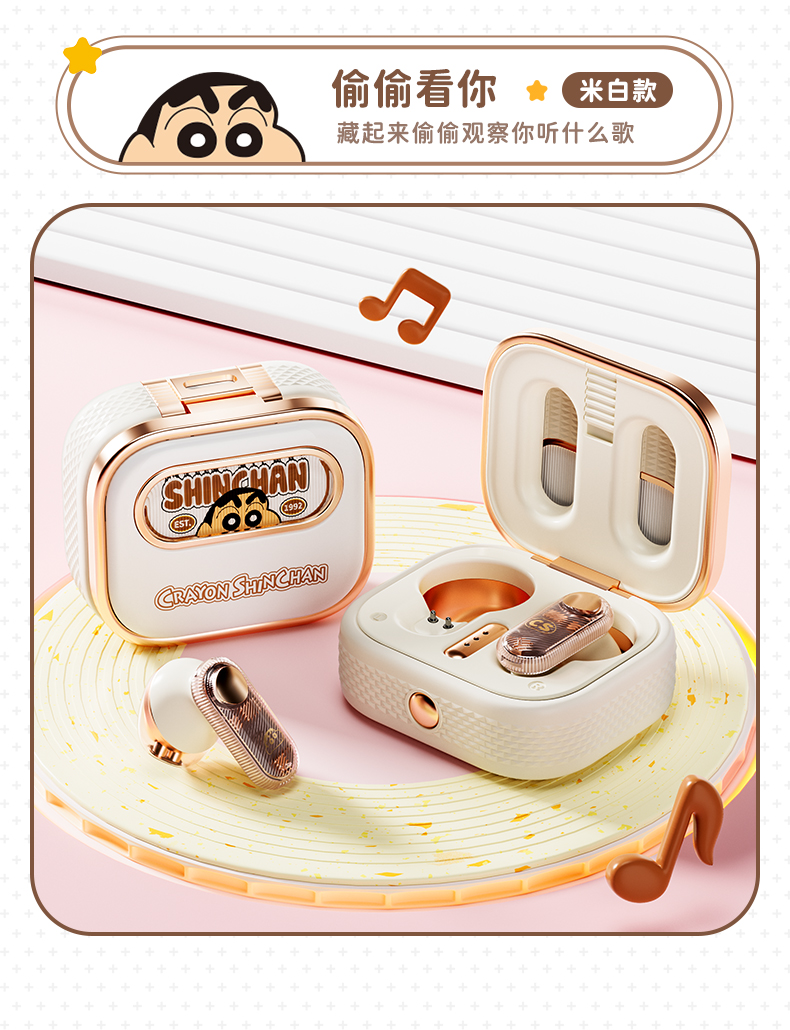 ROCK 蜡笔小新 复古系列TWS蓝牙耳机 米白色