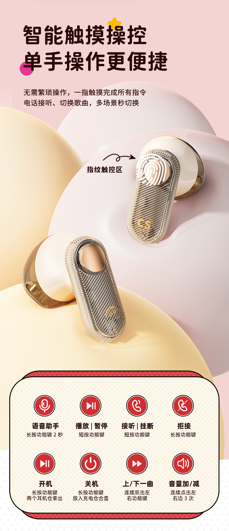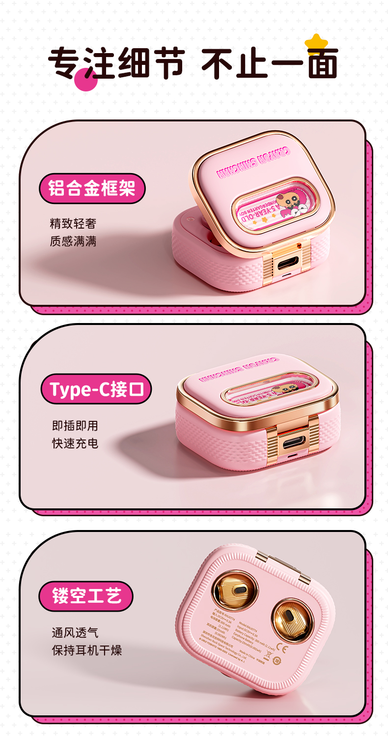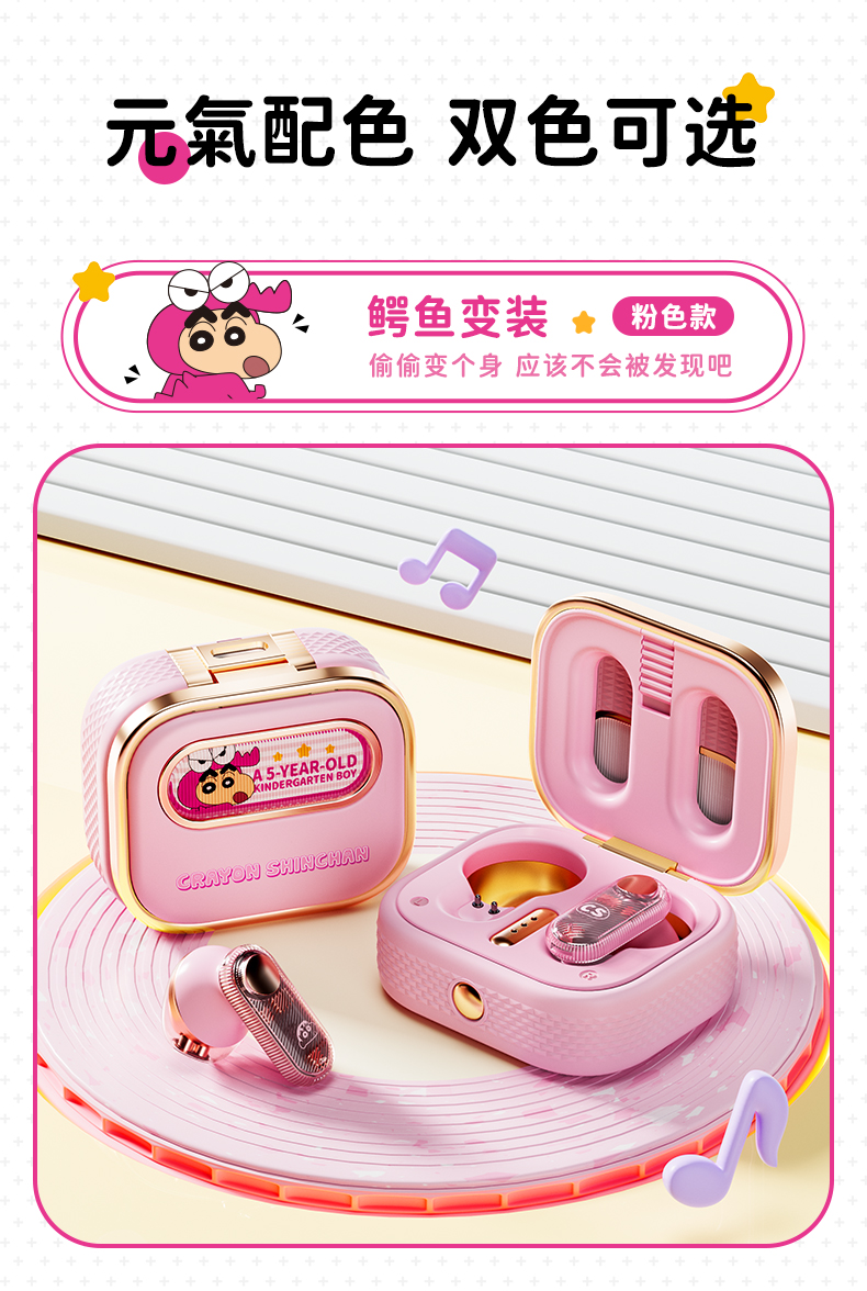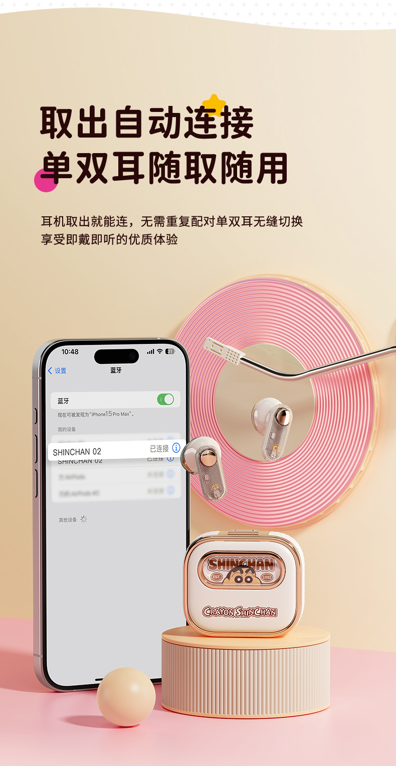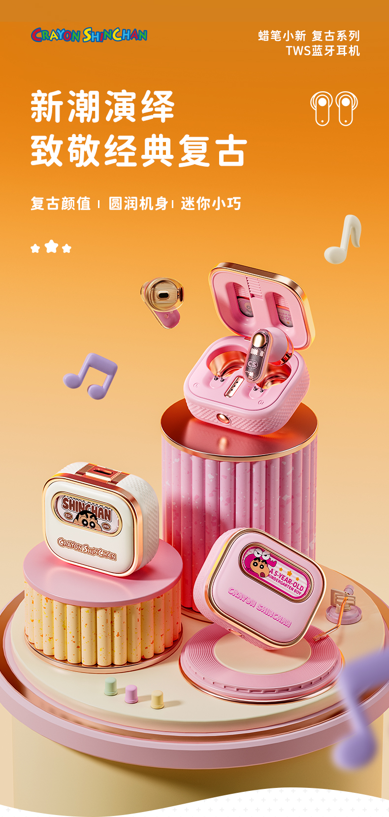 ROCK 蜡笔小新 复古系列TWS蓝牙耳机 米白色