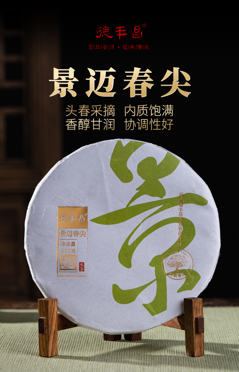2023年春茶德丰昌【景迈春尖】普洱生茶手撕薄饼200克/盒