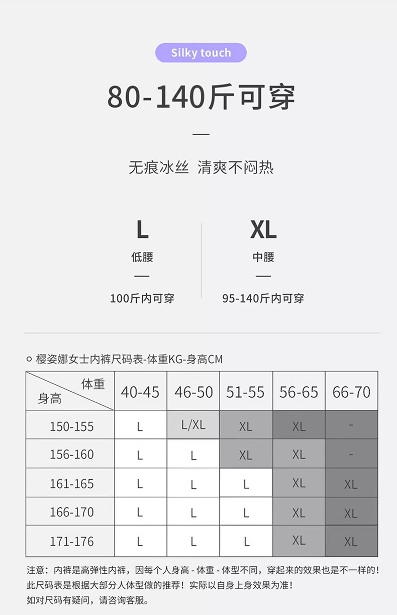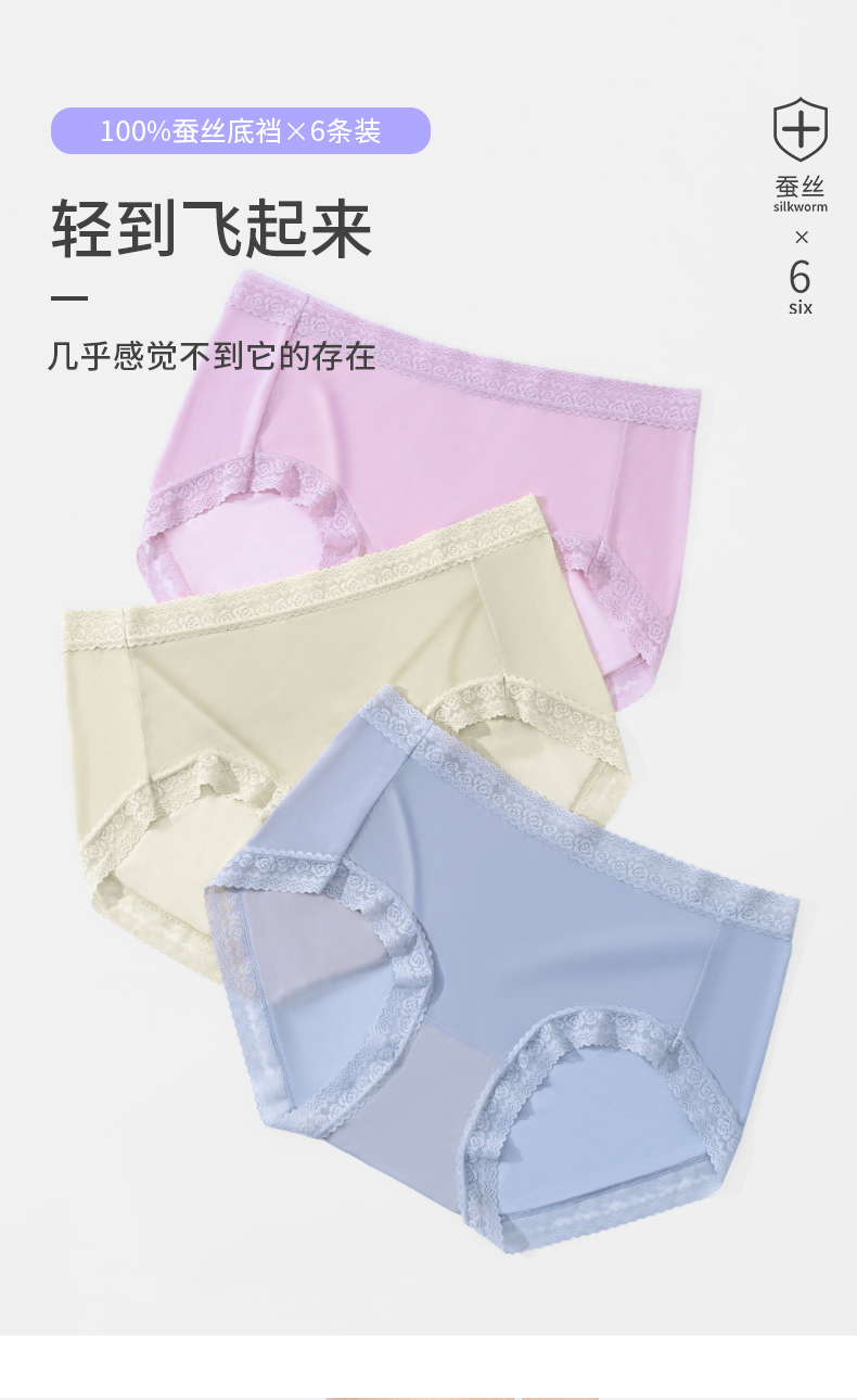 【初秋福利,二姨专属】樱姿娜女士100%蚕丝底档内裤(6条装)+男款抑菌冰丝裤(4条装)